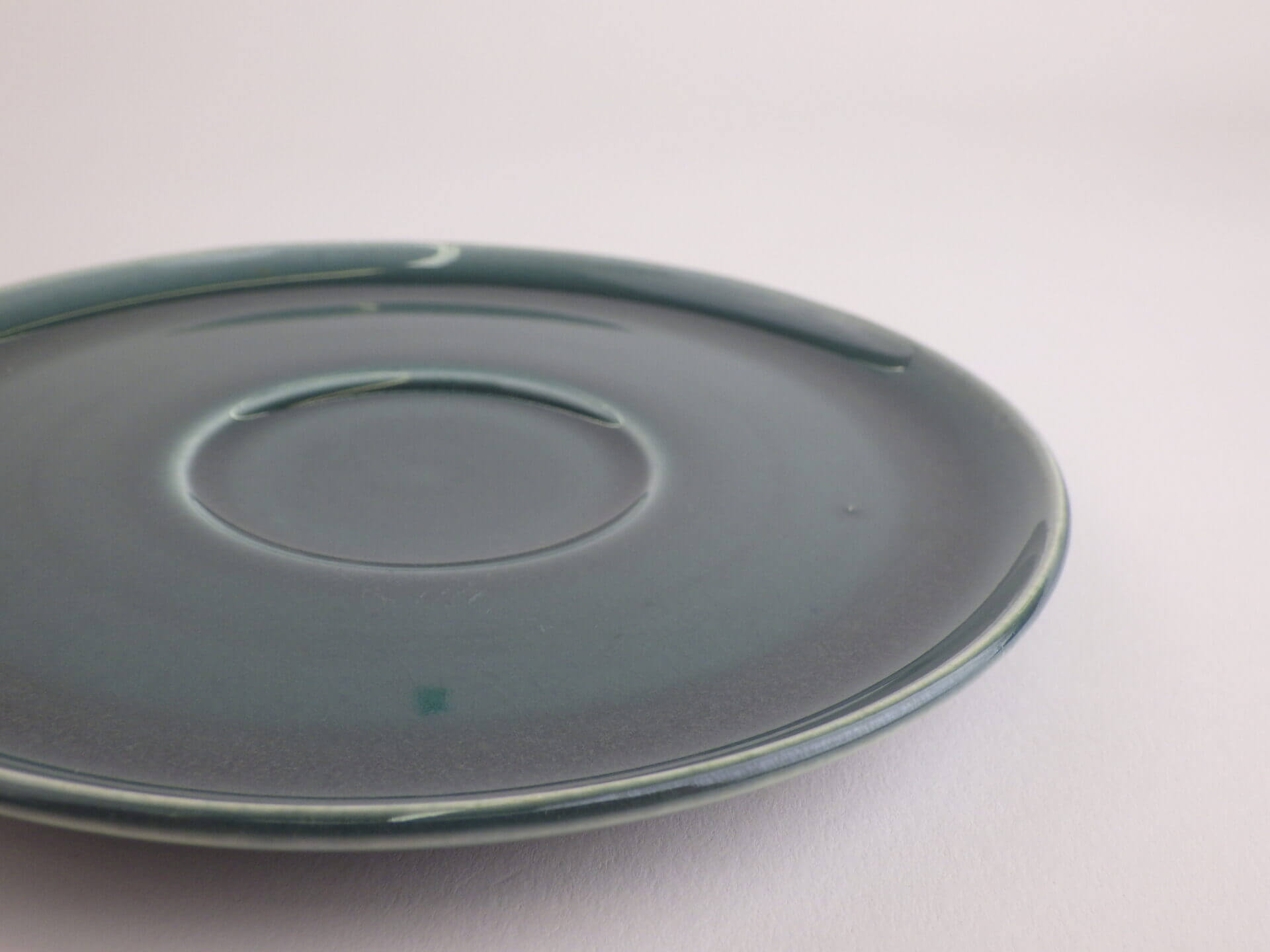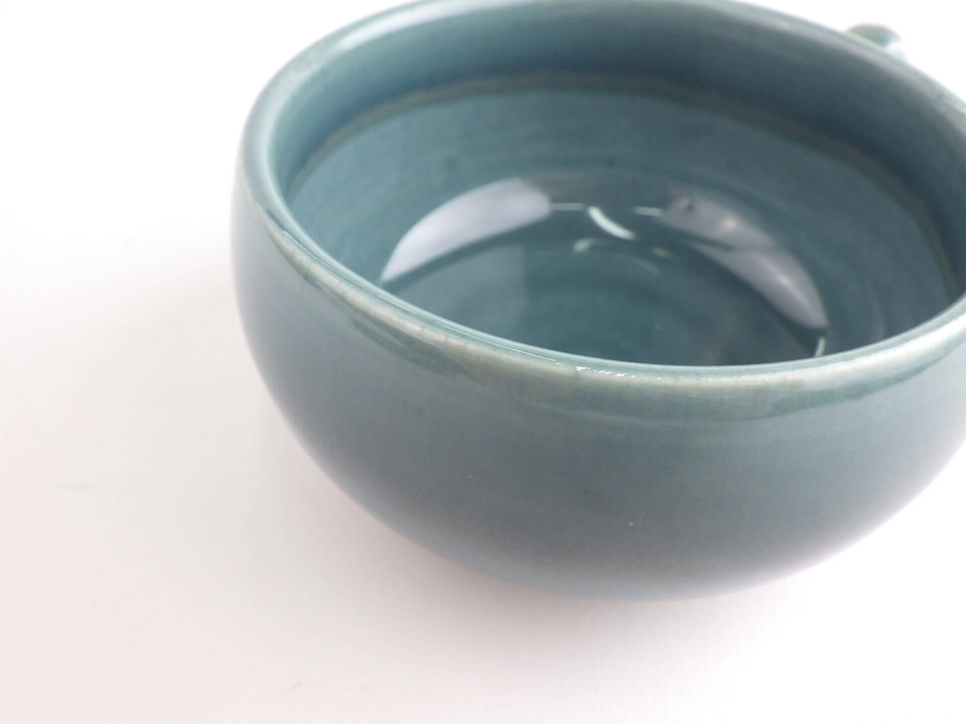 | 1939年から1959年に製造されたSteubenville(スチューベンヴィル)社製のアメリカンモダンシリーズです。 ラッセルライトらしい丸みがあり、縁がぽってりしているデザインで、とても可愛いですね。 シーフォームとは「海の泡」という意味で、深みのある青緑は味わいがあります。 |