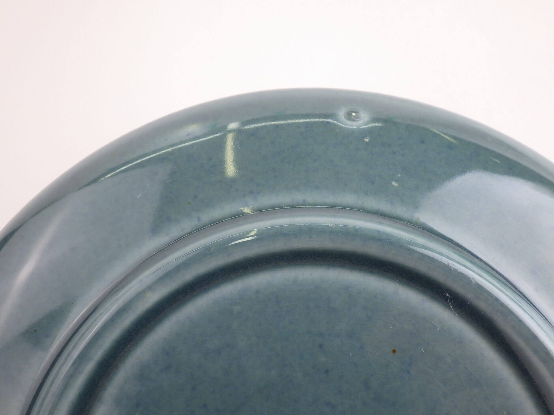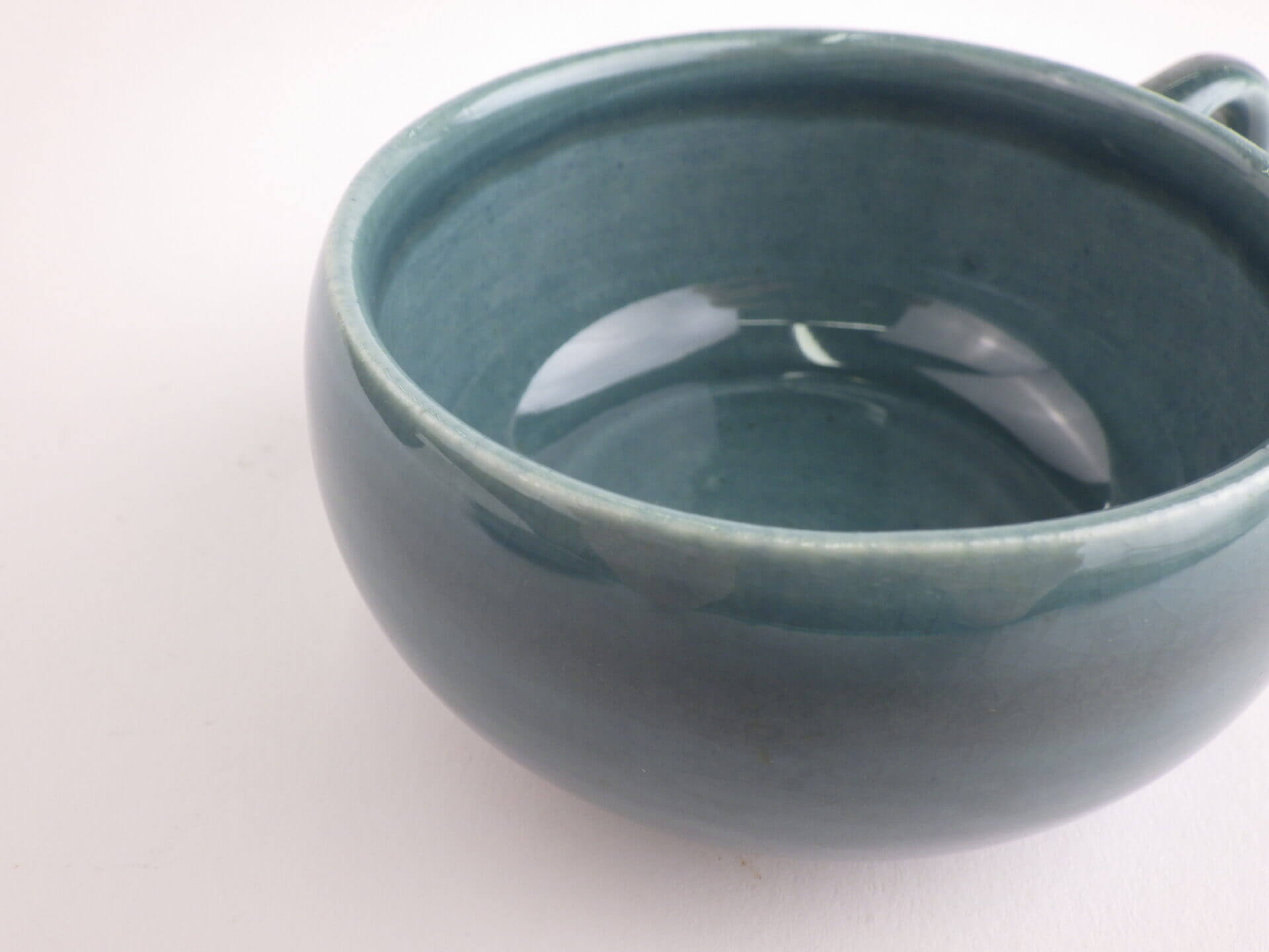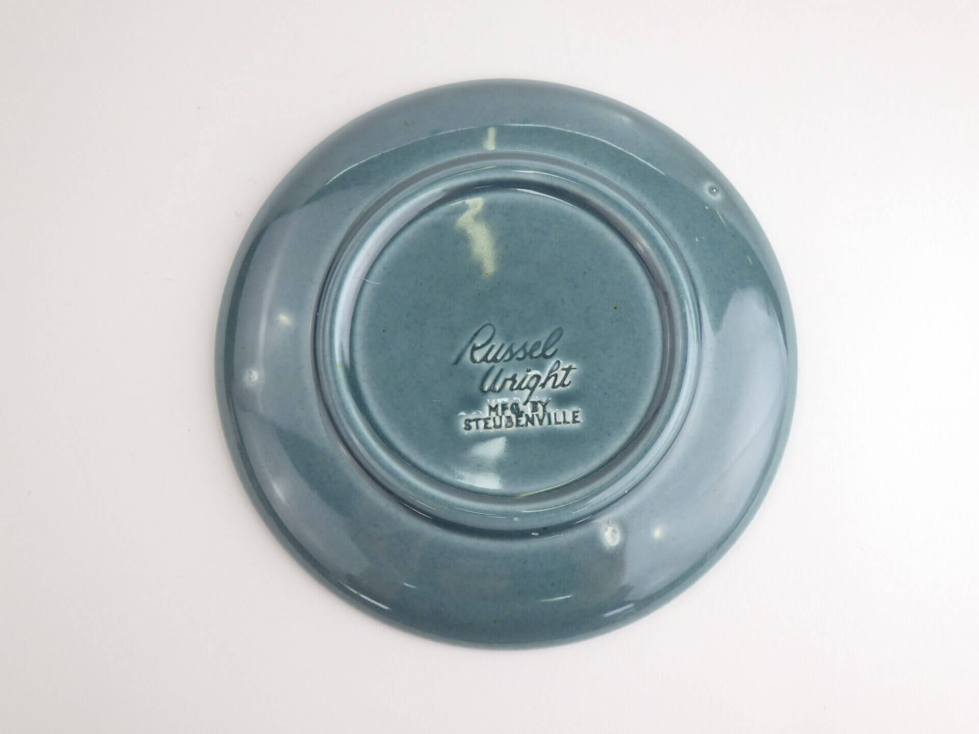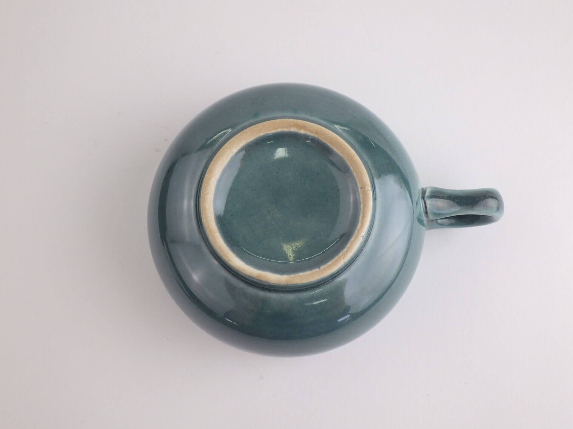 | 1939年から1959年に製造されたSteubenville(スチューベンヴィル)社製のアメリカンモダンシリーズです。 ラッセルライトらしい丸みがあり、縁がぽってりしているデザインで、とても可愛いですね。 シーフォームとは「海の泡」という意味で、深みのある青緑は味わいがあります。 |