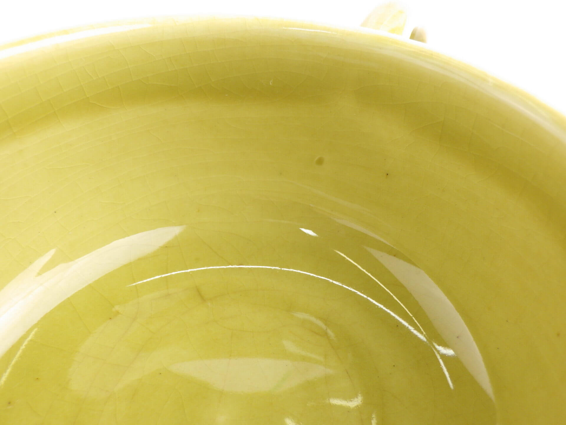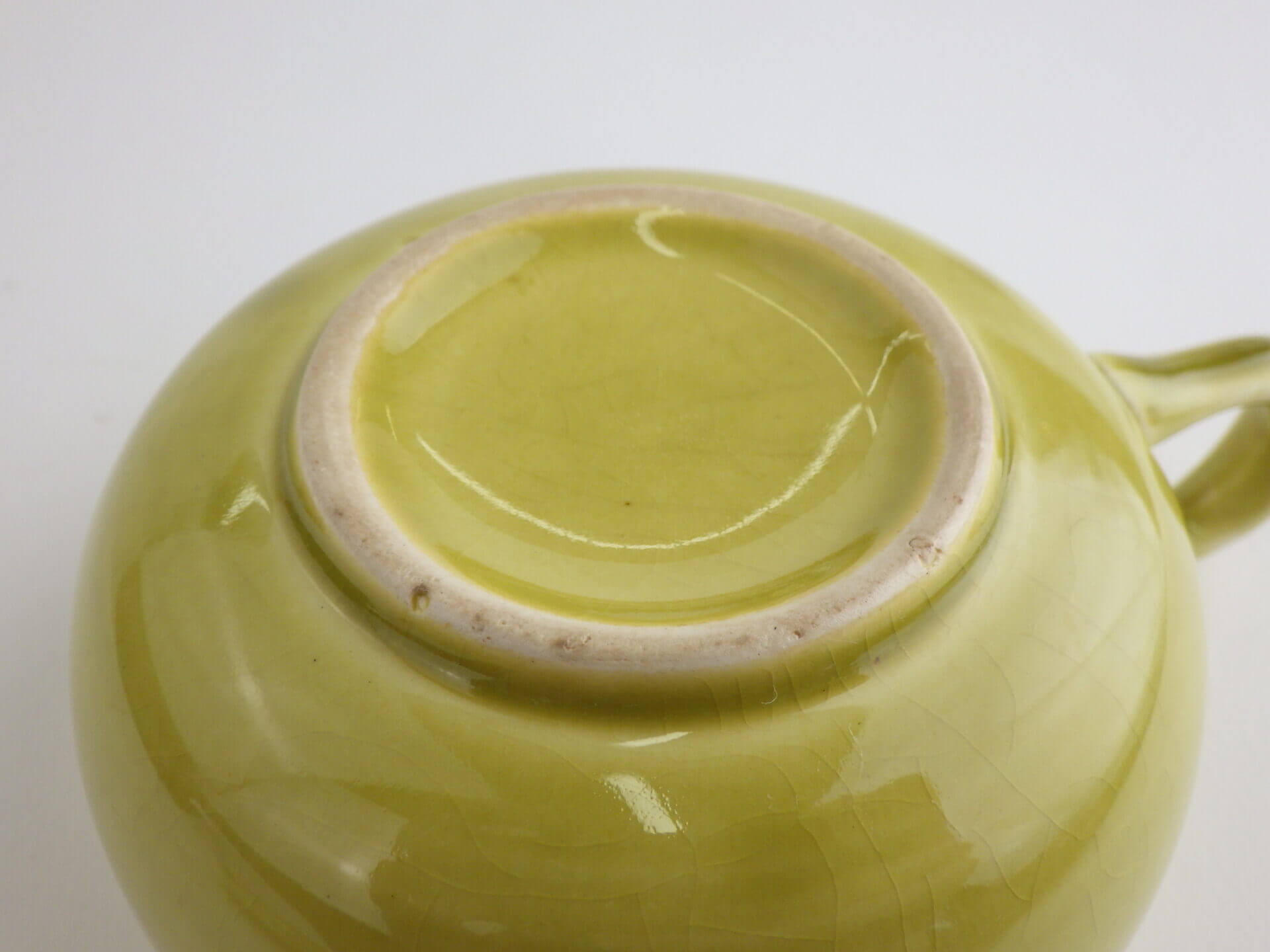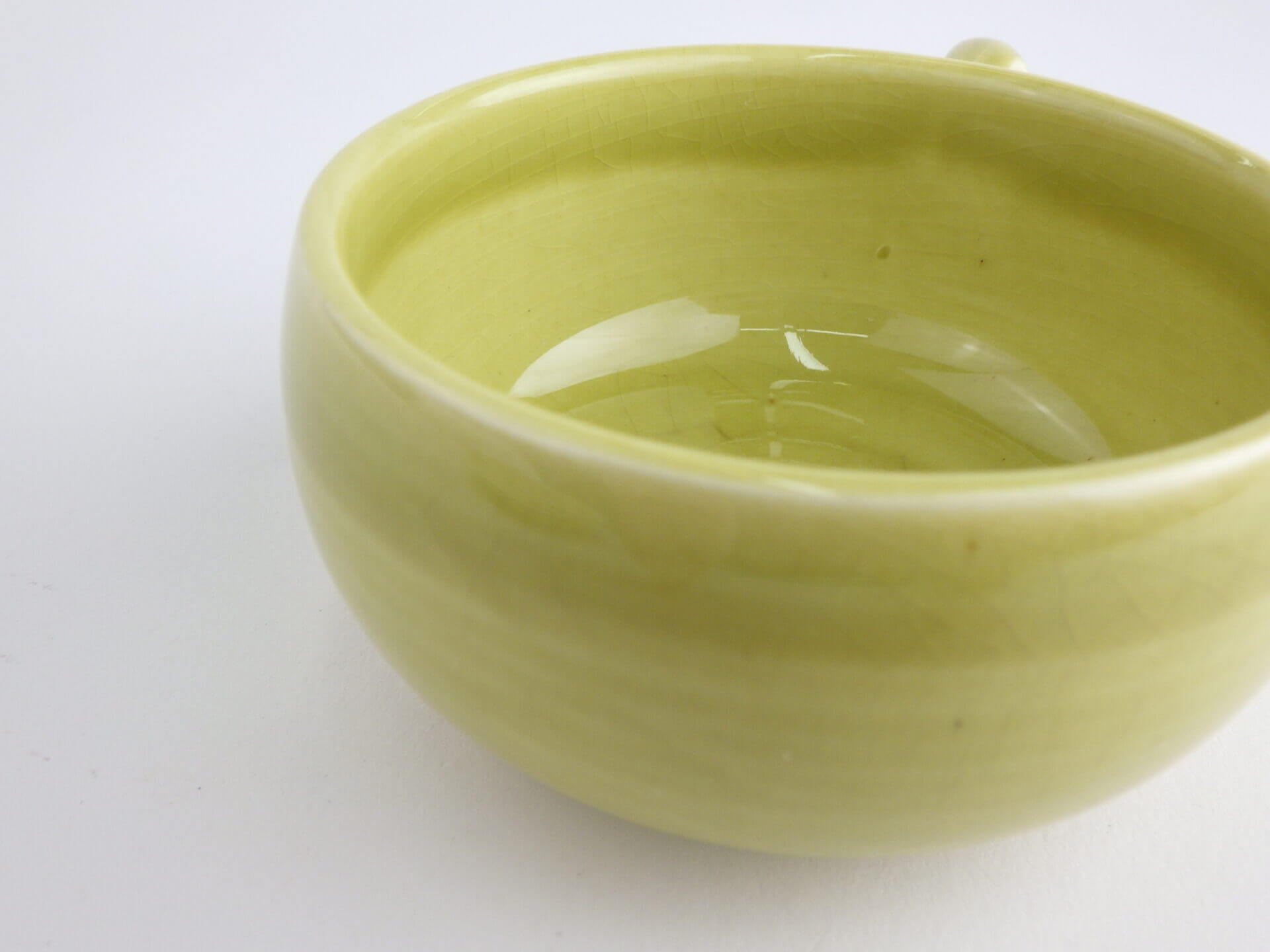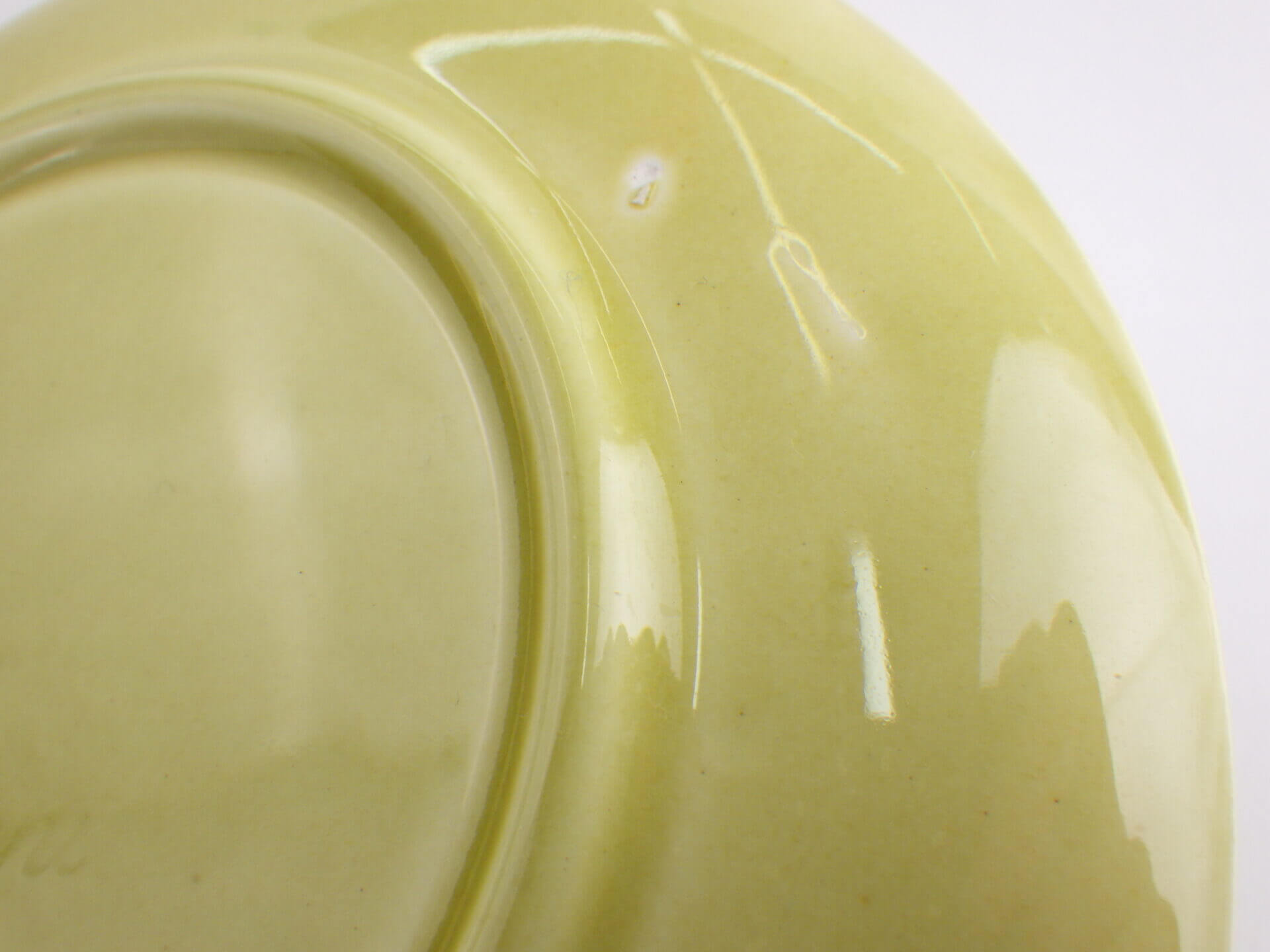 | 1939年から1959年に製造されたSteubenville(スチューベンヴィル)社製のアメリカンモダンシリーズです。 ラッセルライトらしい丸みがあり、縁がぽってりしているデザインで、とても可愛いですね。 シャルトリューズはフランスを代表するリキュールの一つで、輝くようなイエローがとても綺麗です。 |