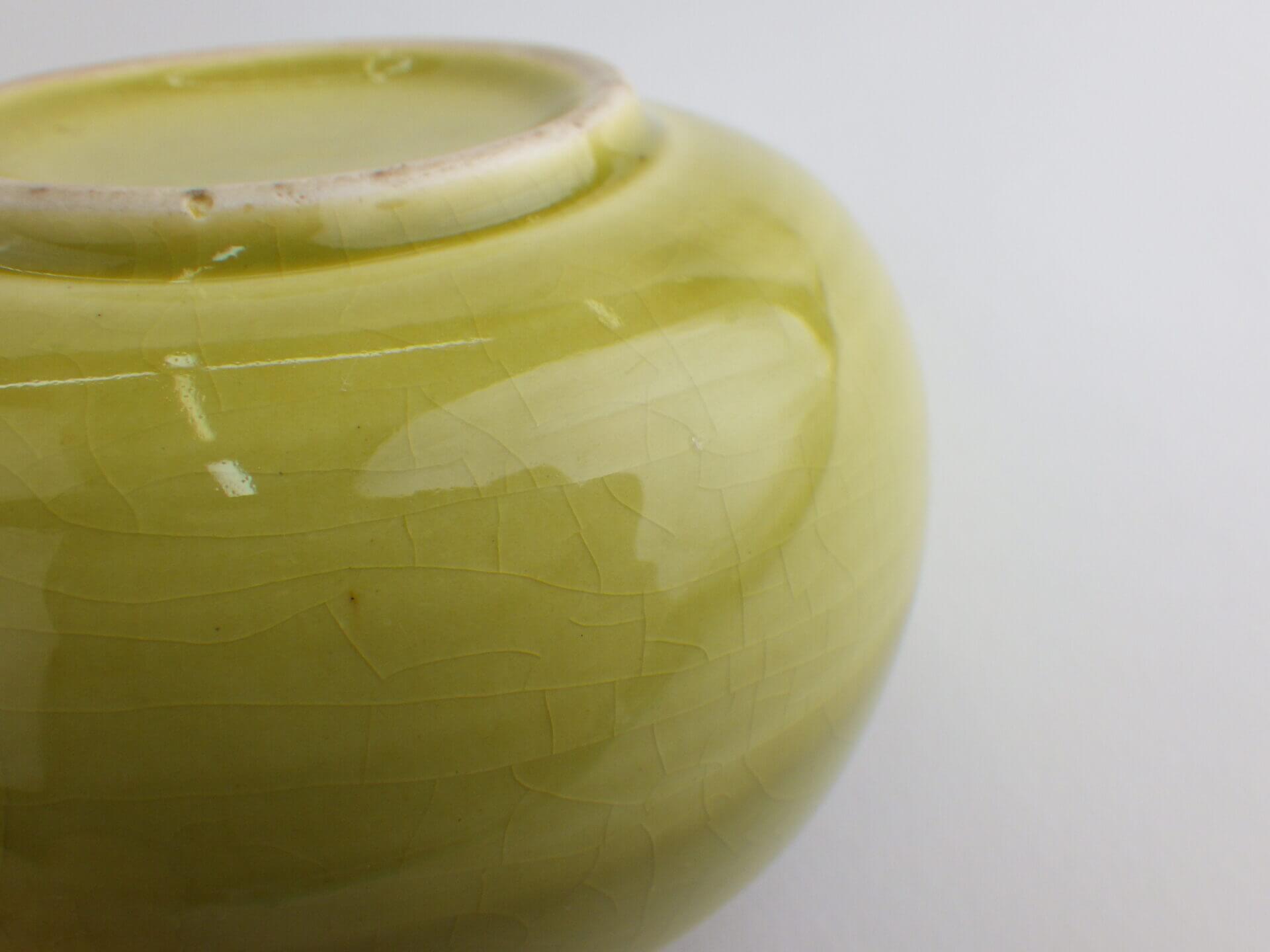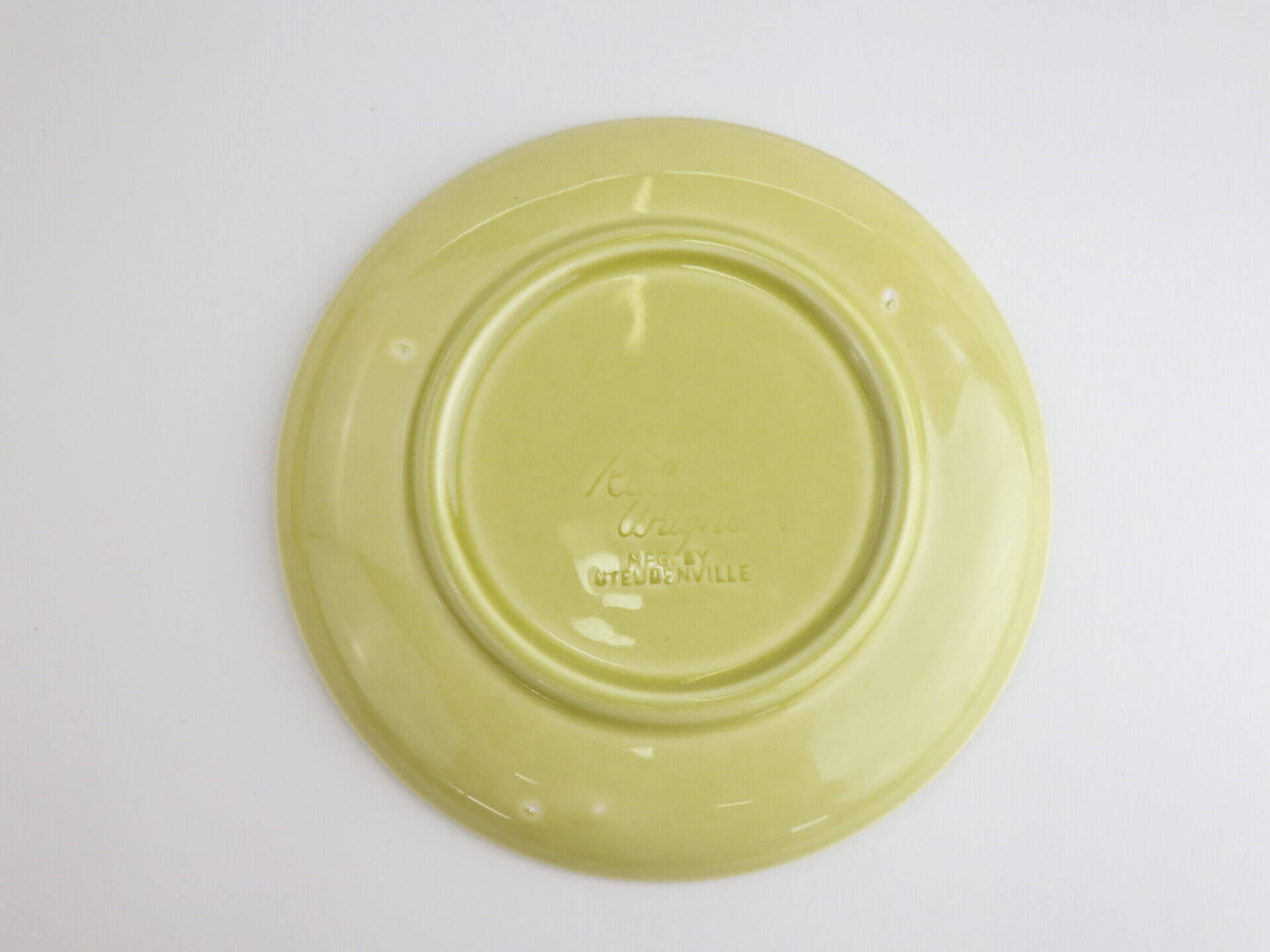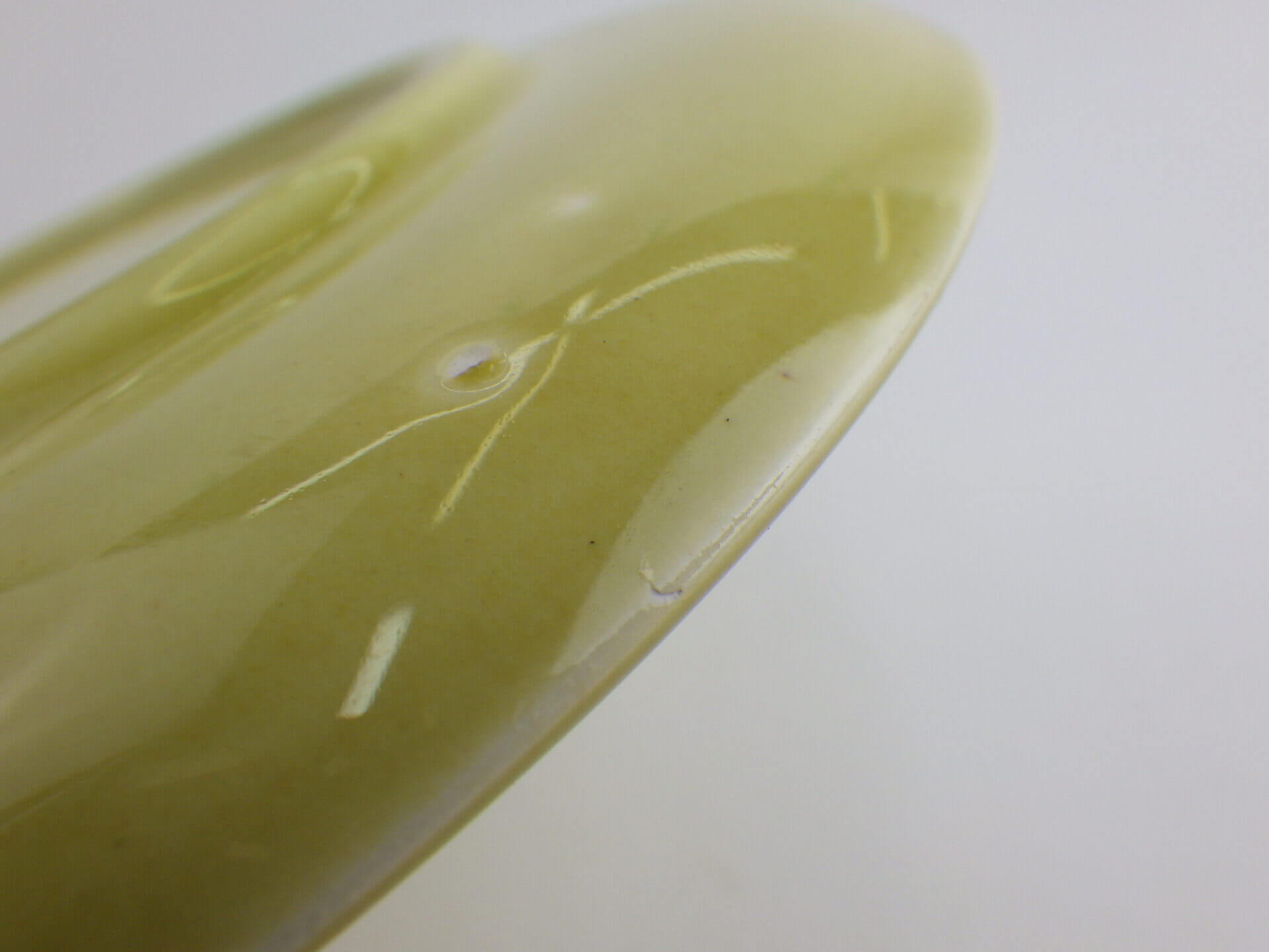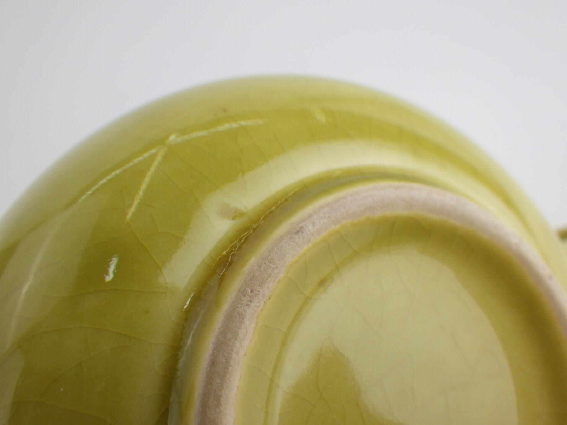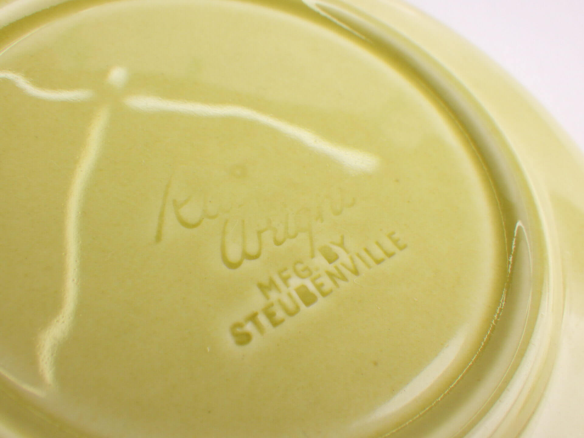 | 1939年から1959年に製造されたSteubenville(スチューベンヴィル)社製のアメリカンモダンシリーズです。 ラッセルライトらしい丸みがあり、縁がぽってりしているデザインで、とても可愛いですね。 シャルトリューズはフランスを代表するリキュールの一つで、輝くようなイエローがとても綺麗です。 |