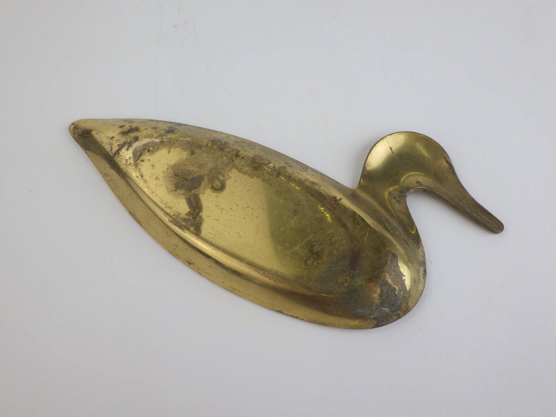 | アメリカで買い付けした真鍮製のカモのトレイです。 ビンテージらしい存在感があります。 鍵置きにしたり、アクセサリートレイにしたりと、色々な使い道がありそうなアイテムです。 |