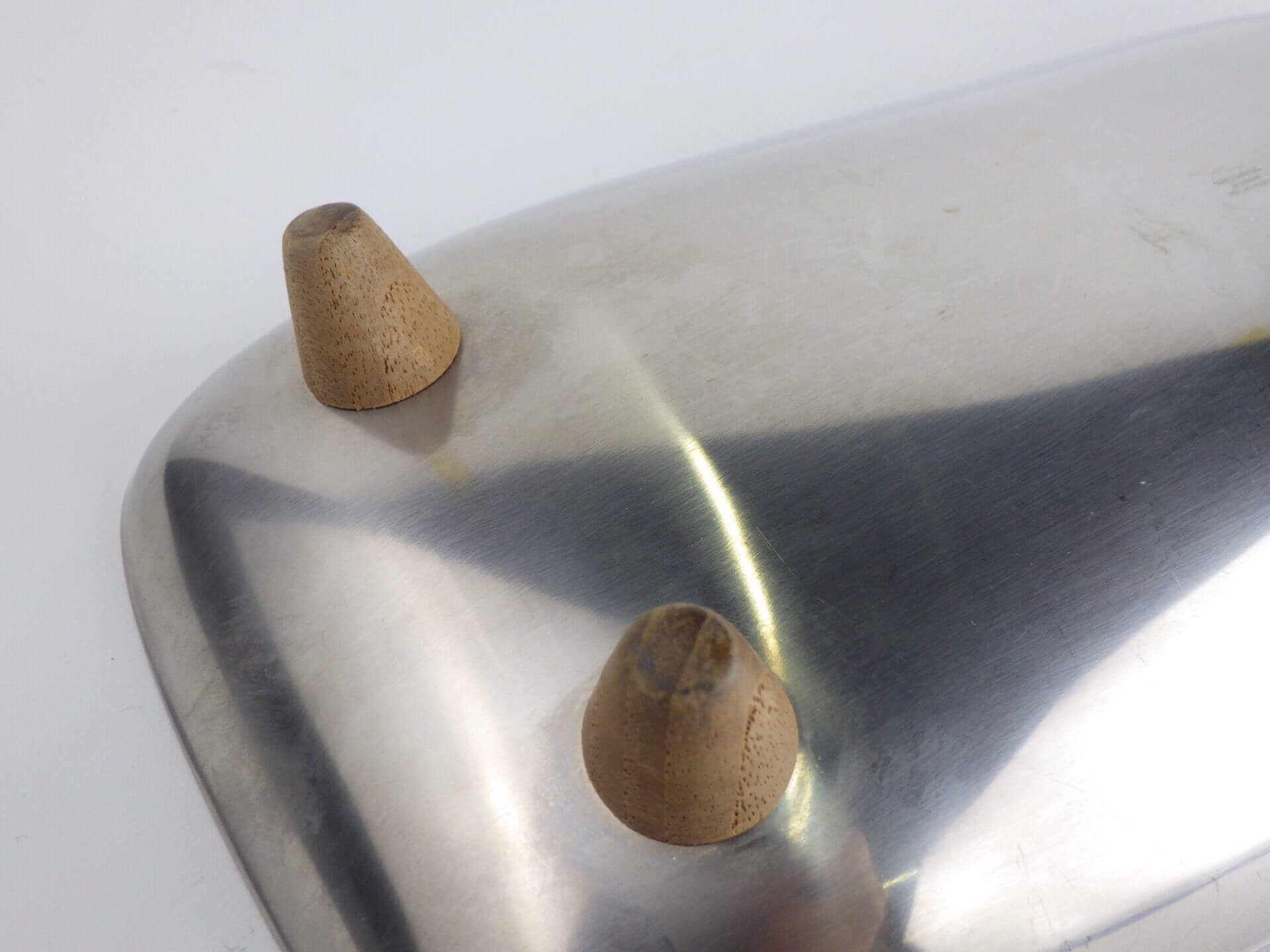 | デンマーク製のビンテージトレイです。 ステンレスの本体に、木製の脚が可愛いです。 リビングや玄関、寝室などどこにでも置けるサイズで、重宝しそうです。 |