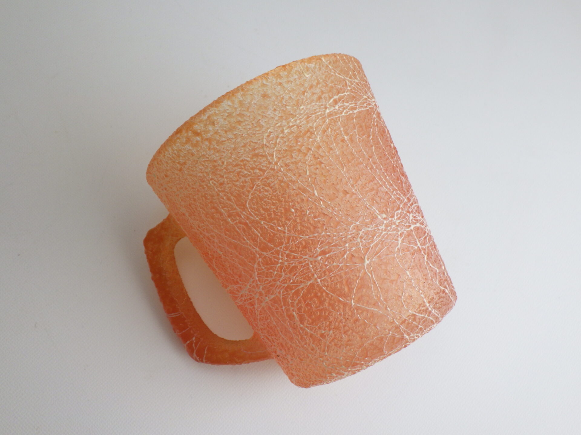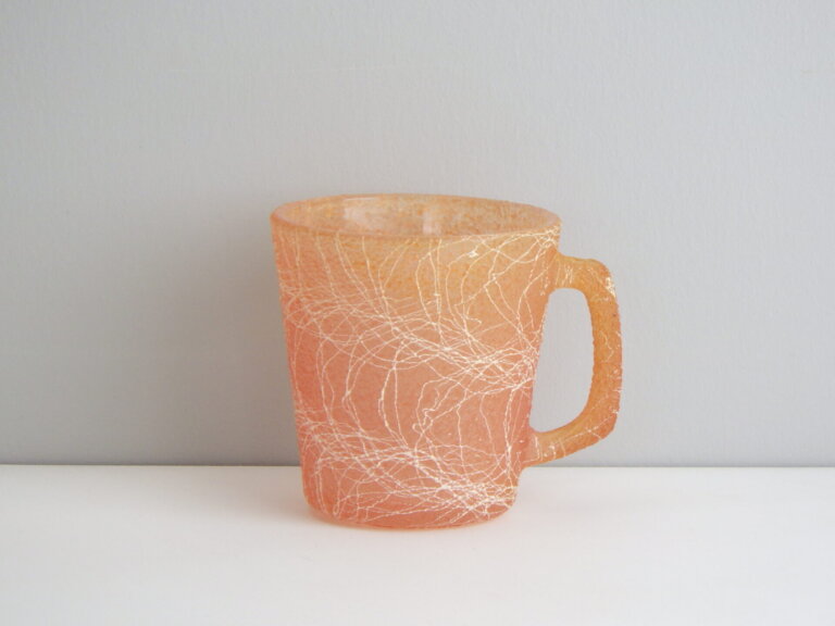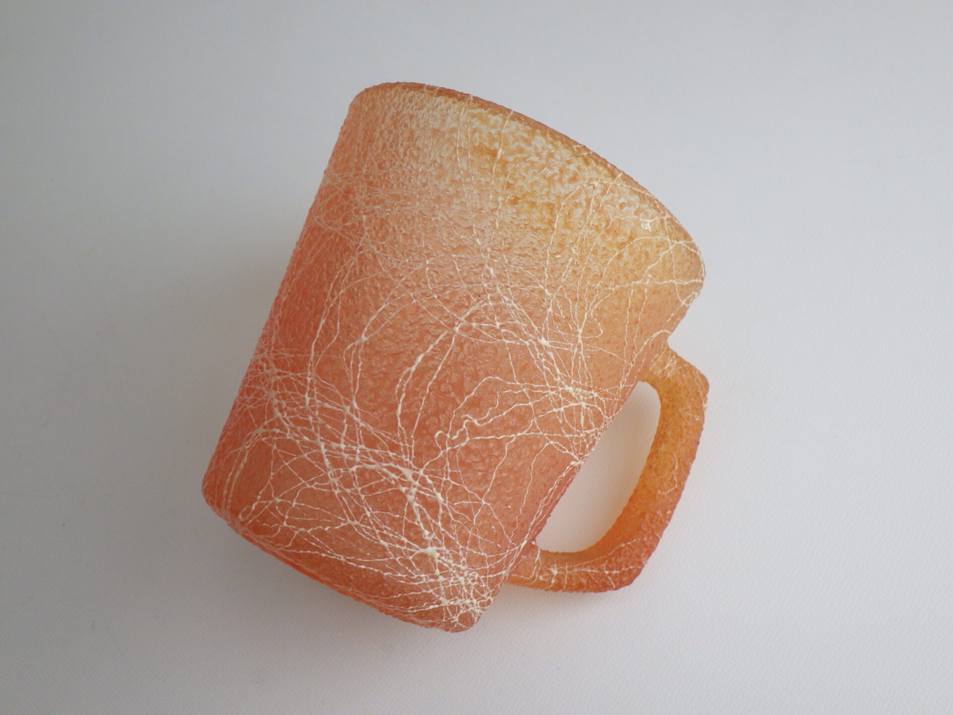 | アメリカで買い付けました。 ガラスのマグにラバーコーティングが施されています。 ラバーの上のホワイトストリングは全て手作業で描かれているので、デザインはそれぞれ異なります。 マグタイプは最近ではなかなか手に入りづらいレアアイテムとなっております。 こちらはピンクとオレンジの中間のような(サーモンカラーに近い)お色味です。 |