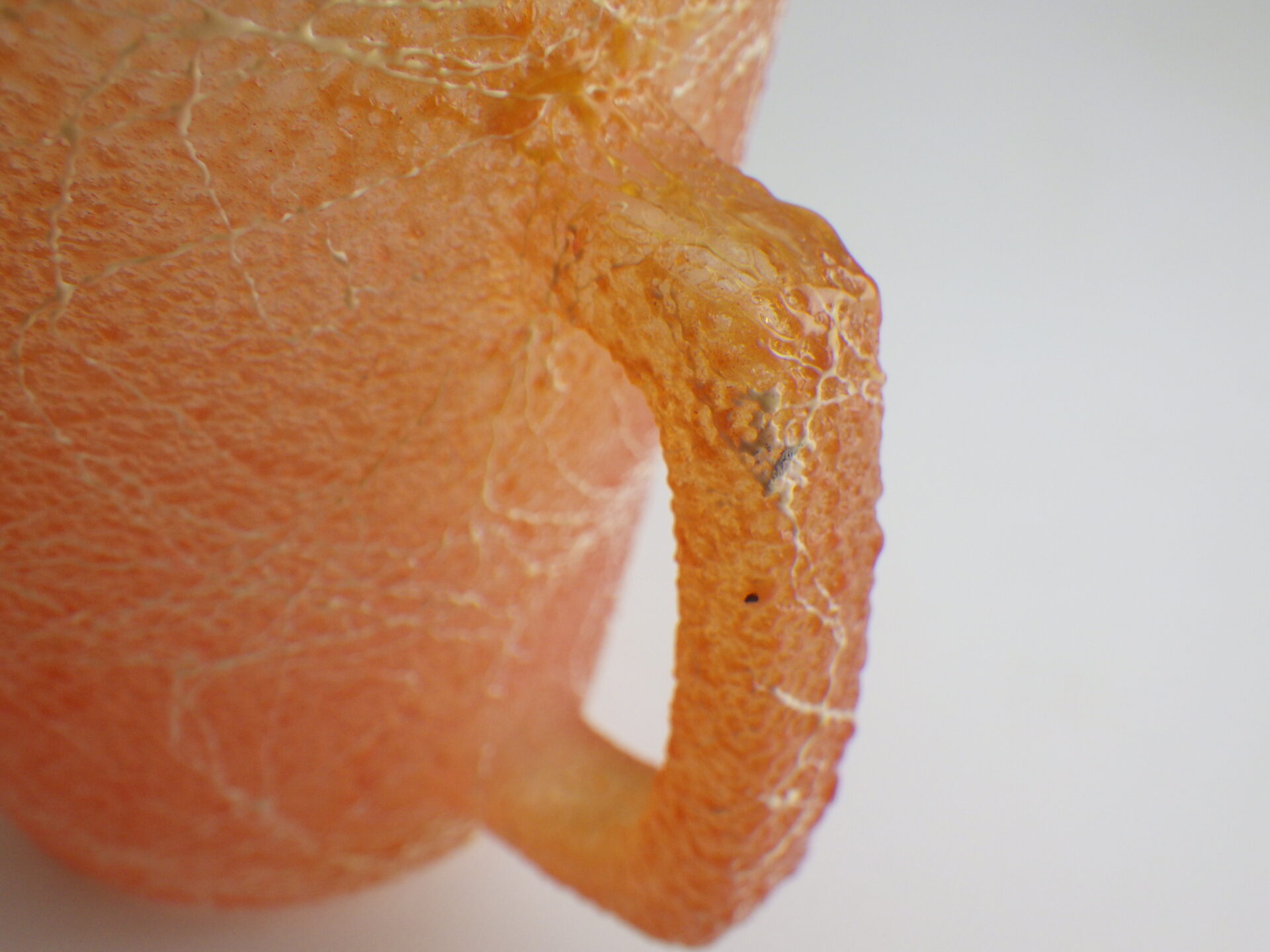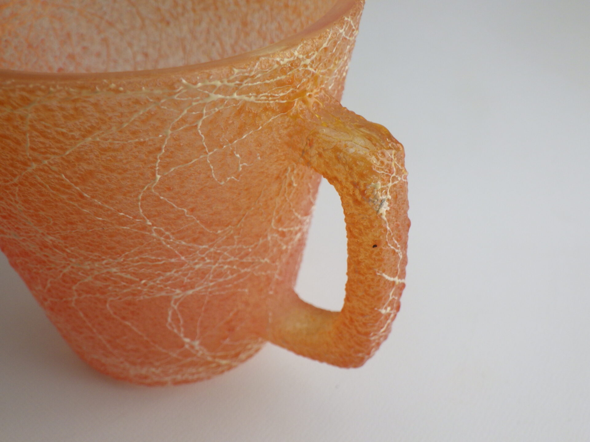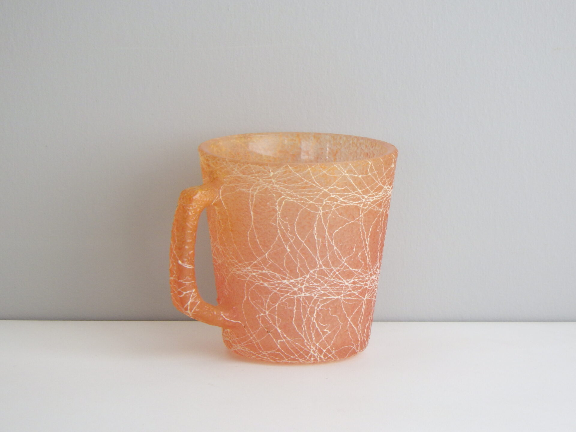 | アメリカで買い付けました。 ガラスのマグにラバーコーティングが施されています。 ラバーの上のホワイトストリングは全て手作業で描かれているので、デザインはそれぞれ異なります。 マグタイプは最近ではなかなか手に入りづらいレアアイテムとなっております。 こちらはピンクとオレンジの中間のような(サーモンカラーに近い)お色味です。 |