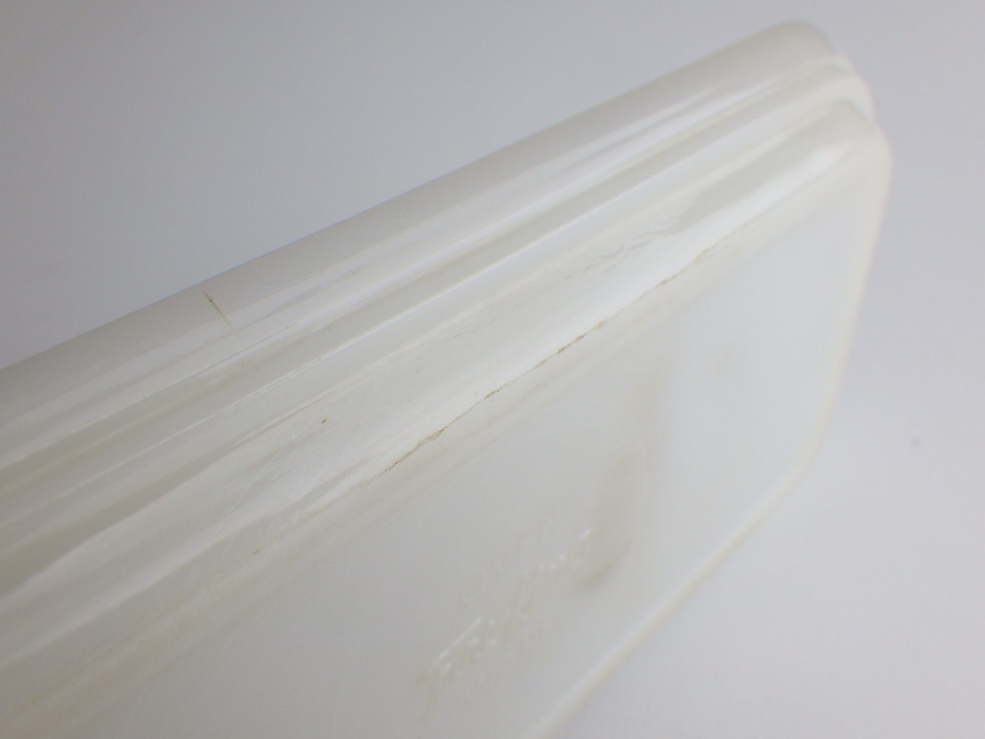 | 製造数が少なくレアなバターディッシュ。 冷蔵庫でバターを保存しておくための容器として製造されました。 こちらのアイボリーカラーは近年お目にかかりにくくなっています。 バターのほかにちょっとした和菓子を入れて保存したり、アクセサリー入れとしてご使用していただいても可愛いですね。 |