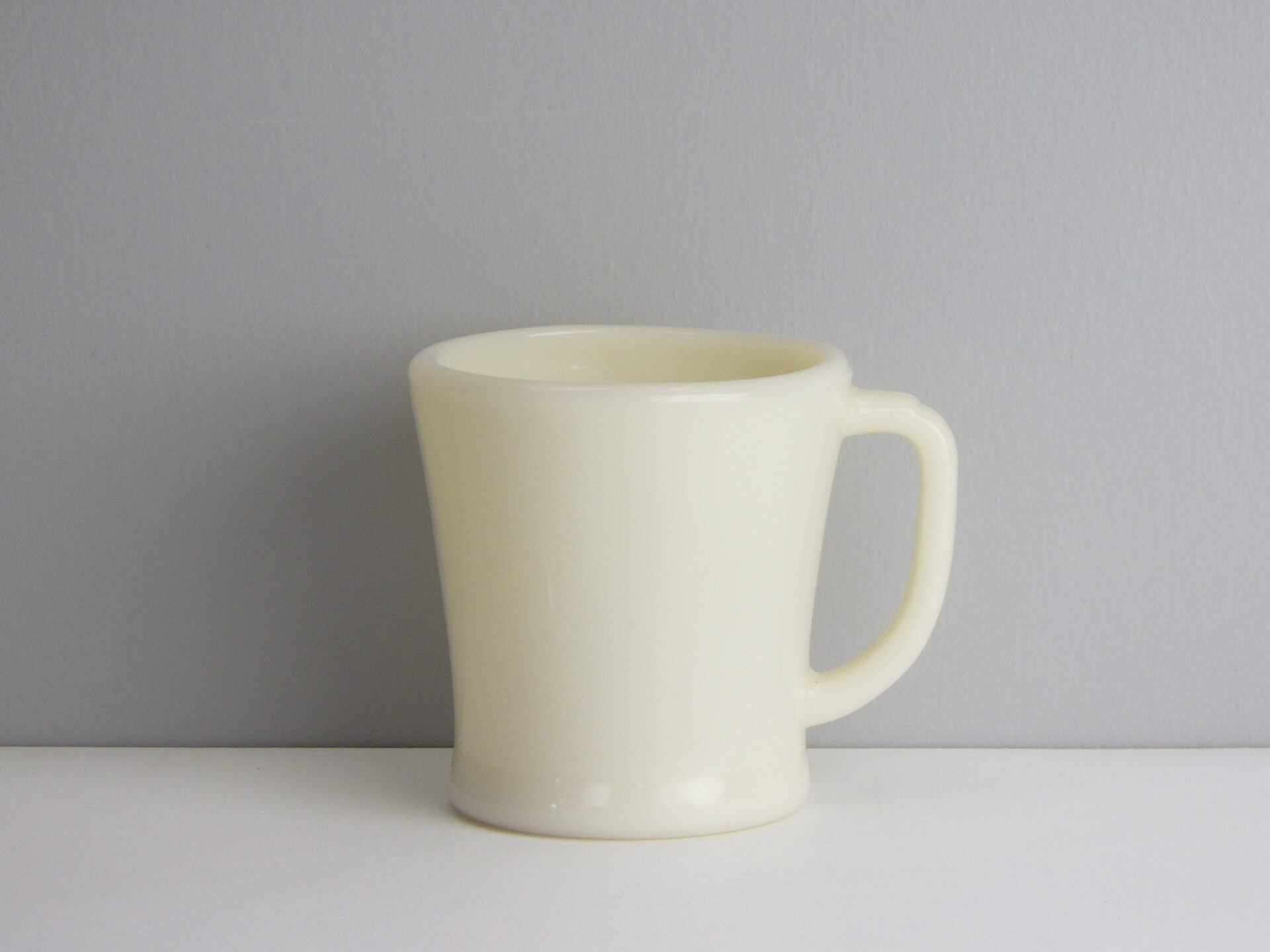 | 別名「フラットボトムマグ」と呼ばれる底が平らなデザインで、初期のDハンドルマグです。 コーヒーを注いだ時に中が透けて見える感じがとても可愛く、贈り物としてもおススメしています。 |