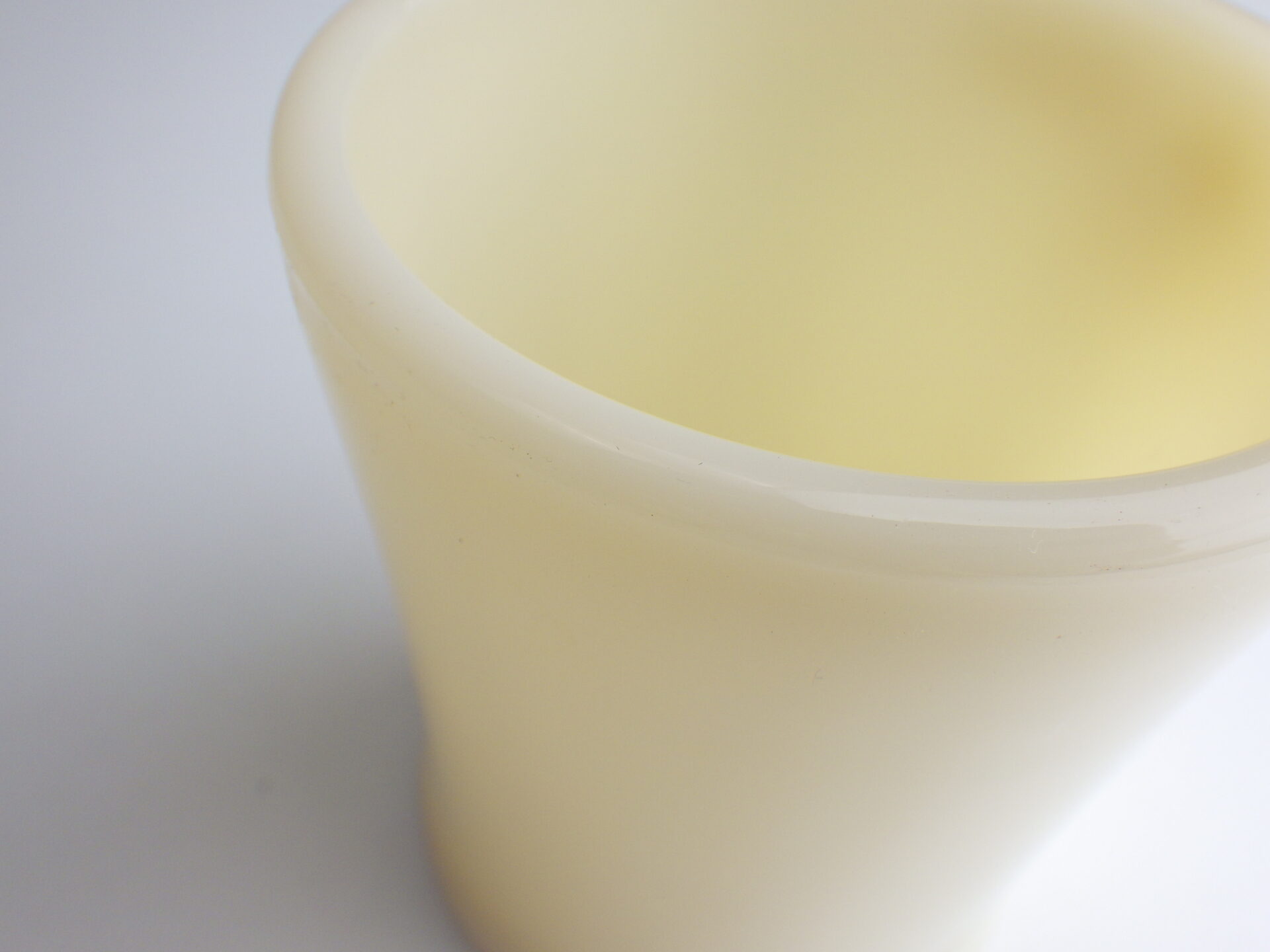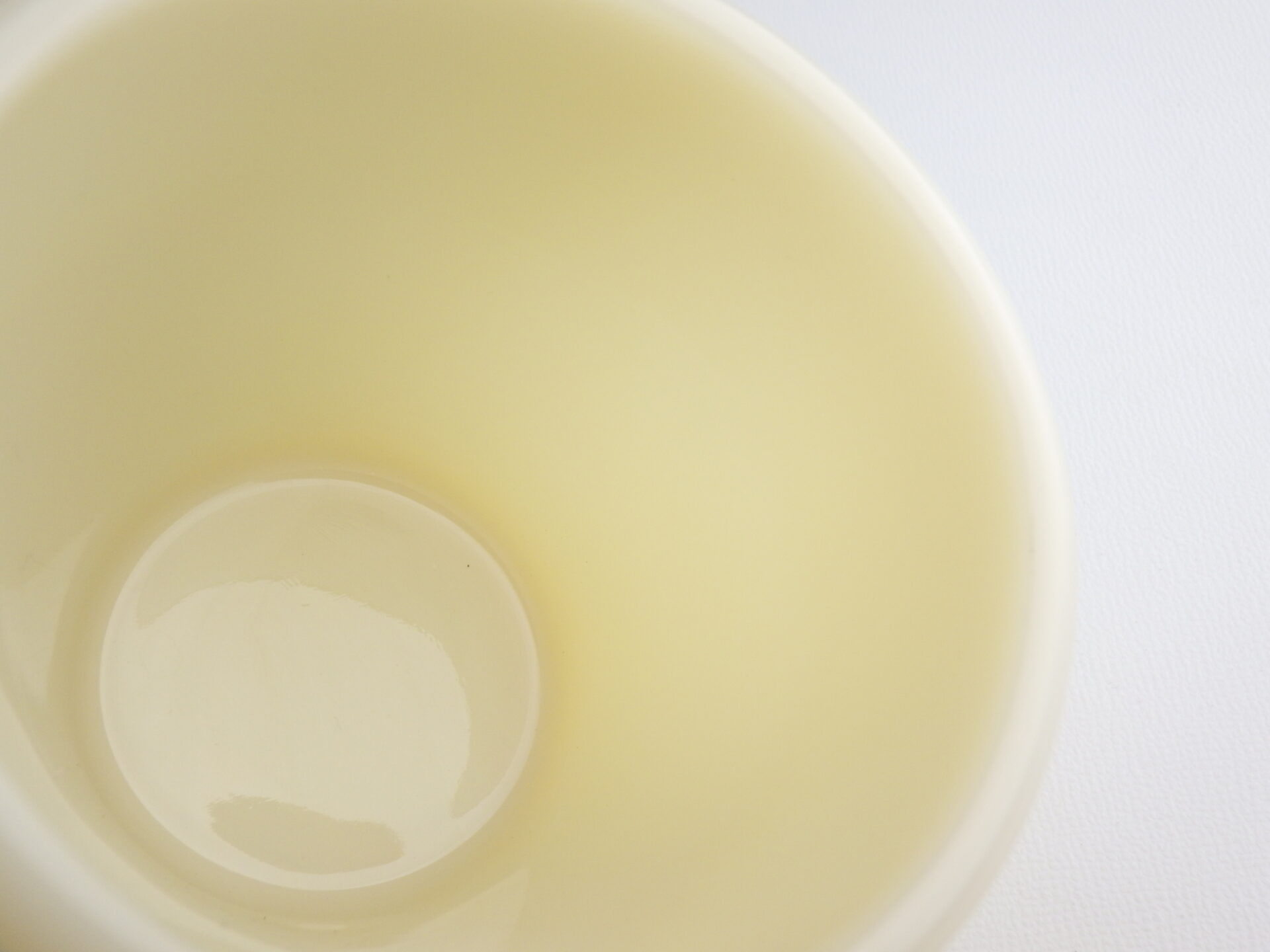 | 別名「フラットボトムマグ」と呼ばれる底が平らなデザインで、初期のDハンドルマグです。 コーヒーを注いだ時に中が透けて見える感じがとても可愛く、贈り物としてもおススメしています。 |