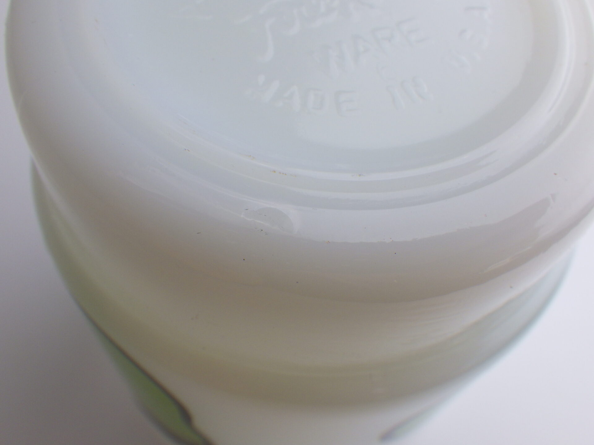 | condition | リムにごくわずかな小傷があります。 リム、ボトムにわずかな着色があります。 製造時よりのホワイトスポット、劣化線があります。 その他、ワレ、カケなどなく、全体的にツヤもあり良い状態です。 |