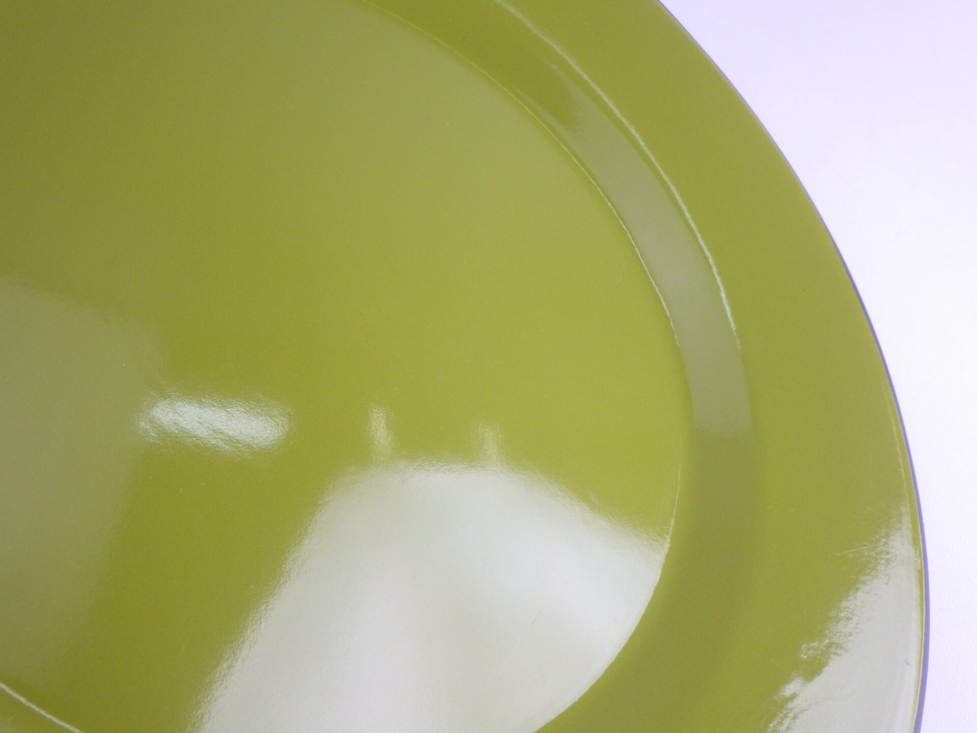 | 良いカラーのビンテージエナメルプレートです。 直径約30.8cmと少し大きめで、色々な盛り付けを楽しめそうです。 キャンプなどに持ち出しても活躍しそうです。 |