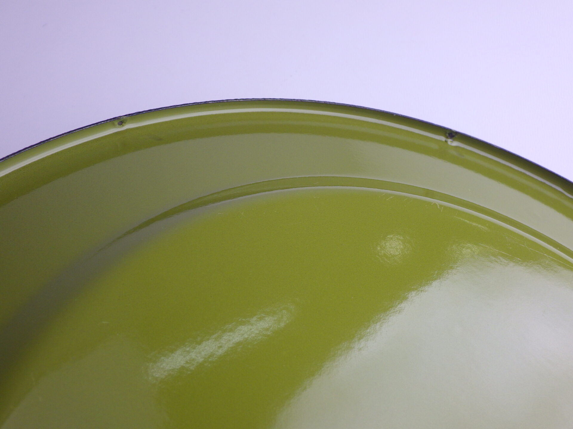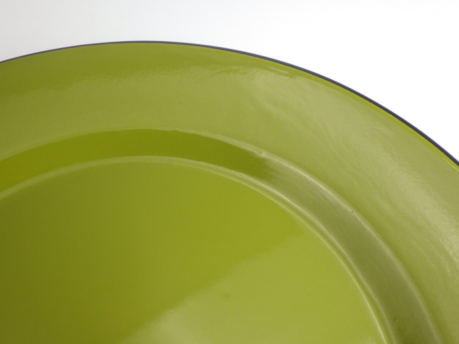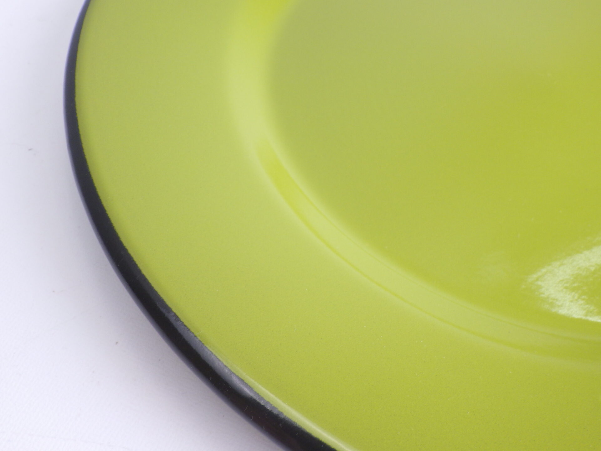 | 良いカラーのビンテージエナメルプレートです。 直径約30.8cmと少し大きめで、色々な盛り付けを楽しめそうです。 キャンプなどに持ち出しても活躍しそうです。 |