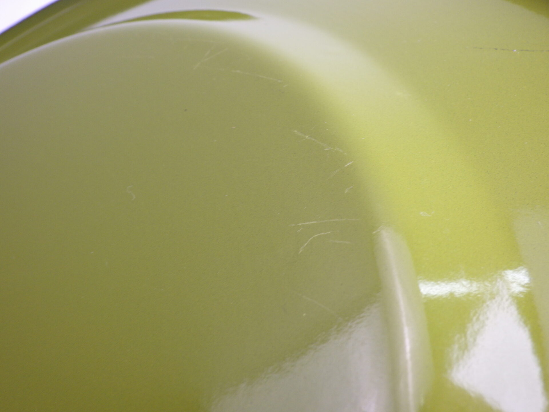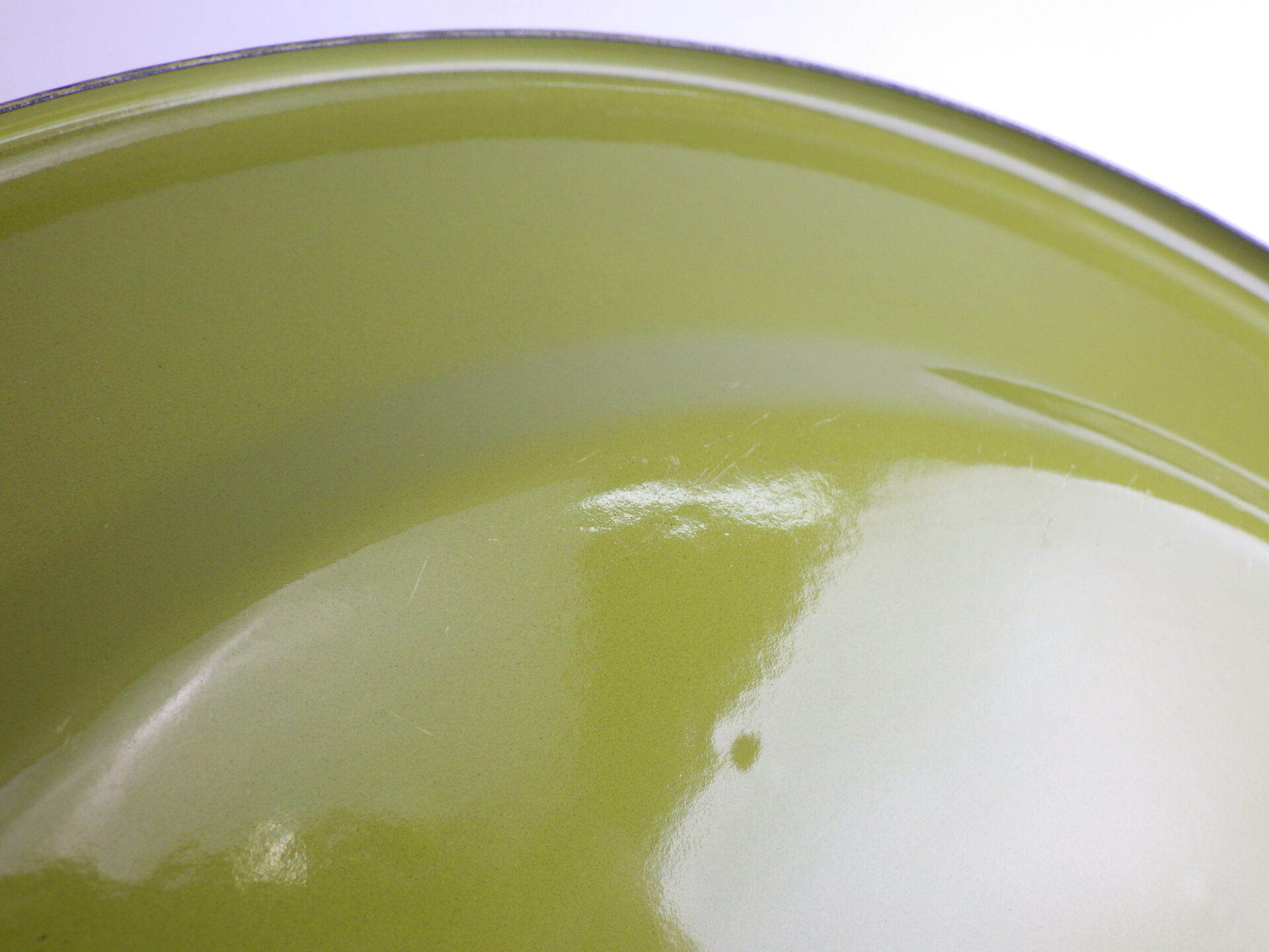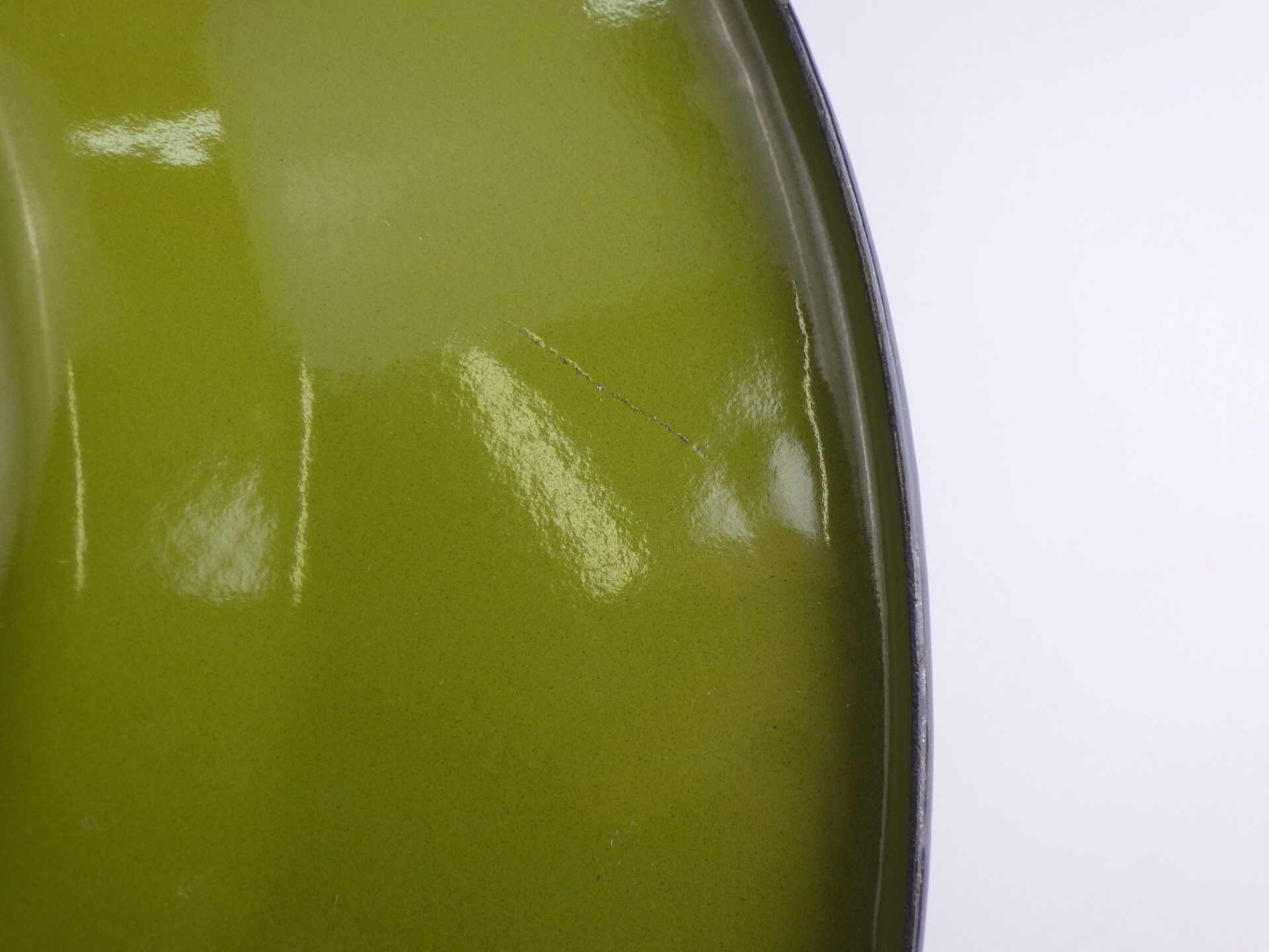 | 良いカラーのビンテージエナメルプレートです。 直径約30.8cmと少し大きめで、色々な盛り付けを楽しめそうです。 キャンプなどに持ち出しても活躍しそうです。 |
