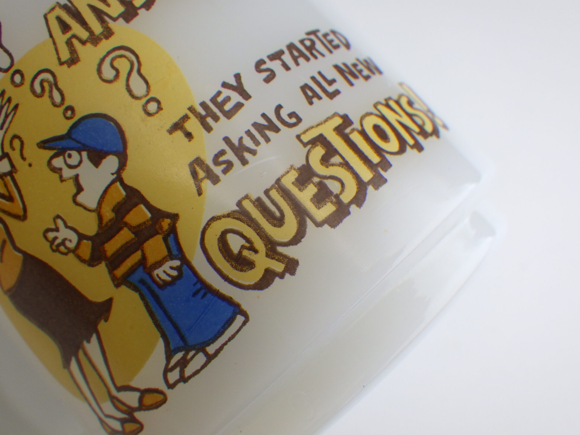 | 子供の質問に困り顔のママ(先生?)の表情が何とも言えず可愛いグラスベイクのマグ。 容量約280mlと大き目で、コーヒーなどたっぷり飲みたい方におすすめです。 |