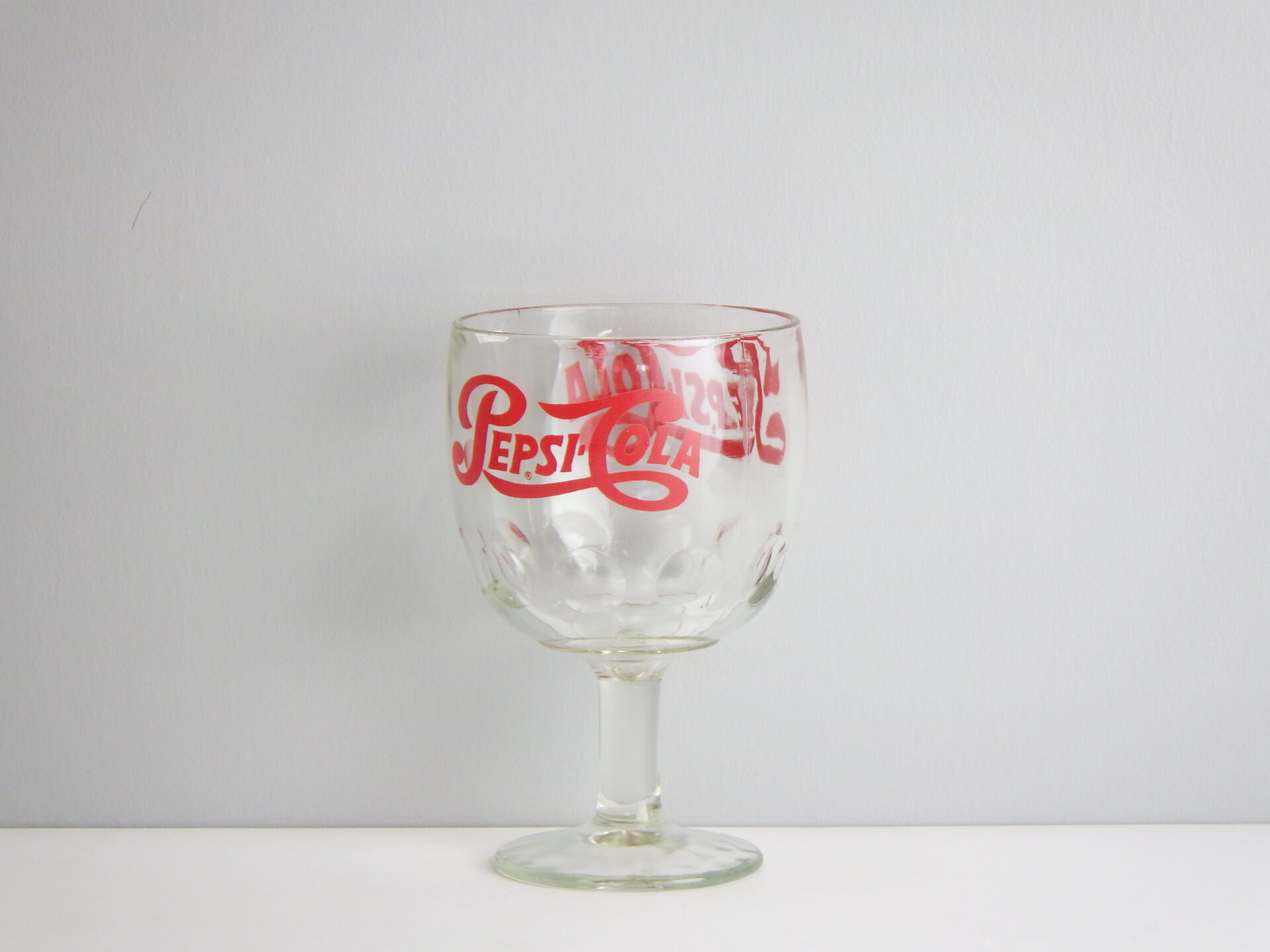 | ご存じペプシのロゴがプリントされた、脚付きのビンテージグラスです。 ペプシグッズ好きの方、是非。 |