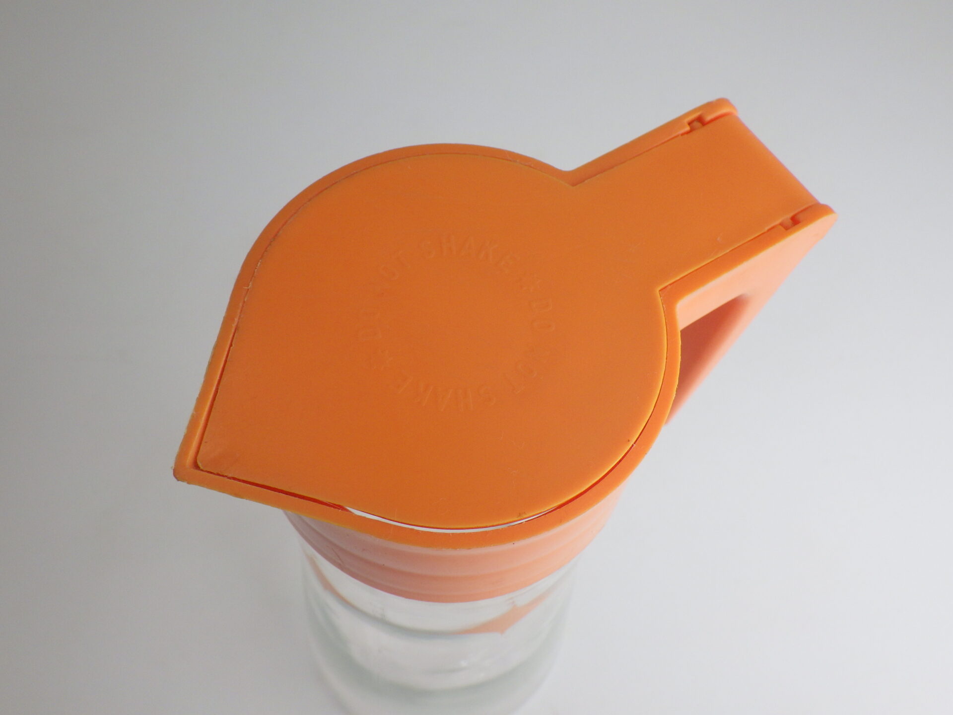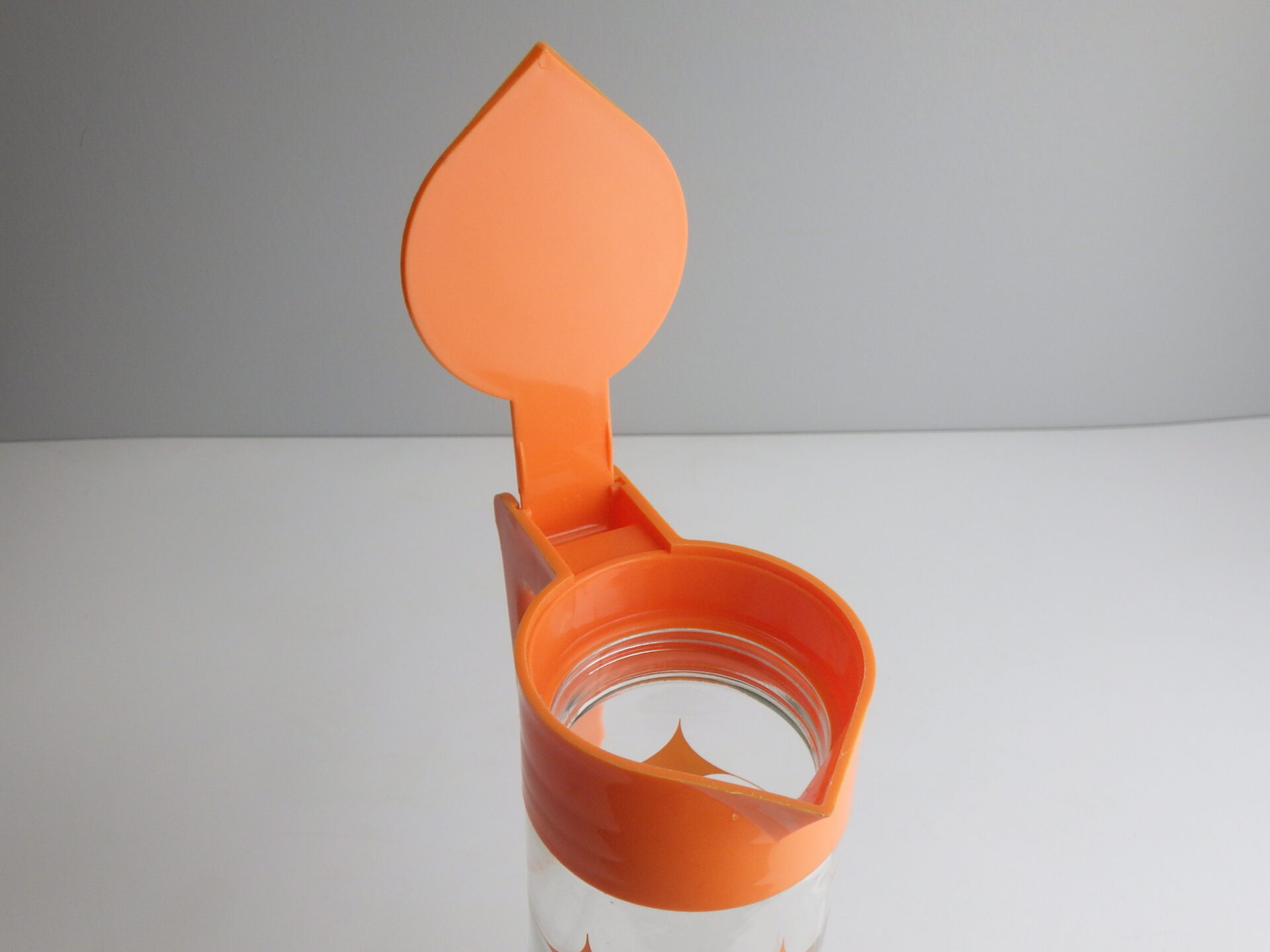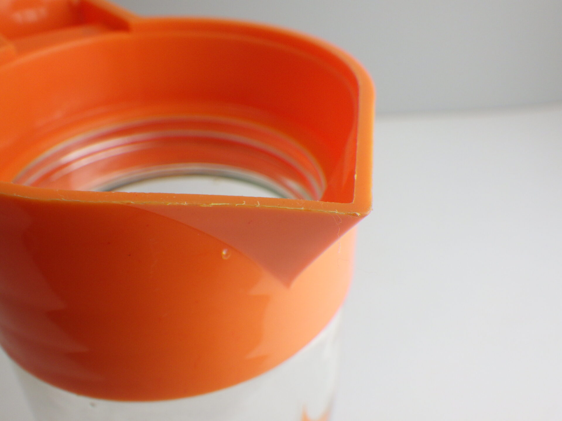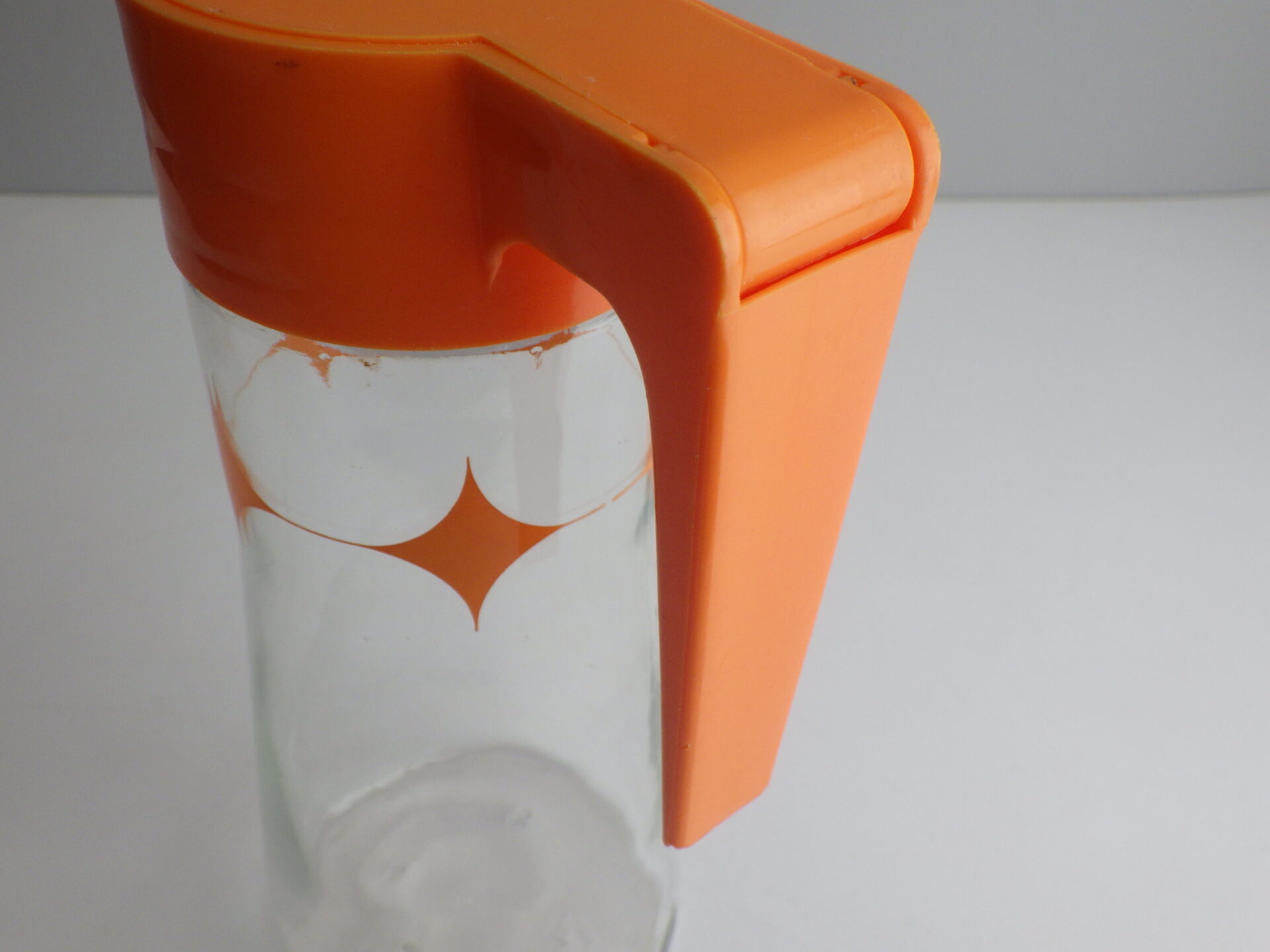 | ファイヤーキングでお馴染み、アンカーホッキング社製のジュースピッチャーです。 麦茶やレモネードなどいれて、食卓に置くだけでアクセントになりますね。 冷蔵庫にもいれやすいサイズ感です。 容量はおよそ700mlです。 |