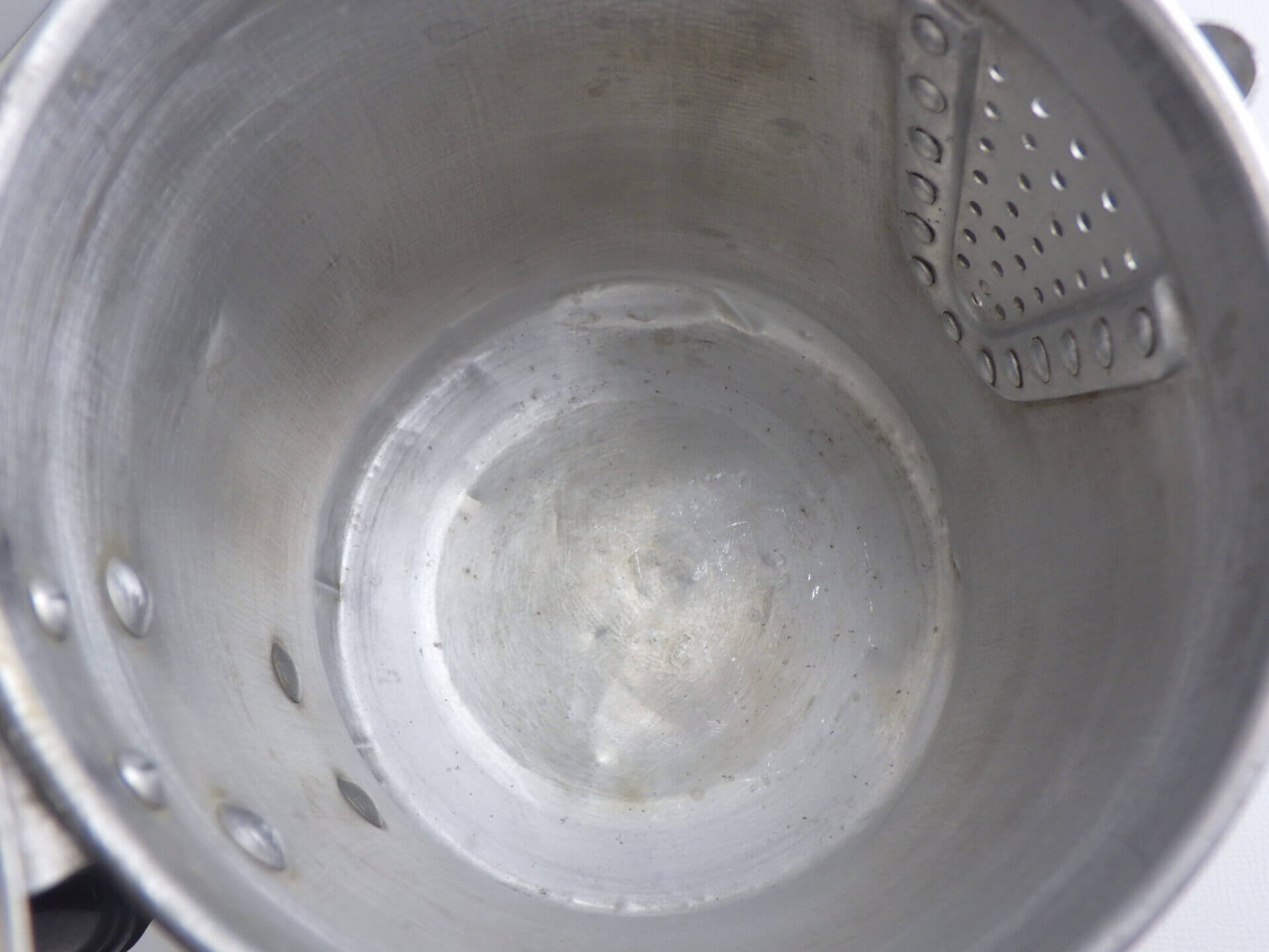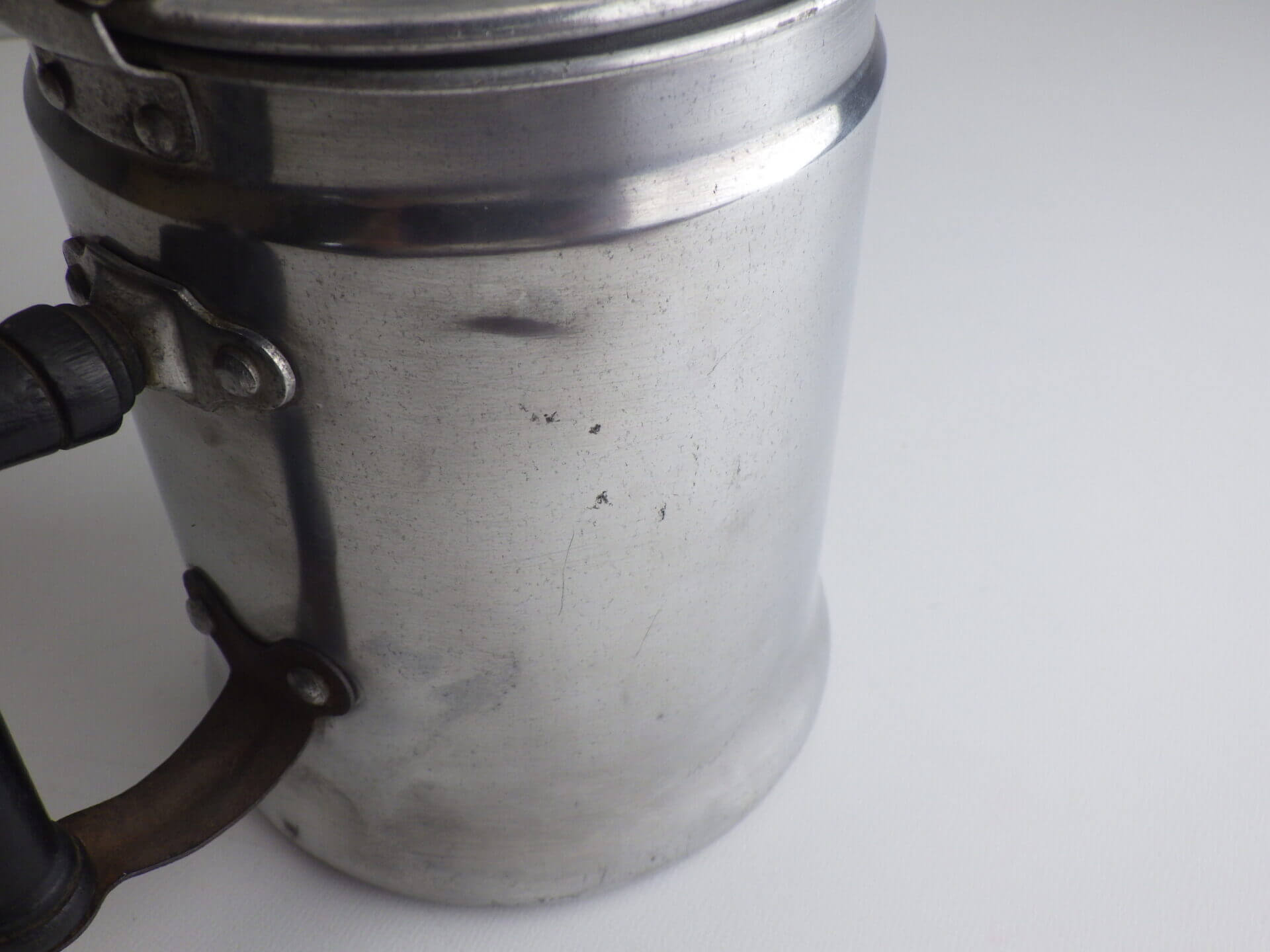 | こちらはコーヒーを沸かすパーコレーターです。 中身を取り外してポットとしてもお使いいただけます。 ソロキャンプなどに持ち出すのに良いサイズ感です。 |