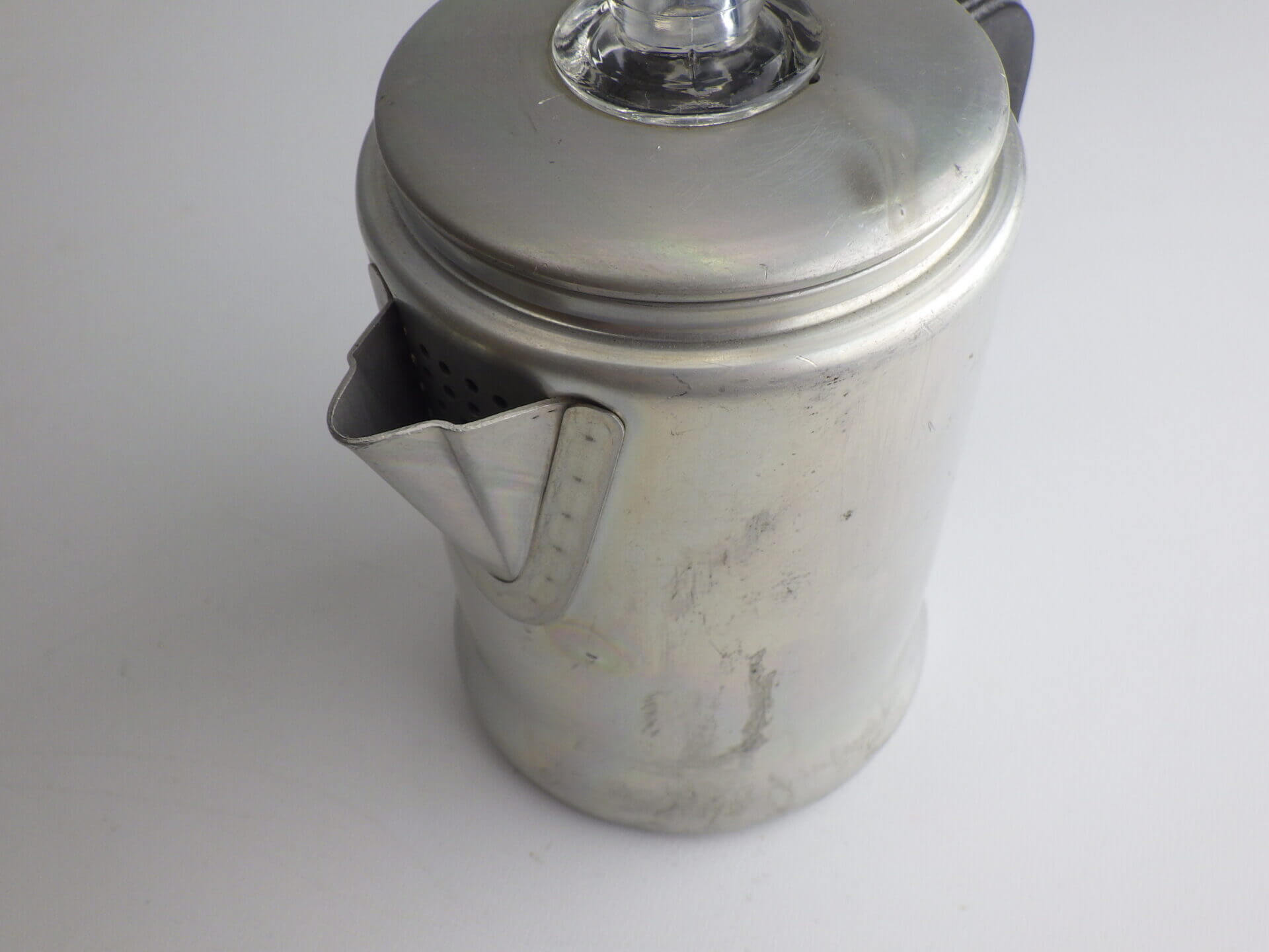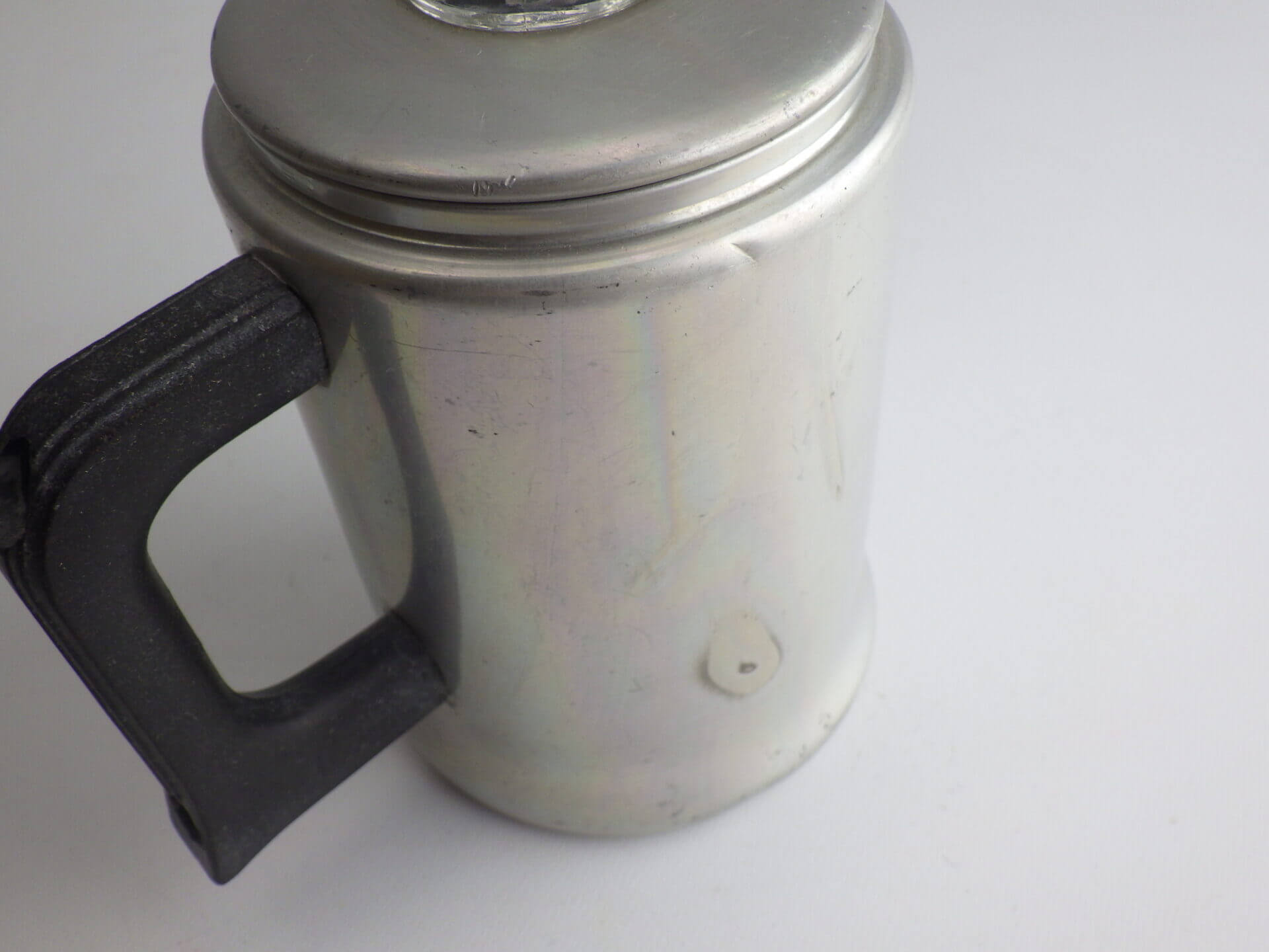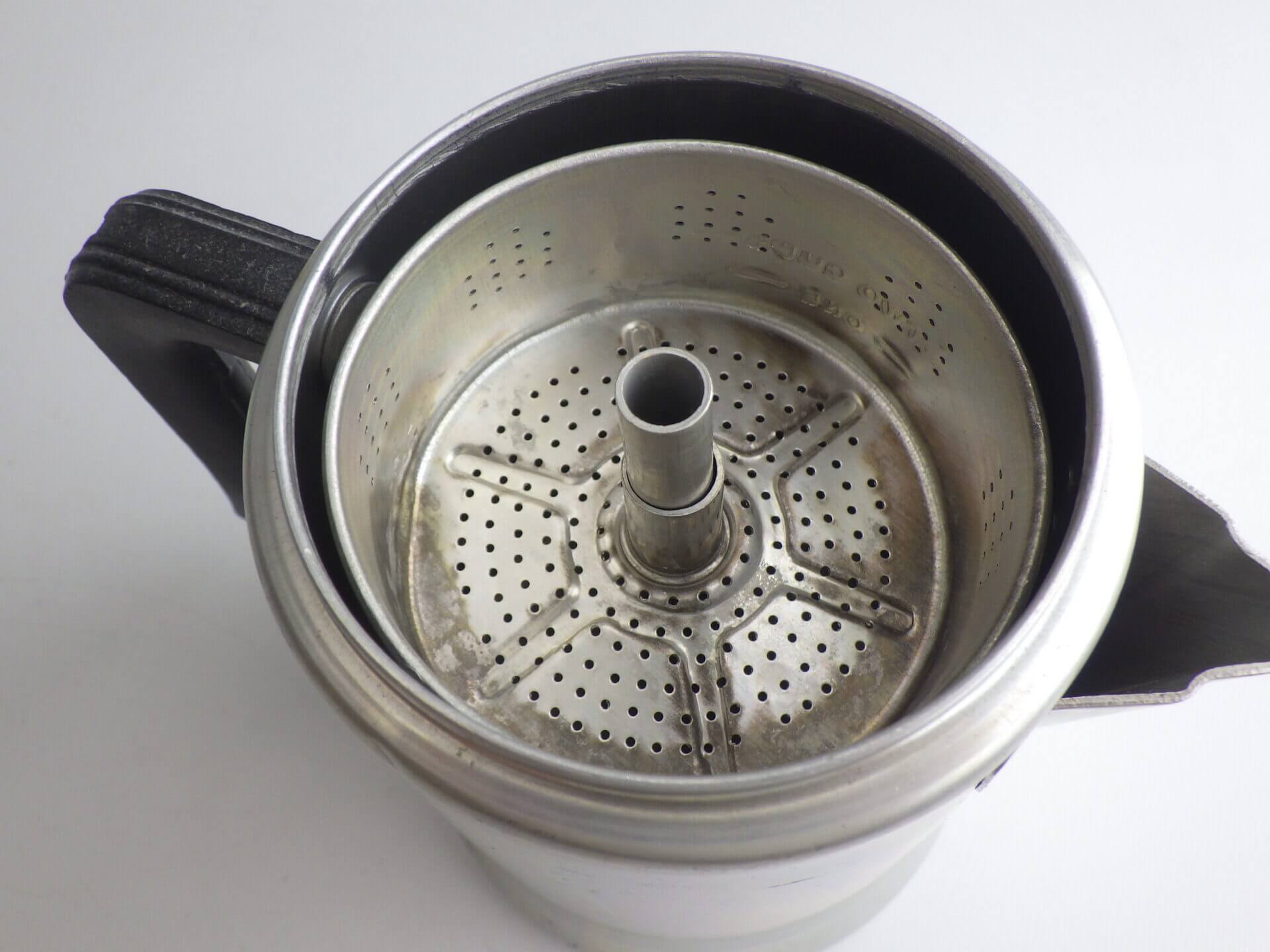 | こちらはコーヒーを沸かすパーコレーターです。 中身を取り外してポットとしてもお使いいただけます。 ソロキャンプなどに持ち出すのに良いサイズ感です。 |