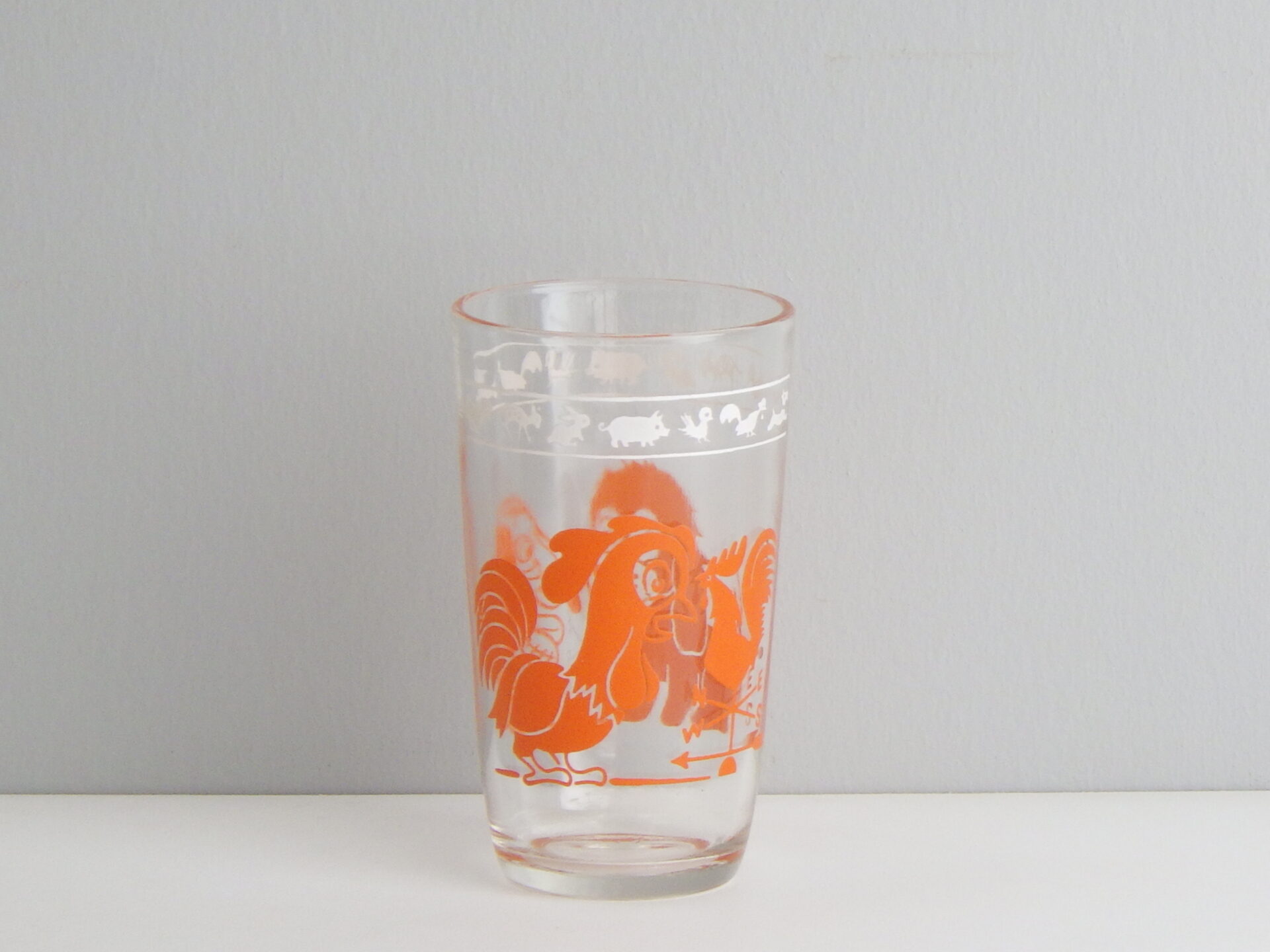 | クラフト社のチーズ販売容器として作られました。 容量は120mlで小さめのグラスです。 レトロな動物柄が可愛らしく、コレクターさんに人気のシリーズです。グラスとして使用していただく他、飾って眺めても楽しめると思います。 |