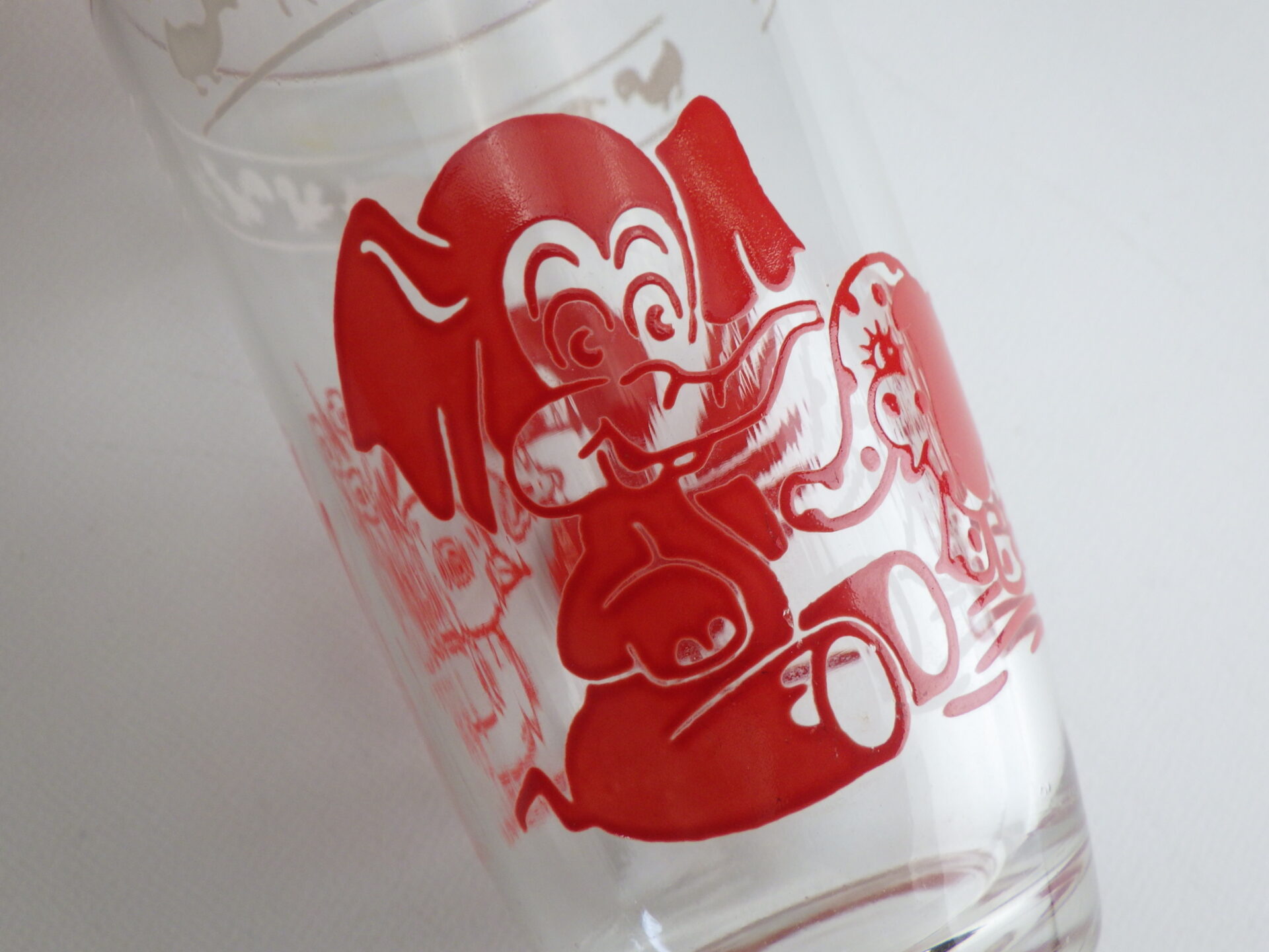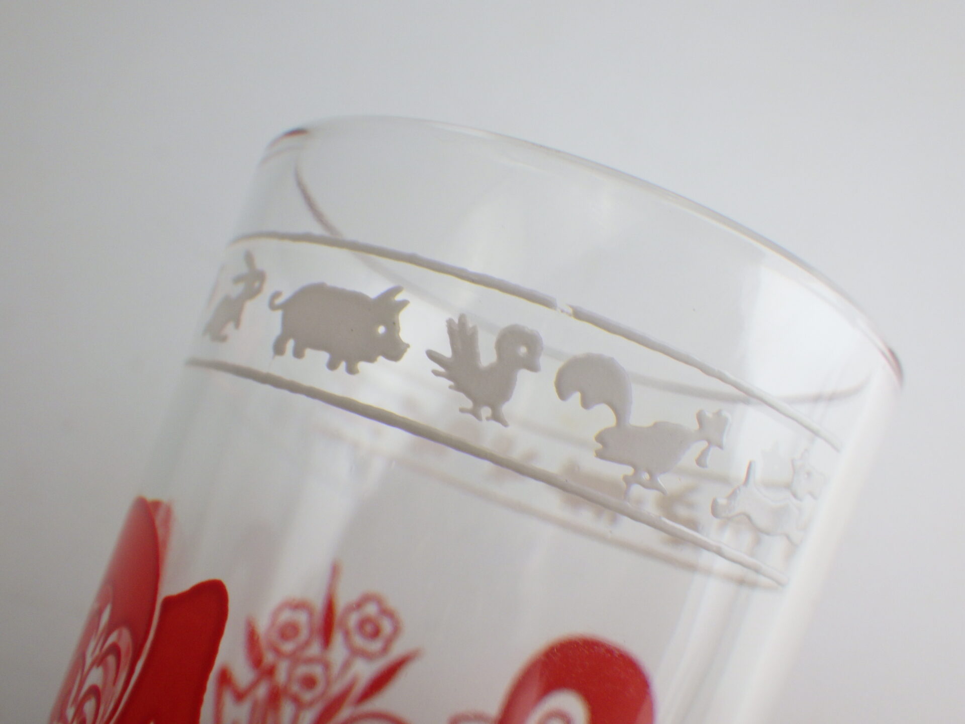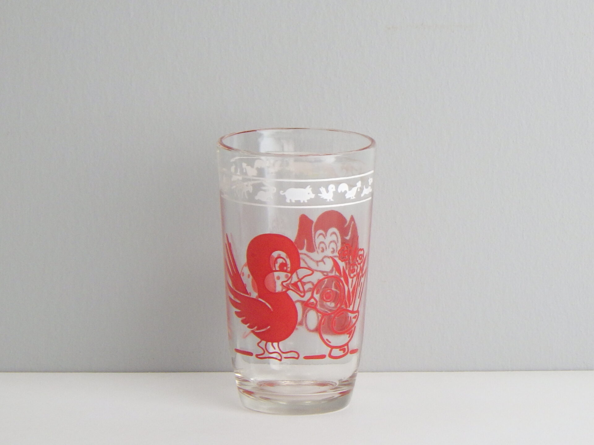 | クラフト社のチーズ販売容器として作られました。 容量は120mlで小さめのグラスです。 レトロな動物柄が可愛らしく、コレクターさんに人気のシリーズです。グラスとして使用していただく他、飾って眺めても楽しめると思います。 |