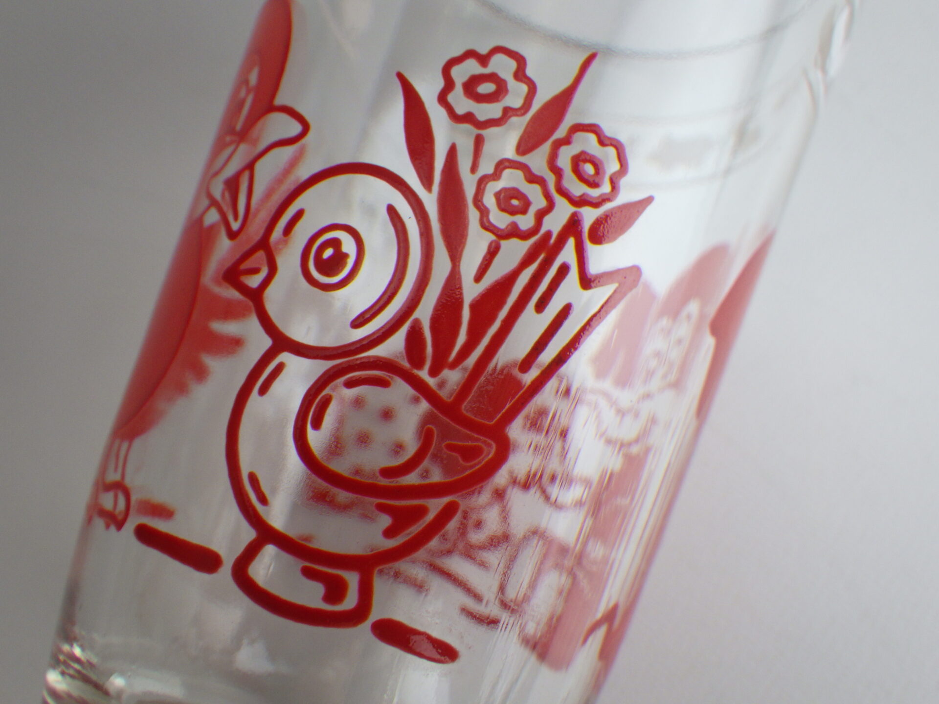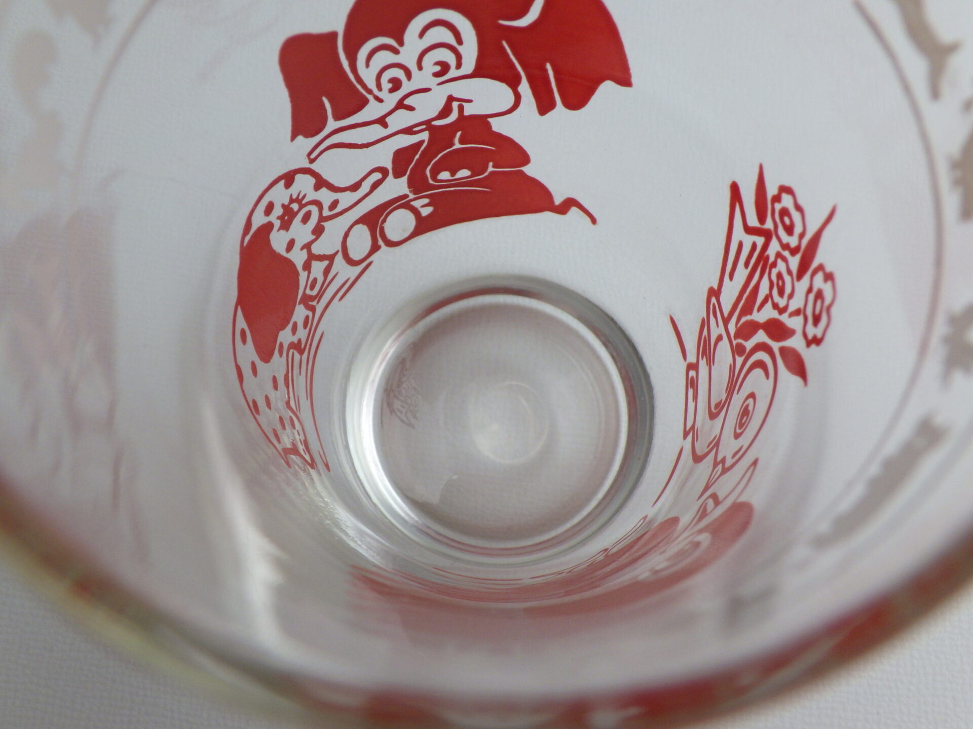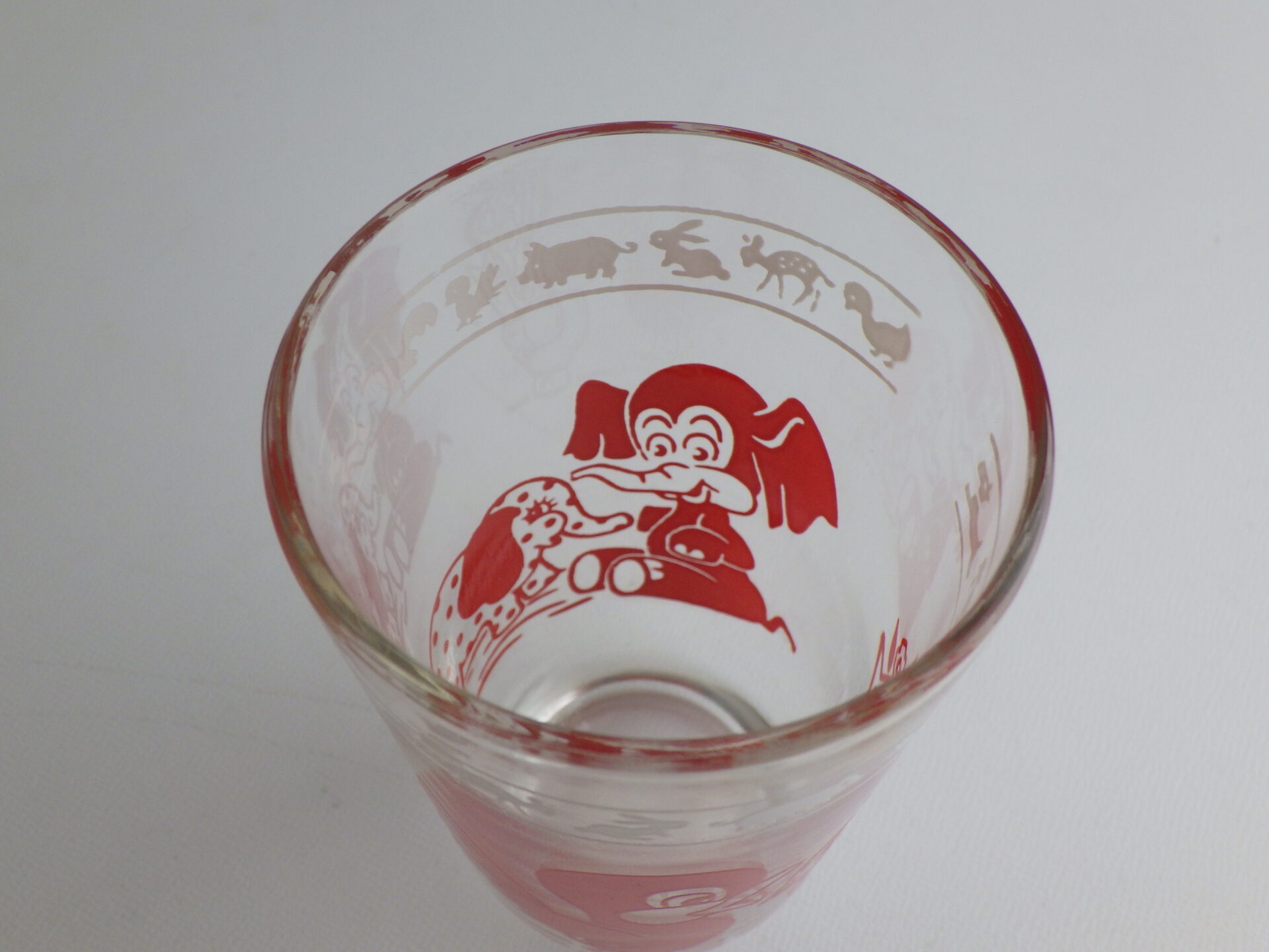 | クラフト社のチーズ販売容器として作られました。 容量は120mlで小さめのグラスです。 レトロな動物柄が可愛らしく、コレクターさんに人気のシリーズです。グラスとして使用していただく他、飾って眺めても楽しめると思います。 |