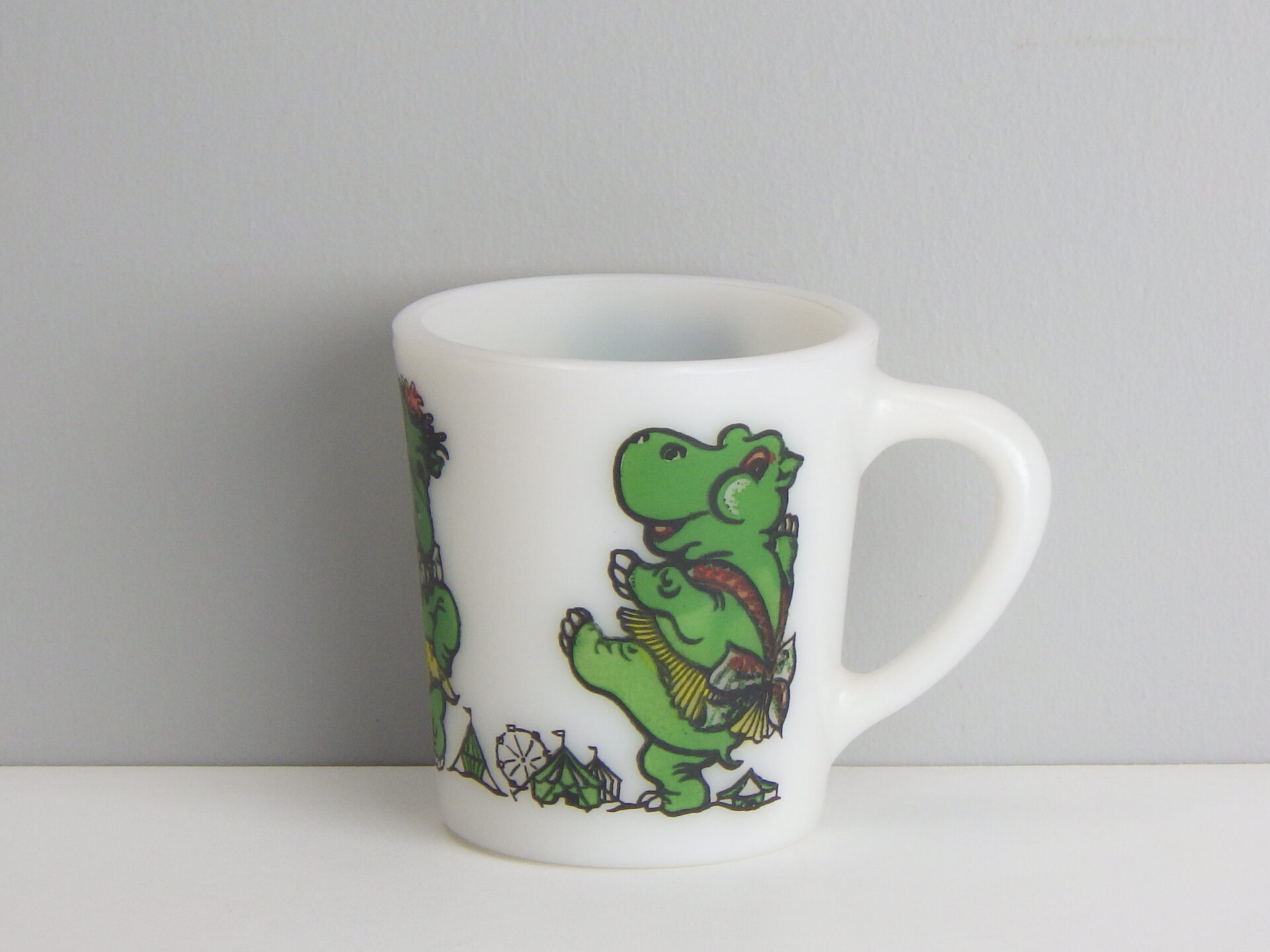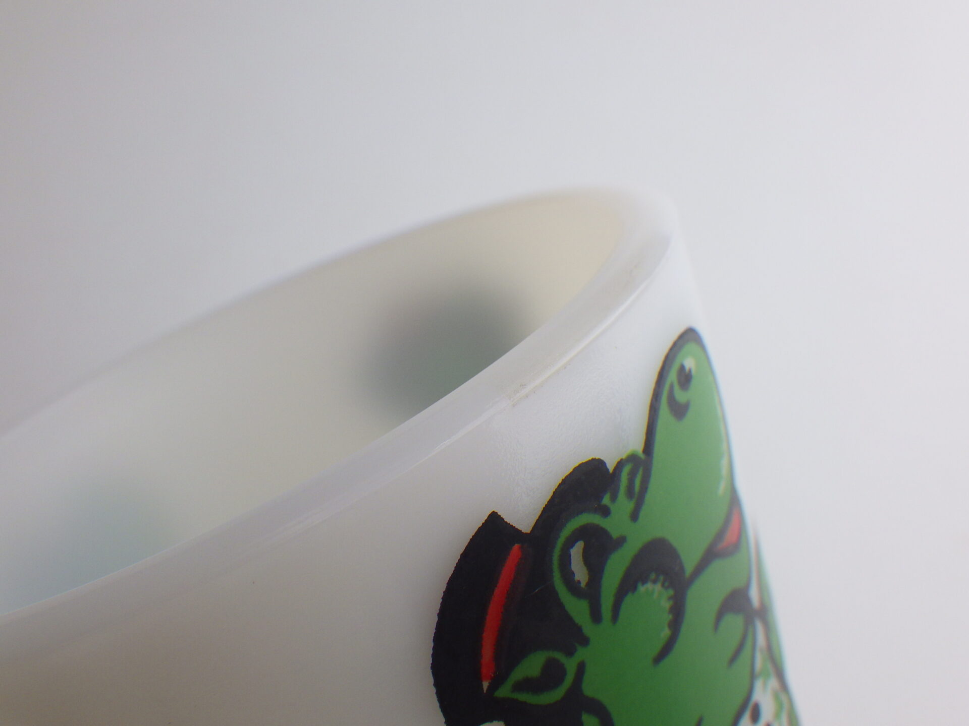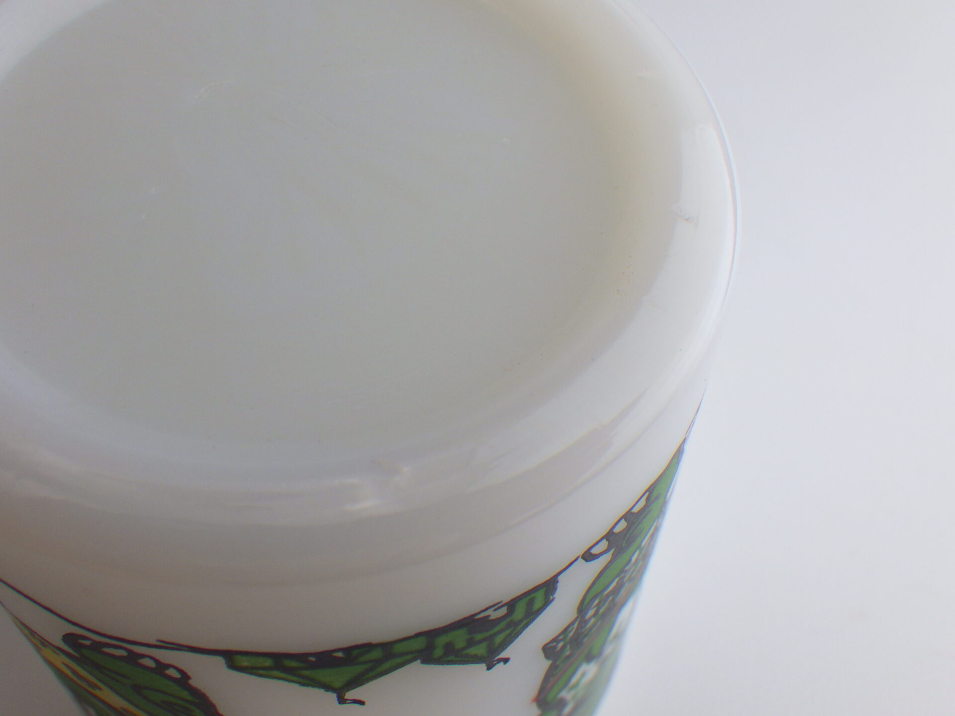 | 蓋つきのカッテージチーズ容器として販売されていたシリーズ。 全6種類のキャラクターが描かれており、どれもカラフルで可愛いシリーズです。 ちなみにミルクガラスマグでは珍しく、一部がハンドペイントで製作されているシリーズです。 近年では入手困難なレアアイテムとなっていますので、気になる方は是非♪ |