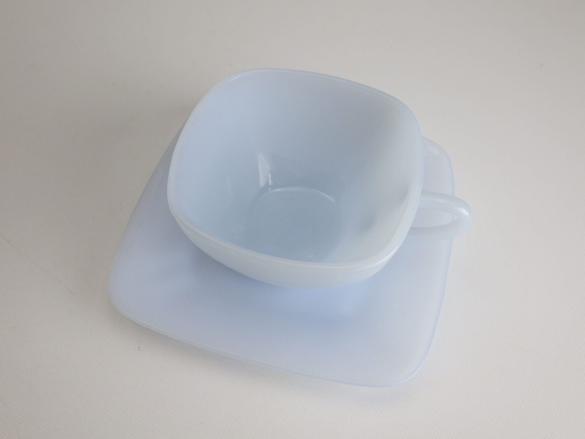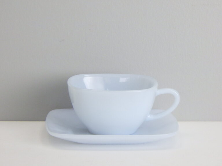 | 透明感があり、気品に満ちた「アズライト」。ジェダイと同じく、宝石の名前を冠したシリーズです。 その中の「チャーム」シリーズは、1950〜56年に製造されており、四角いフォルムが特徴です。 中身が透けるのでコーヒーや紅茶を淹れた時の表情も素敵ですよ。 来客用にもおすすめのシリーズです。 |