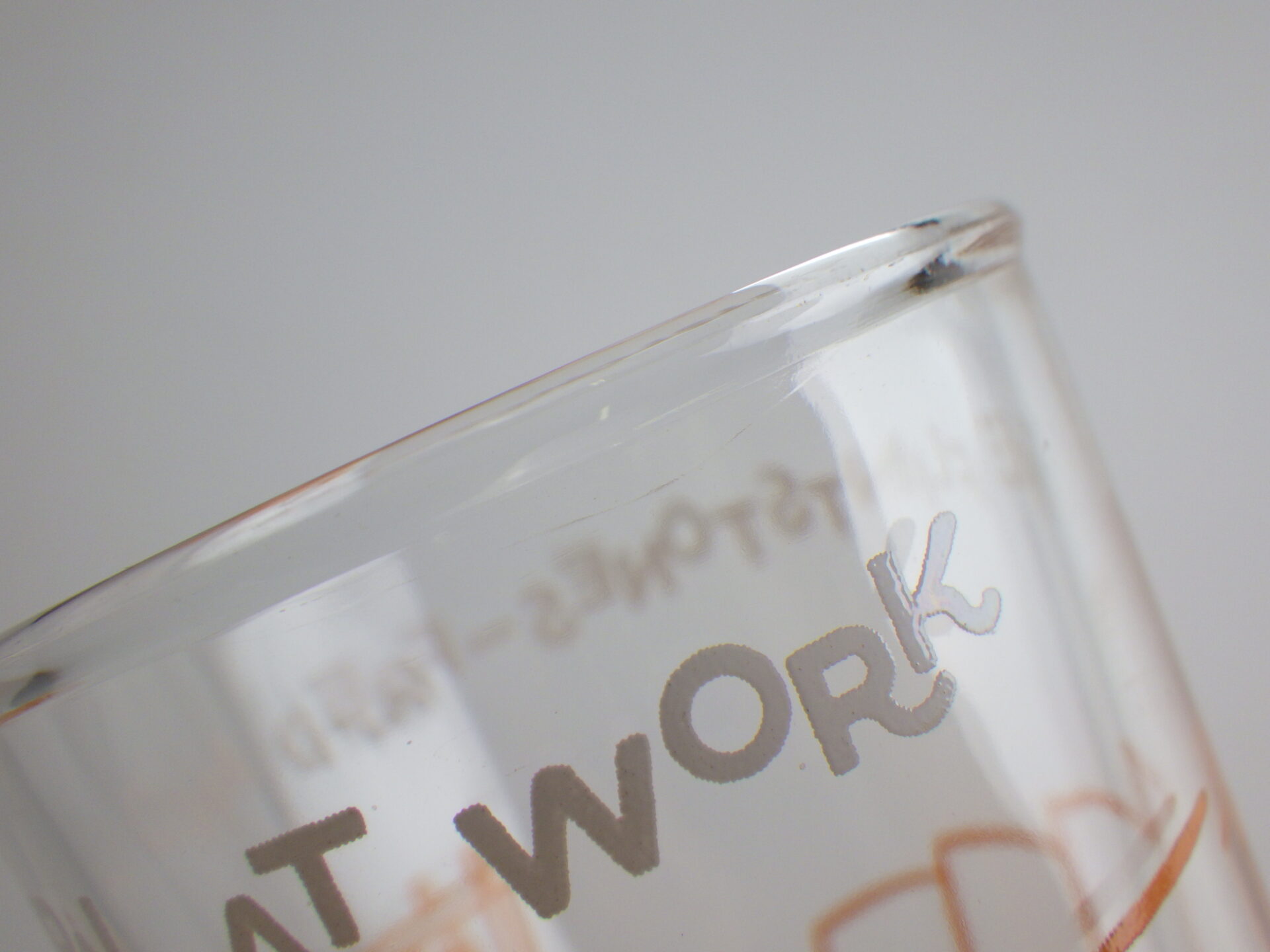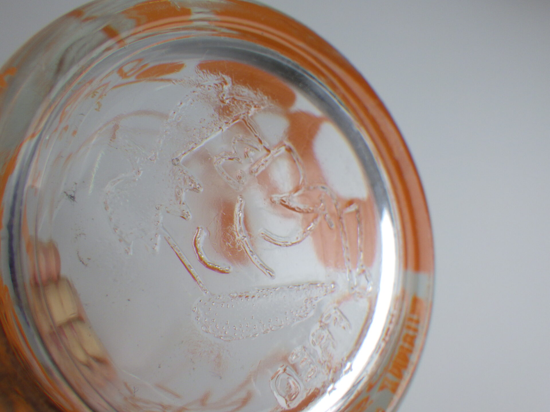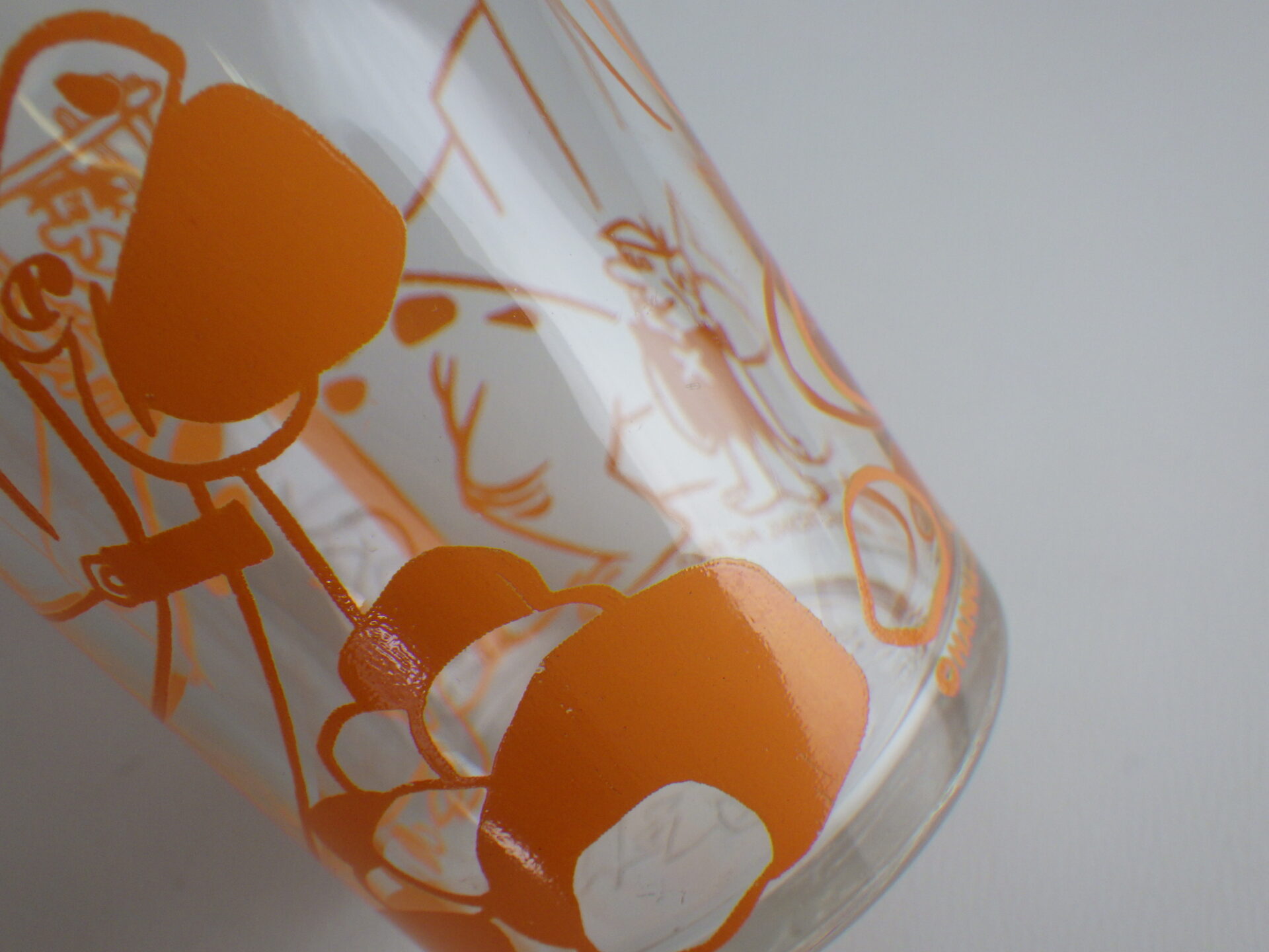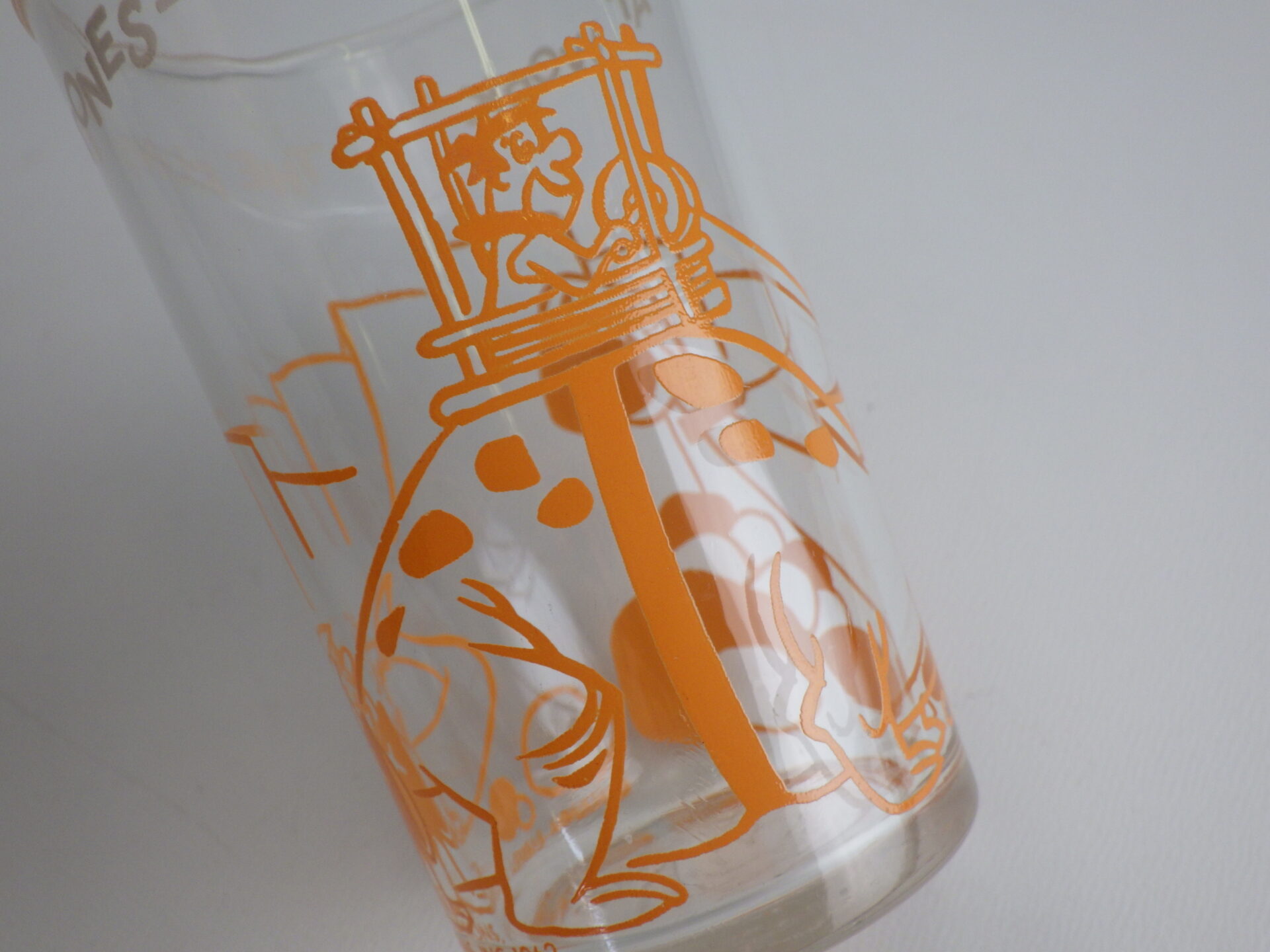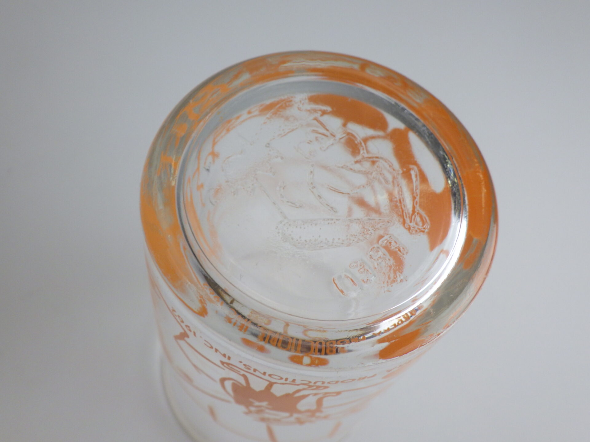 | 「トムとジェリー」でお馴染みの「ハンナ・バーベラ・プロダクション」のビンテージグラスです。 元は、グレープジュースでお馴染みのウェルチのジャムが入っていました。 ボトム面のキャラクターエンボスは、クッキーの型押しに使えます。 |
