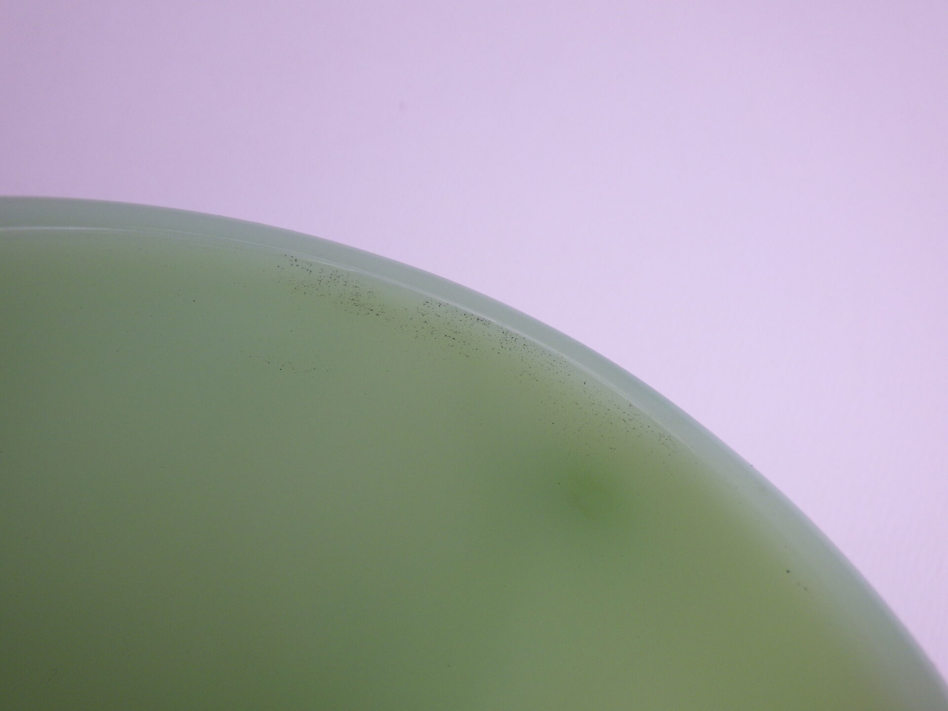 | condition | 側面、リムに薄い着色、金属痕があります。 ボトムにわずかなスレがあります。 ミルクガラス特有のヘアライン、劣化線、練りムラなどありますが、ご使用に影響のあるダメージはありません。 不明な点や追加画像の必要な場合は、お気軽にお問い合わせ下さい。 |