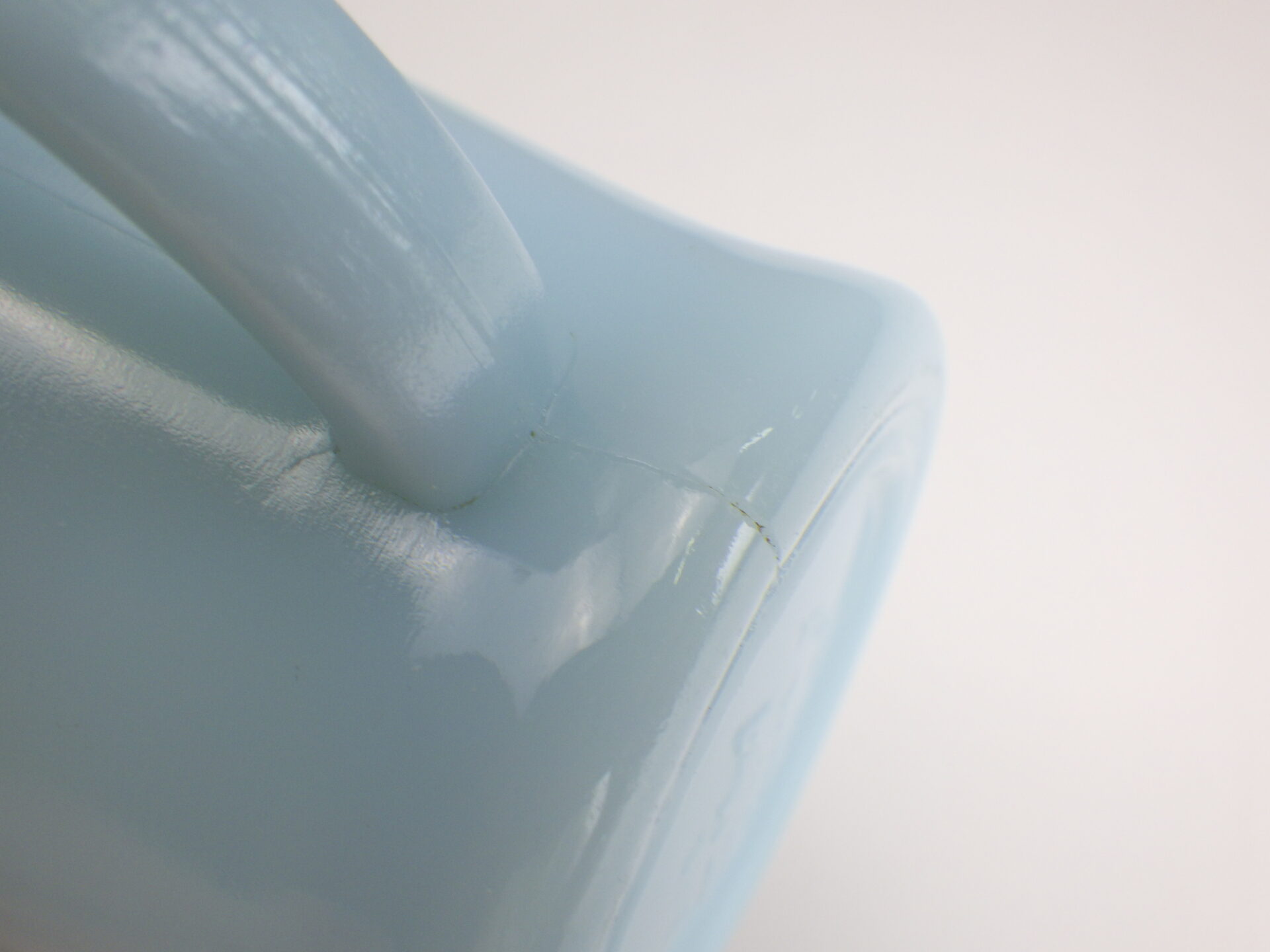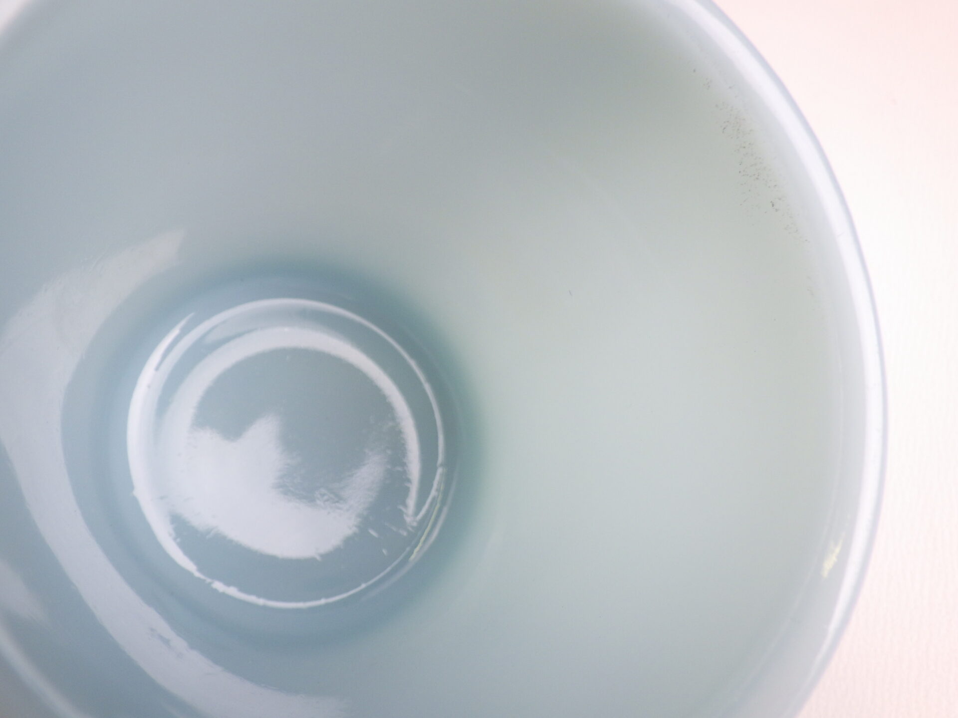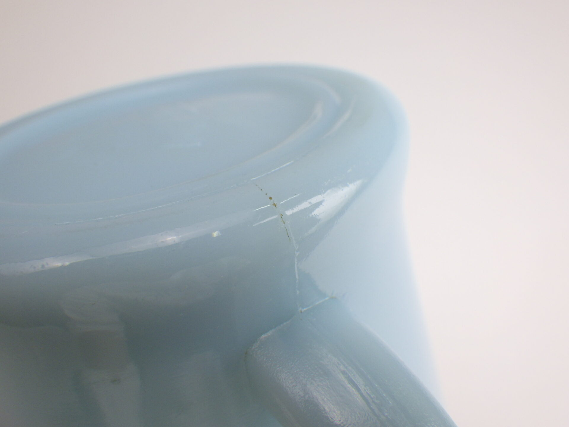| condition | リム内側に、ごくわずかなチップ、がたつき、薄い着色があります。 ボトム、ハンドルに薄い着色があります。 ボトムに浅いキズがあります。 ミルクガラス特有の製造時よりのヘアライン、ヨレなどありますが、ご使用に影響のあるダメージはなく、ツヤもあり良い状態です。 その他気になる点や、追加画像の必要な場合は、お気軽にお問い合わせ下さい。 |