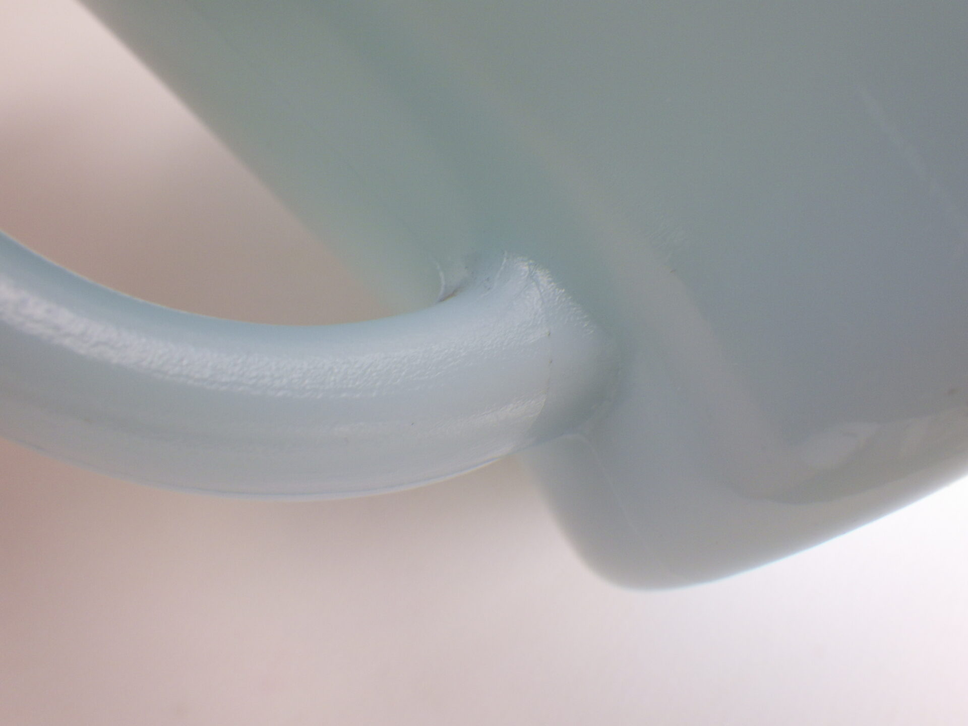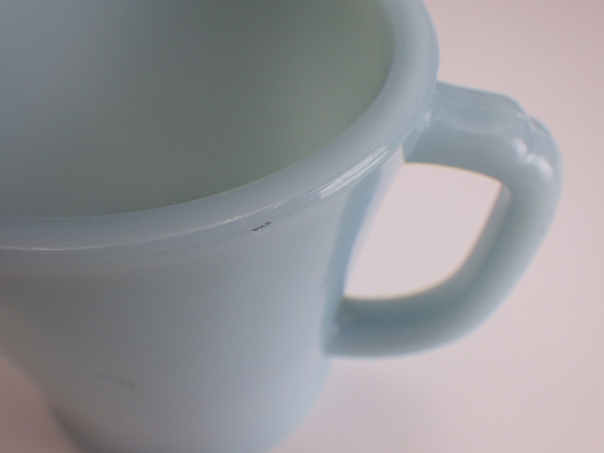 | condition | リムにスレ、薄い着色があります。 ボトム付近、ハンドルに薄い着色があります。 内側にわずかな使用感があります。 ミルクガラス特有の製造時よりのヘアライン、ヨレなどありますが、ご使用に影響のあるダメージはなく、ツヤもあり良い状態です。 その他気になる点や、追加画像の必要な場合は、お気軽にお問い合わせ下さい。 |