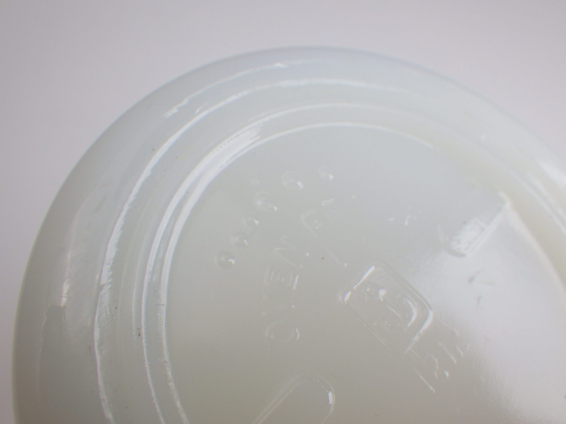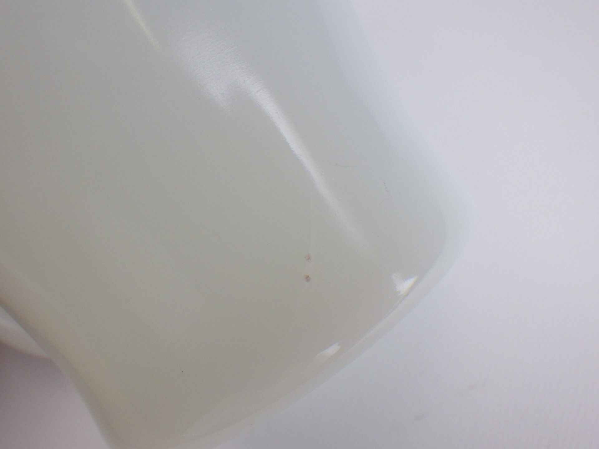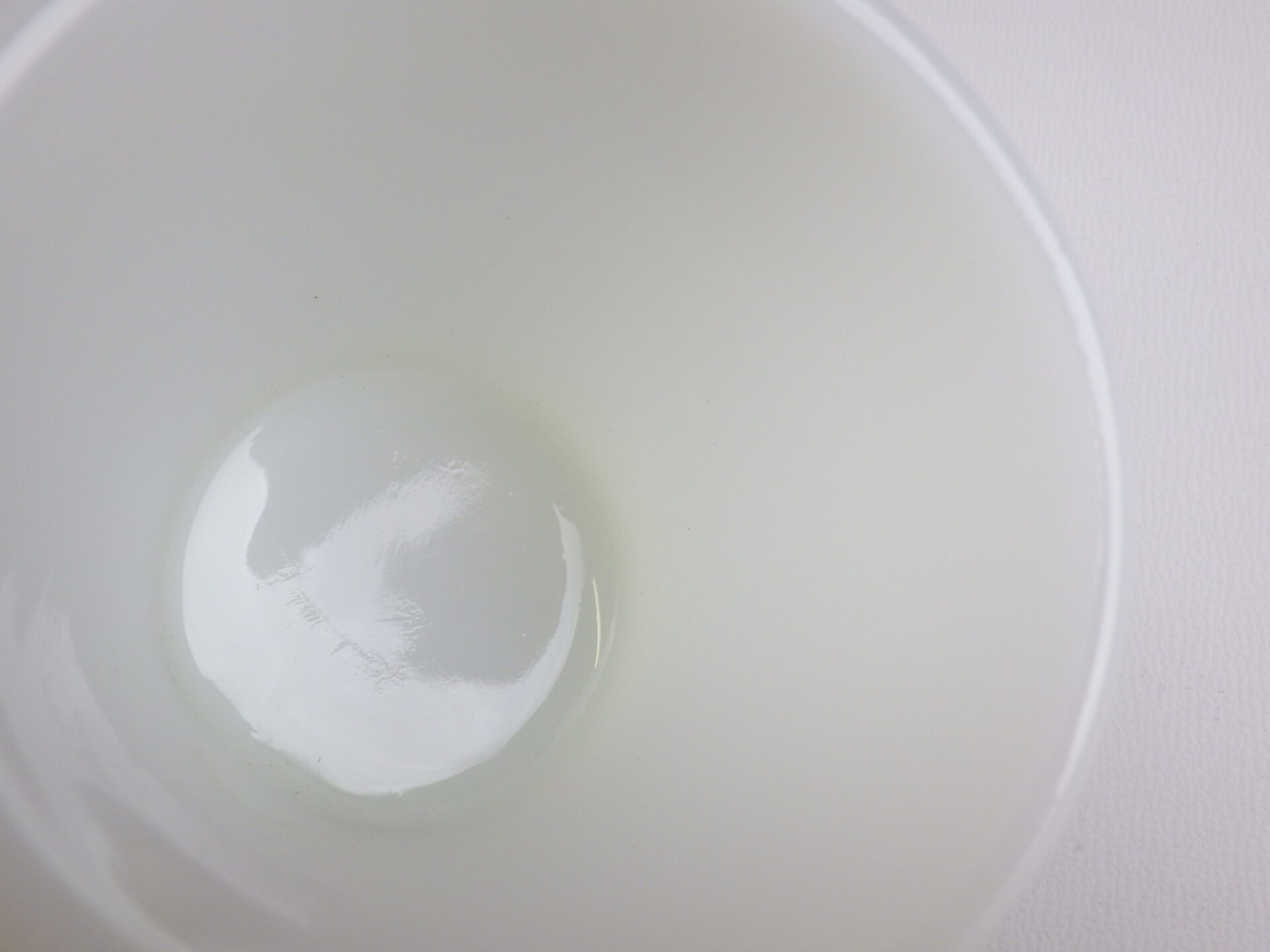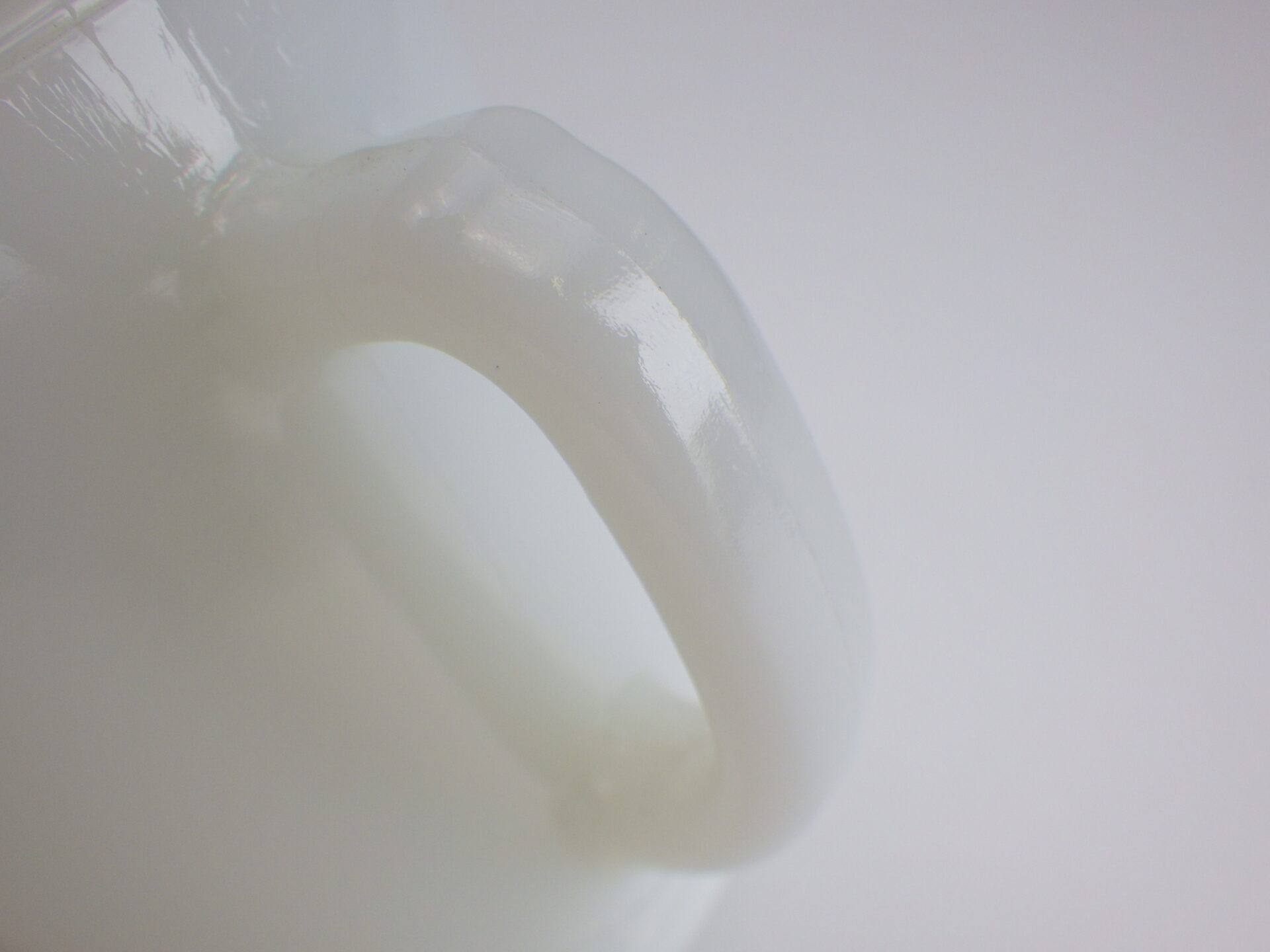 | condition | ボトムに小さな当たりキズがあります。 ミルクガラス特有のヘアラインなどあります。 ボトム、側面、ハンドル、リムにごくわずかな薄い着色があります。 その他ご使用に影響があるダメージはなく、ツヤもあり良い状態です。 不明な点や追加画像の必要な場合は、お気軽にお問い合わせ下さい。 |
