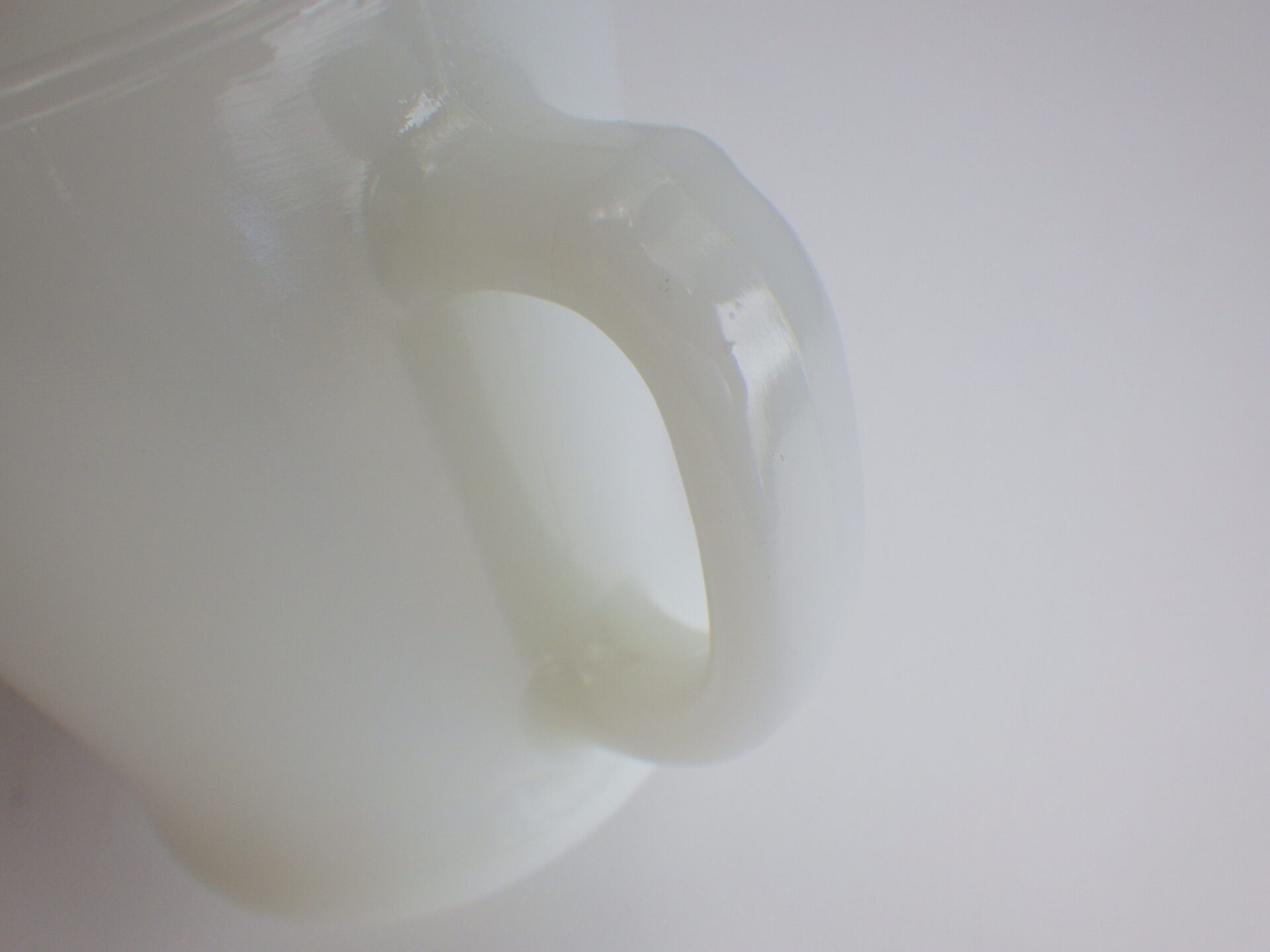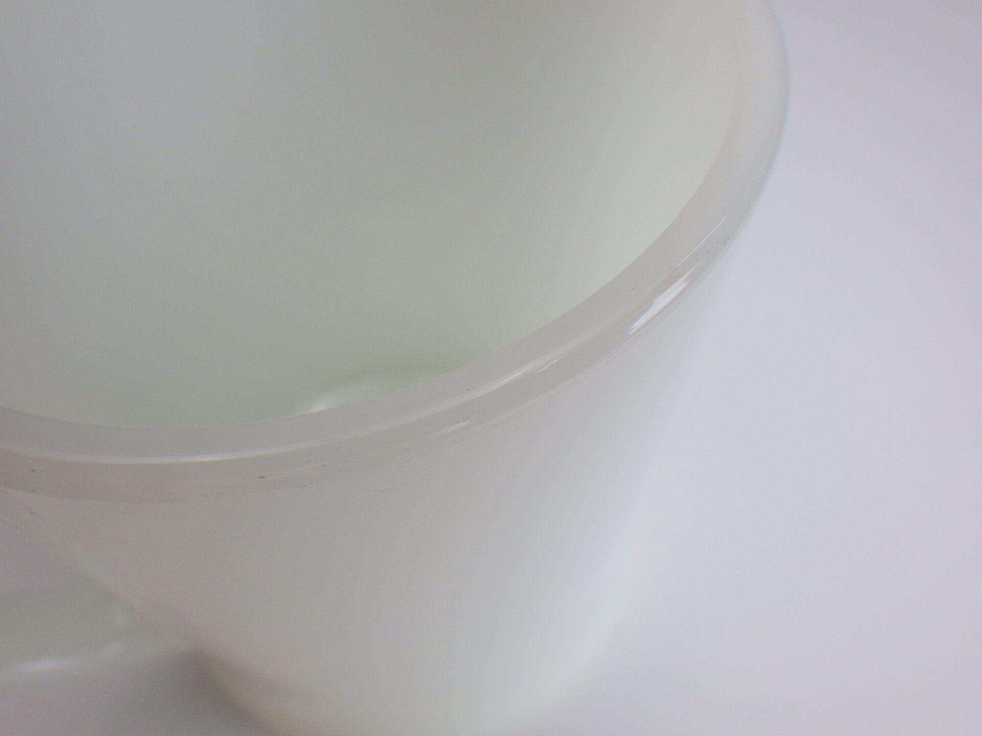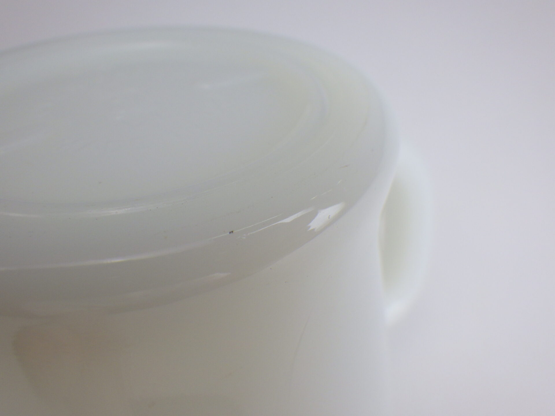 | condition | ミルクガラス特有のヘアラインなどあります。 ボトム、側面、ハンドル、リムにごくわずかな薄い着色があります。 その他ご使用に影響があるダメージはなく、ツヤもあり良い状態です。 不明な点や追加画像の必要な場合は、お気軽にお問い合わせ下さい。 |