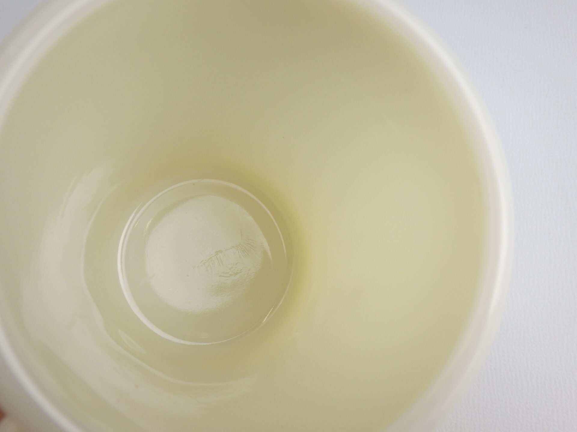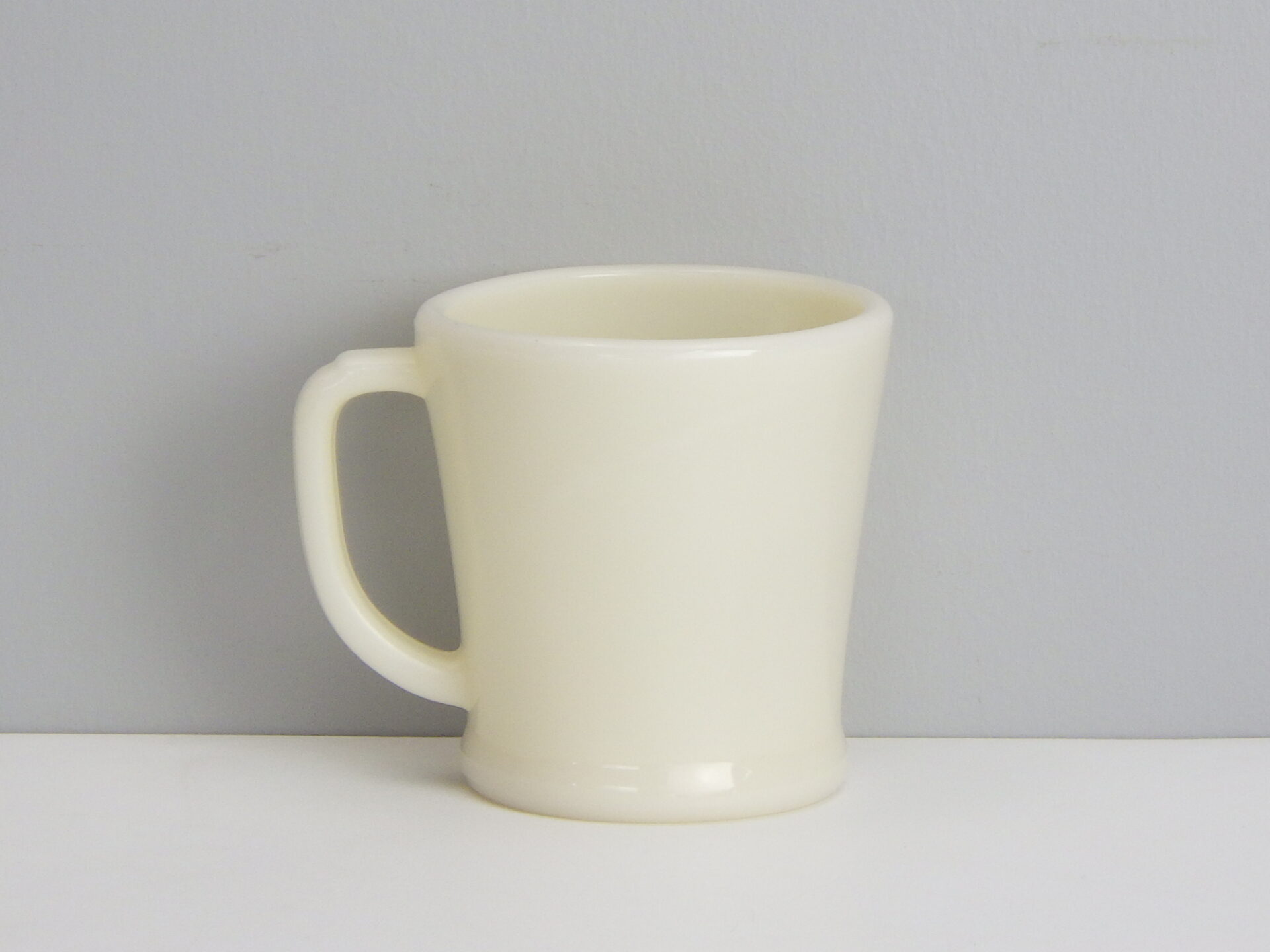 | 別名「フラットボトムマグ」と呼ばれる底が平らなデザインで、初期のDハンドルマグです。 コーヒーを注いだ時に中が透けて見える感じがとても可愛く、贈り物としてもおススメしています。 |