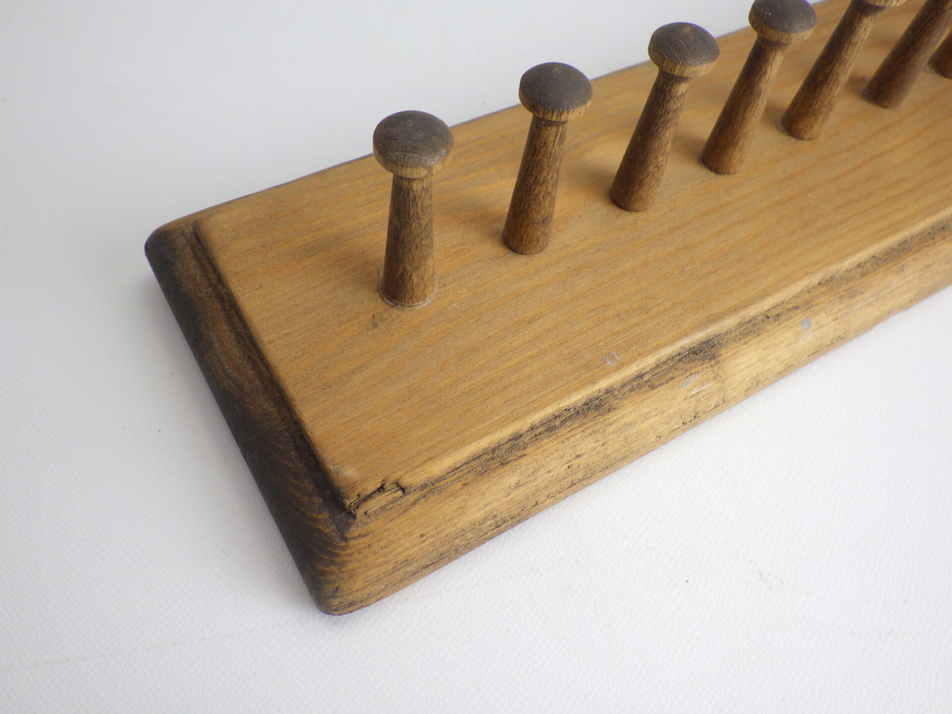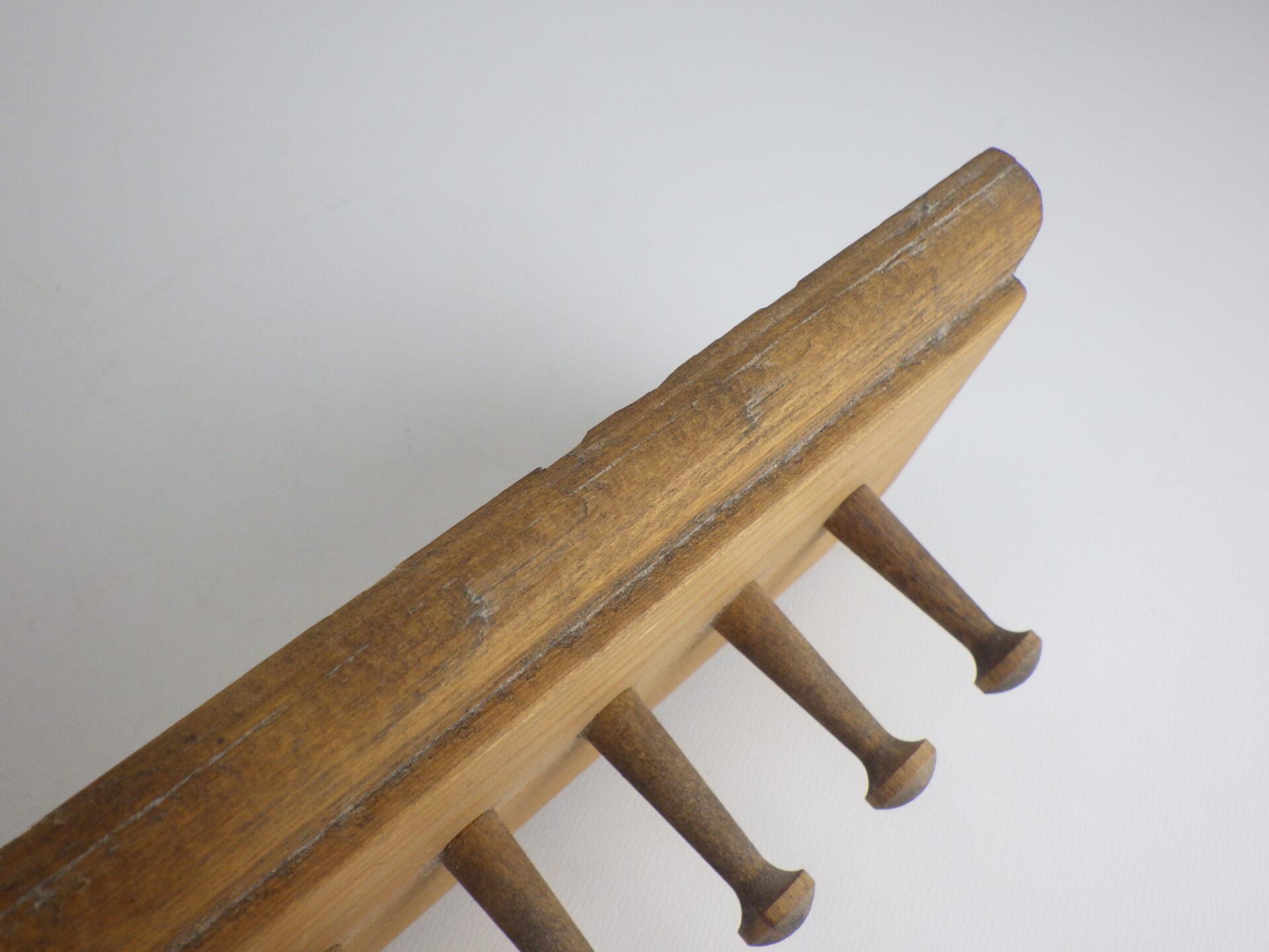 | アメリカで買い付けました、ビンテージの木製壁掛けラックです。 キーホルダーとして玄関先などに掛けたり、リビングや寝室などでドライフラワーなどを吊るしてインテリアとしてお楽しみいただくのも良さそうです。 |