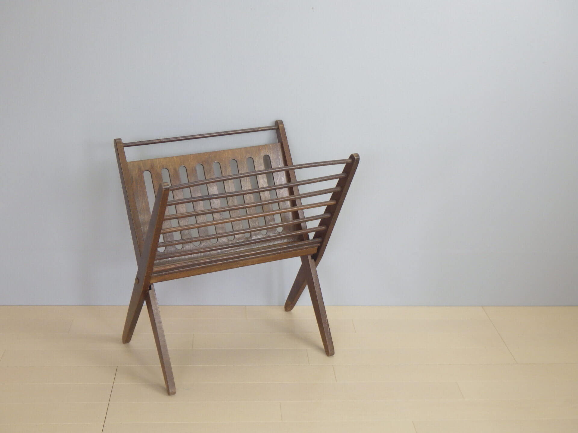 | アメリカで買い付けました。 ビンテージのマガジンラックです。 折り畳み式で必要な時に表に出せるような造りです。 ソファやベッドサイドなどに置けば、モダンな雰囲気を演出してくれるアイテムです。 |