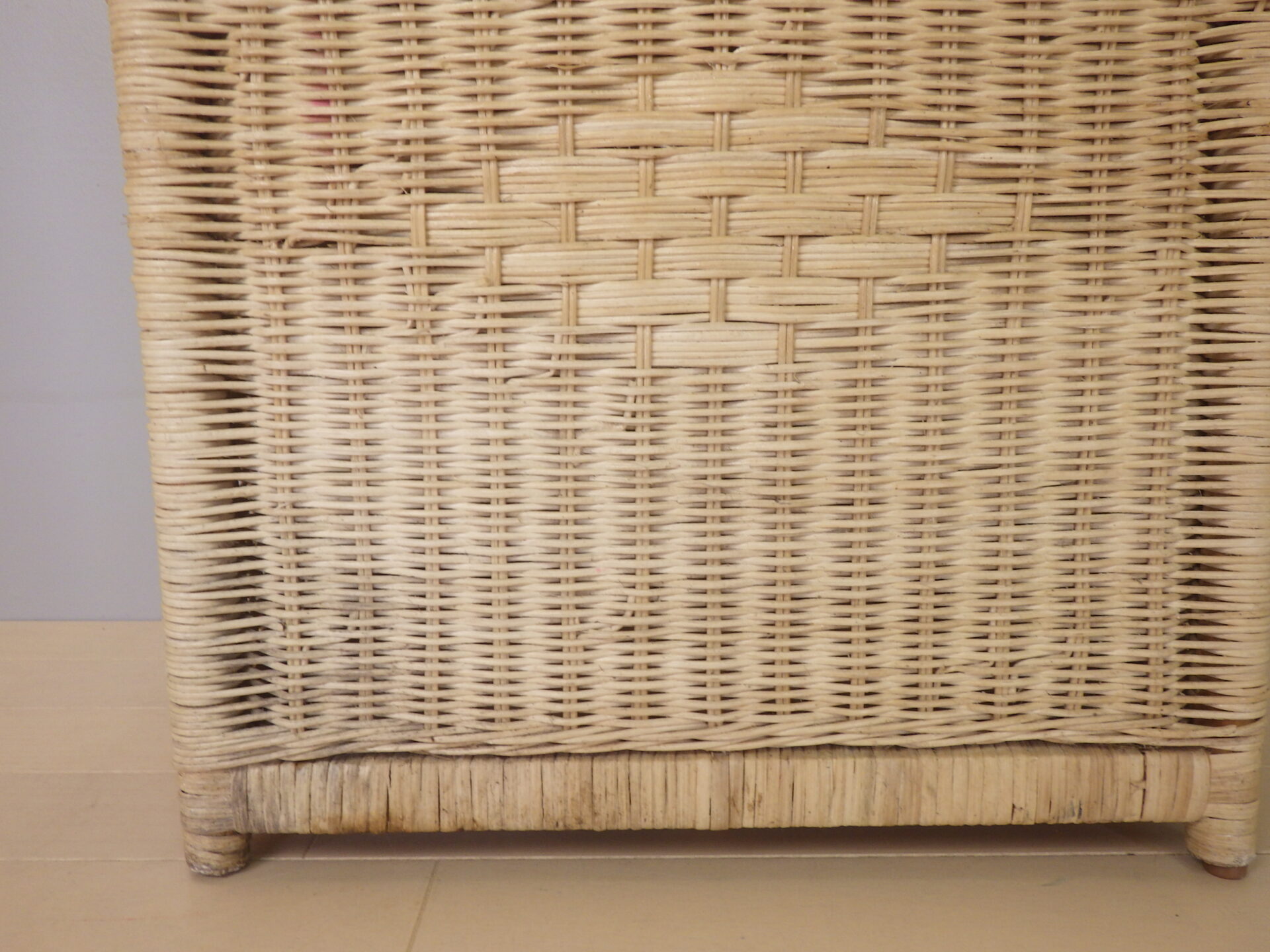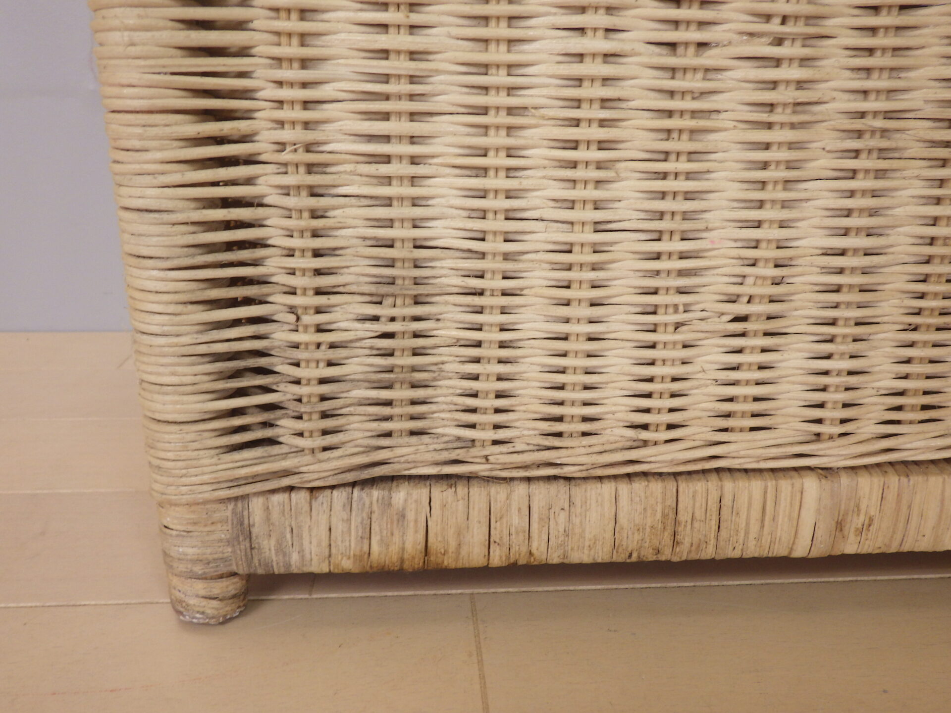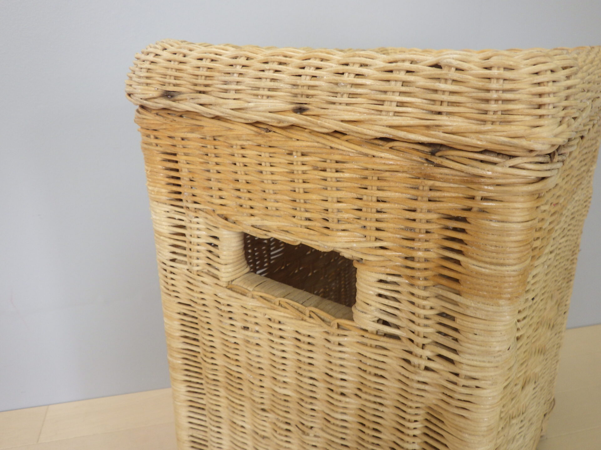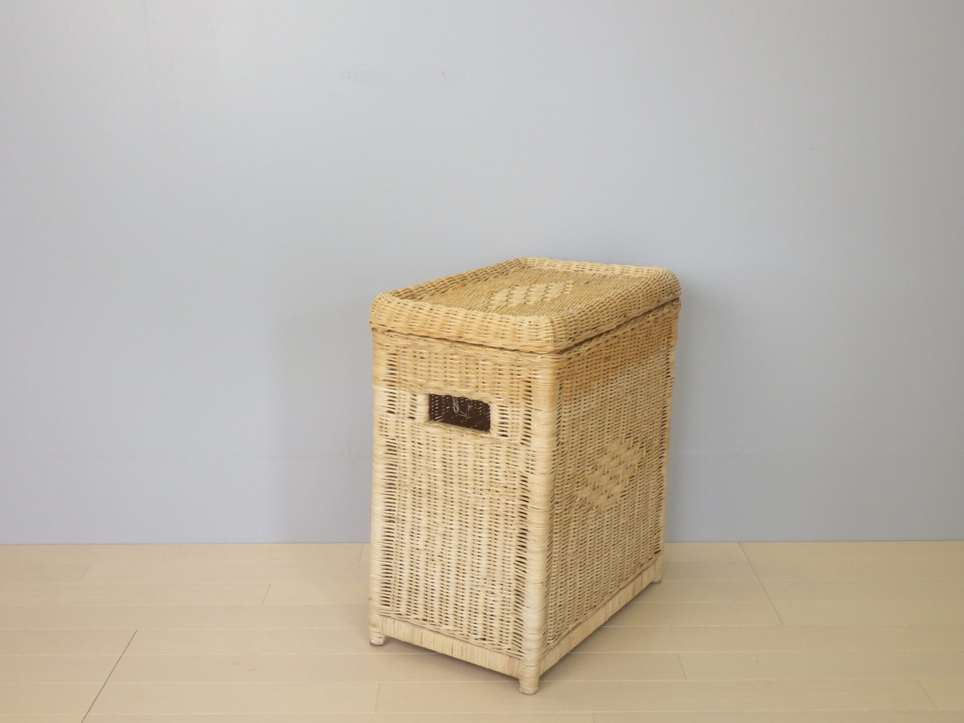 | アメリカで買い付けました。 ビンテージのラタンの収納ボックスです。 元はランドリーボックスとして使用されていたようです。 衣類や小物などの収納に幅広く使えるアイテムですね。 おもちゃ入れ等にしても良さそうです。 また、かなり頑丈な作りですので、上にフラワーベースや雑貨などを飾ってインテリアとしてもお楽しみいただけます。 |