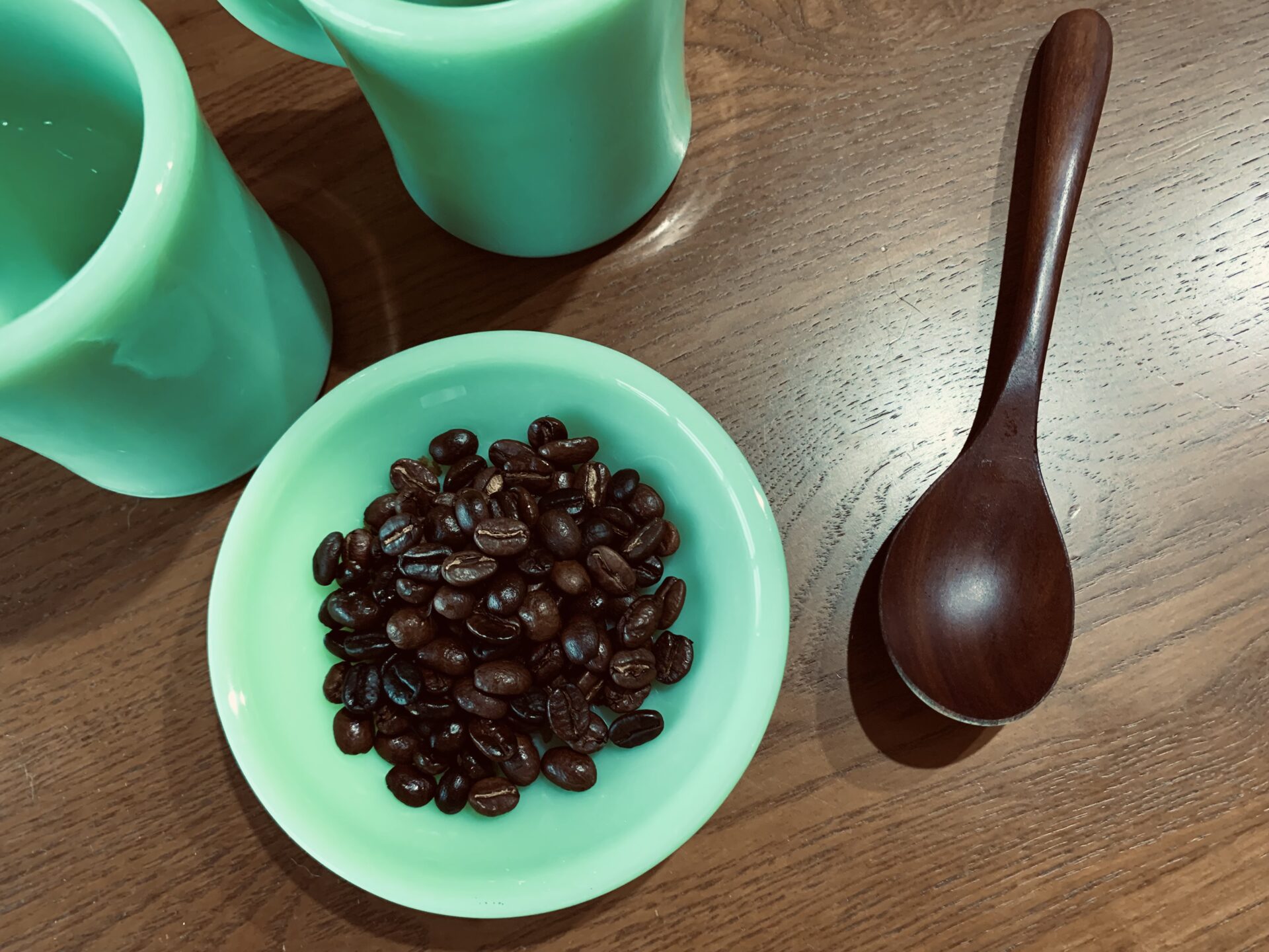 さて、先日、コーヒーミルをお買い求めのお客様から、オリジナルブレンドのコーヒー豆をいただきました。