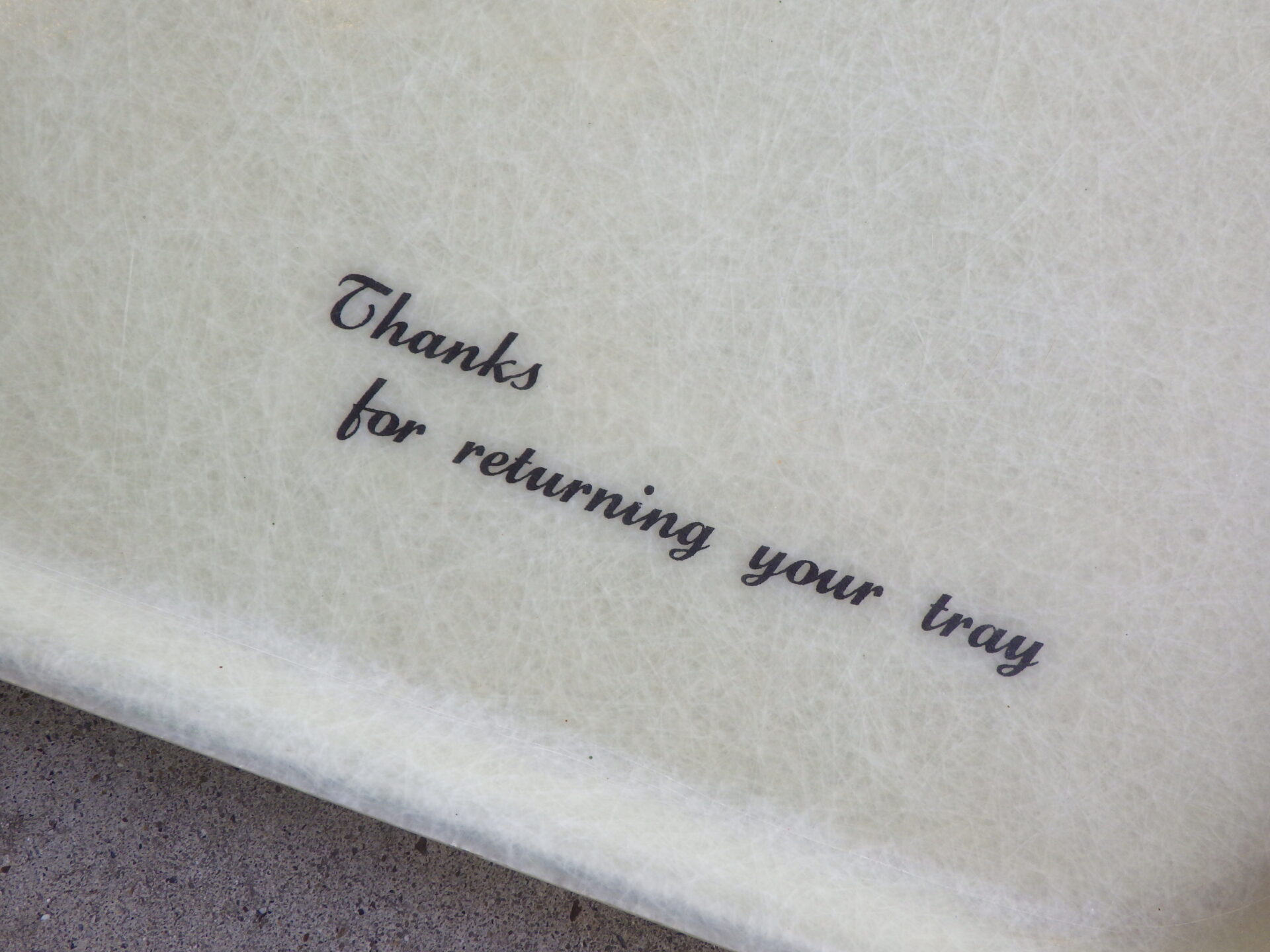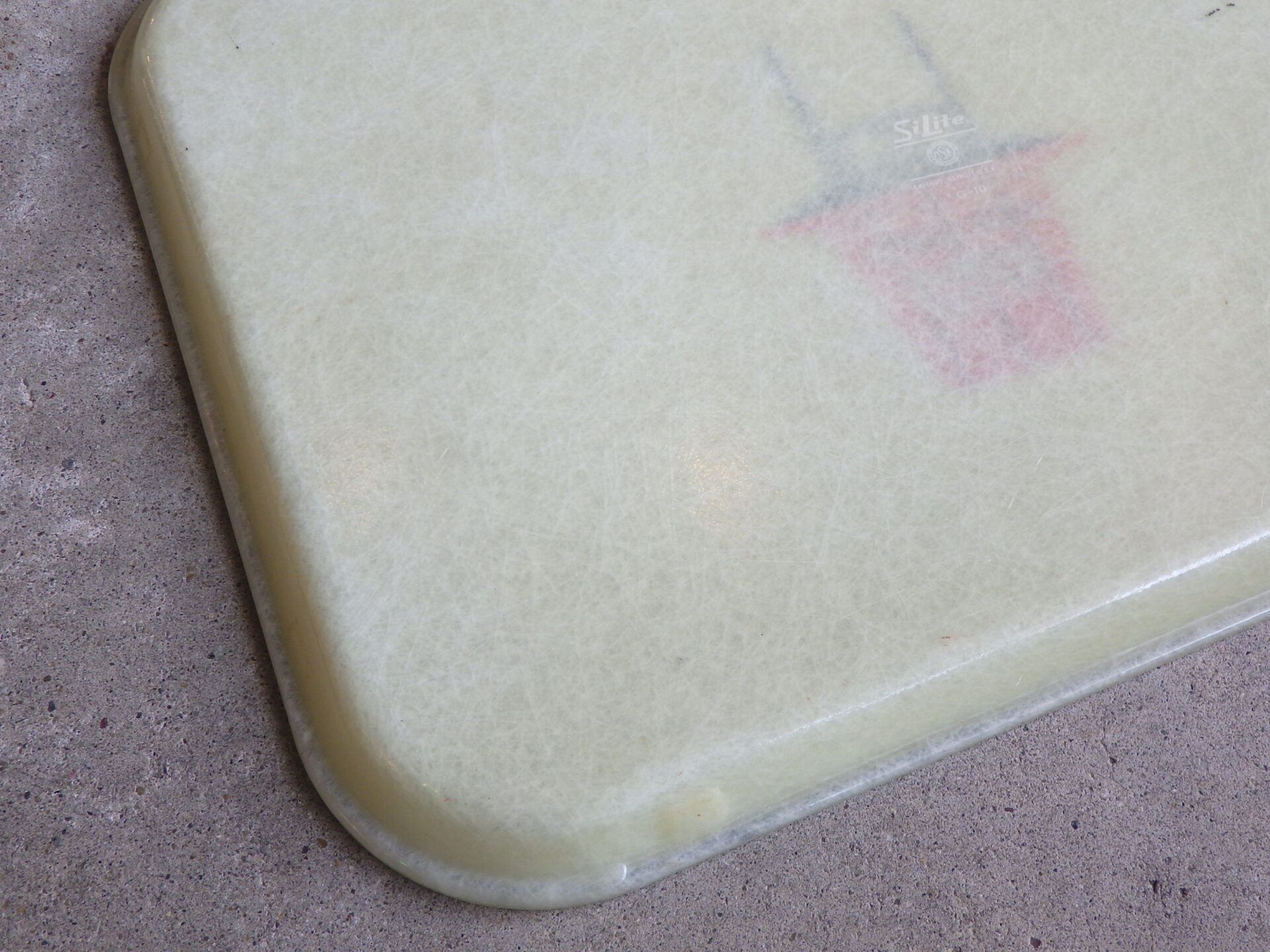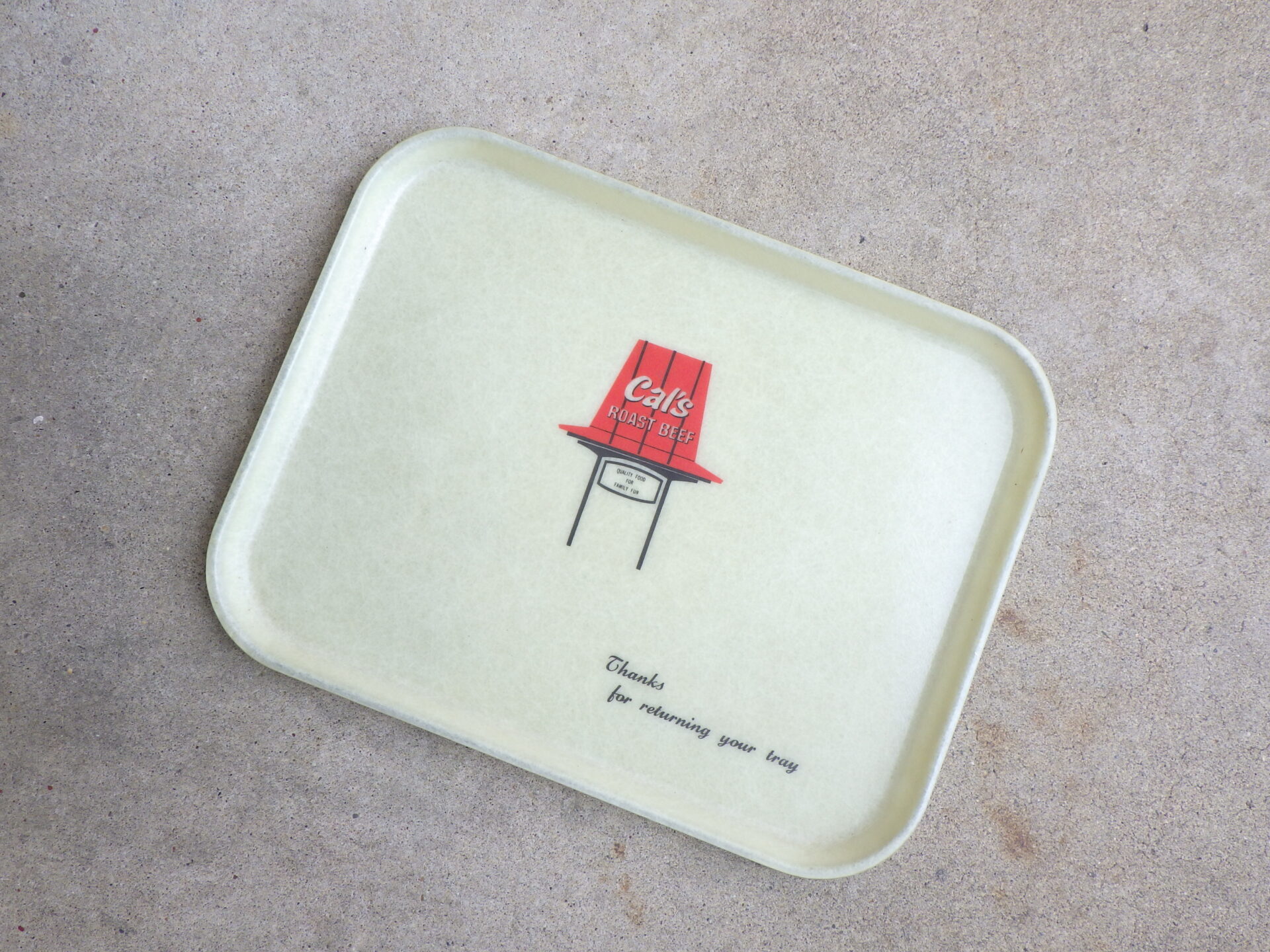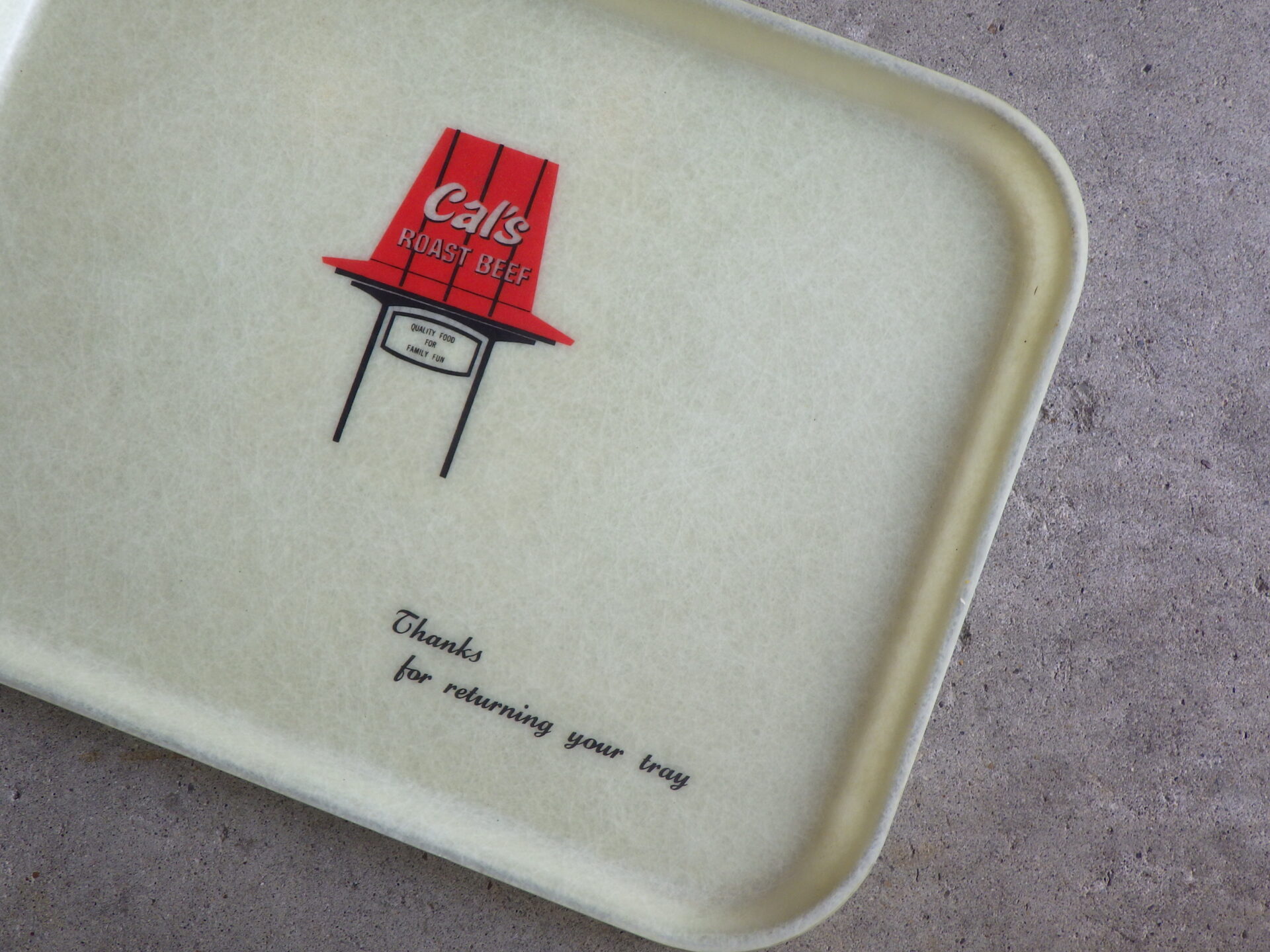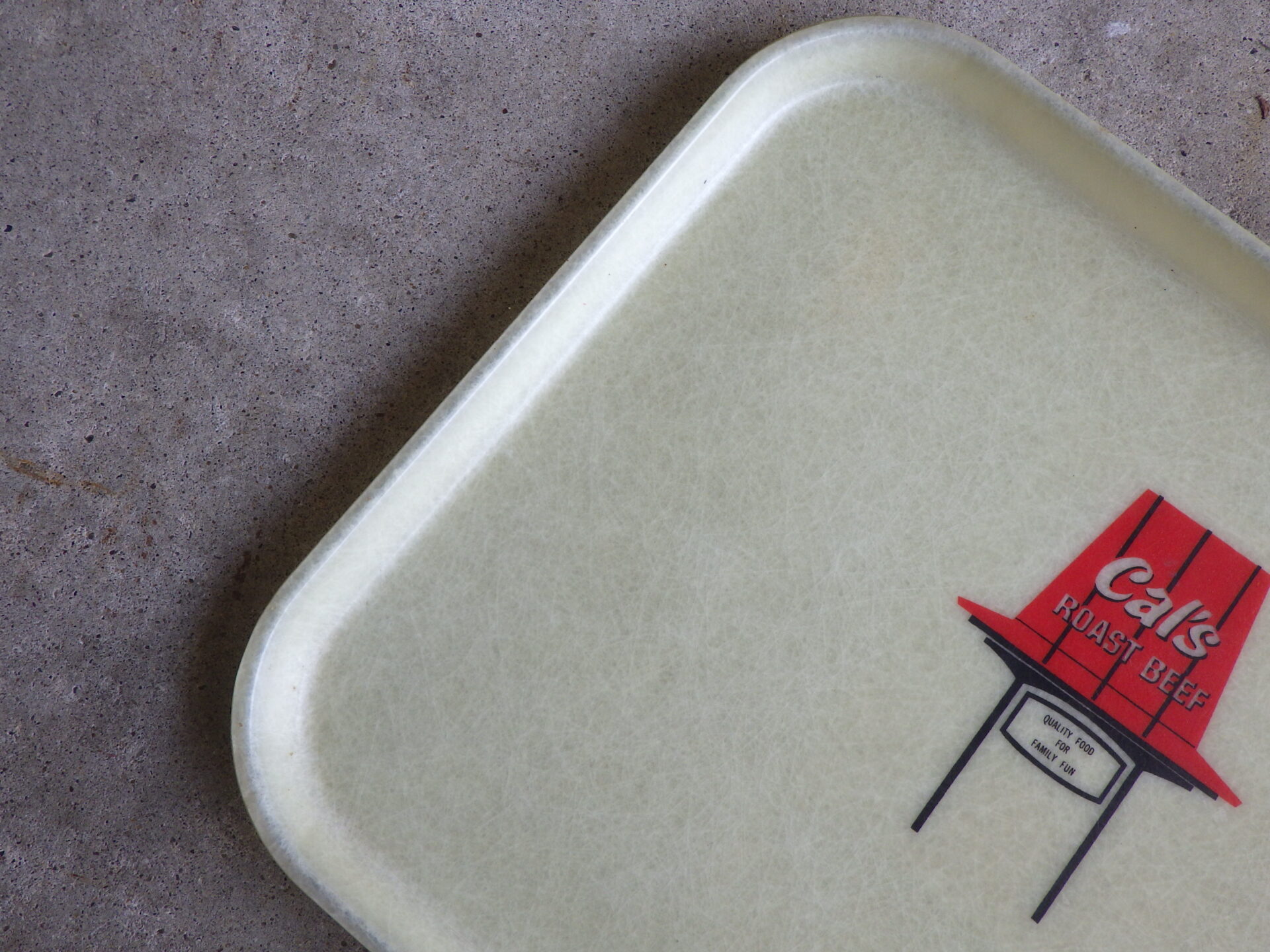 | アメリカで買い付けしたFRP製のトレイです。 プラスチック樹脂が多用される前の素材のグラスファイバーは、透け感や光沢が独特の味わいがあり、水にも強く、ビンテージらしさを感じ取れるアイテムです。 こちらはローストビーフが売りのレストランで業務用に使用されていたトレイのようです。 |