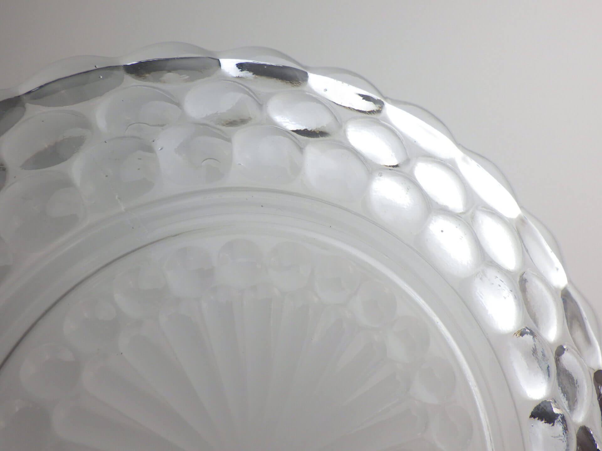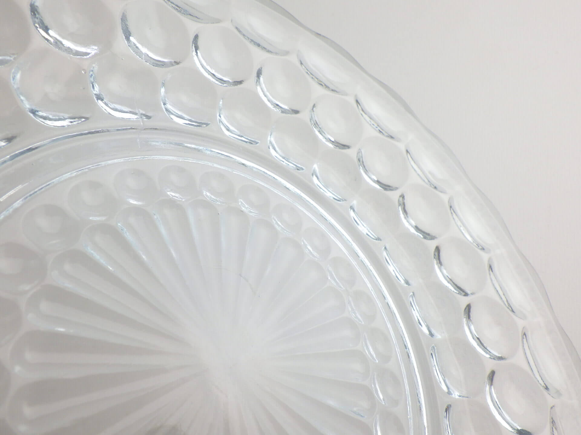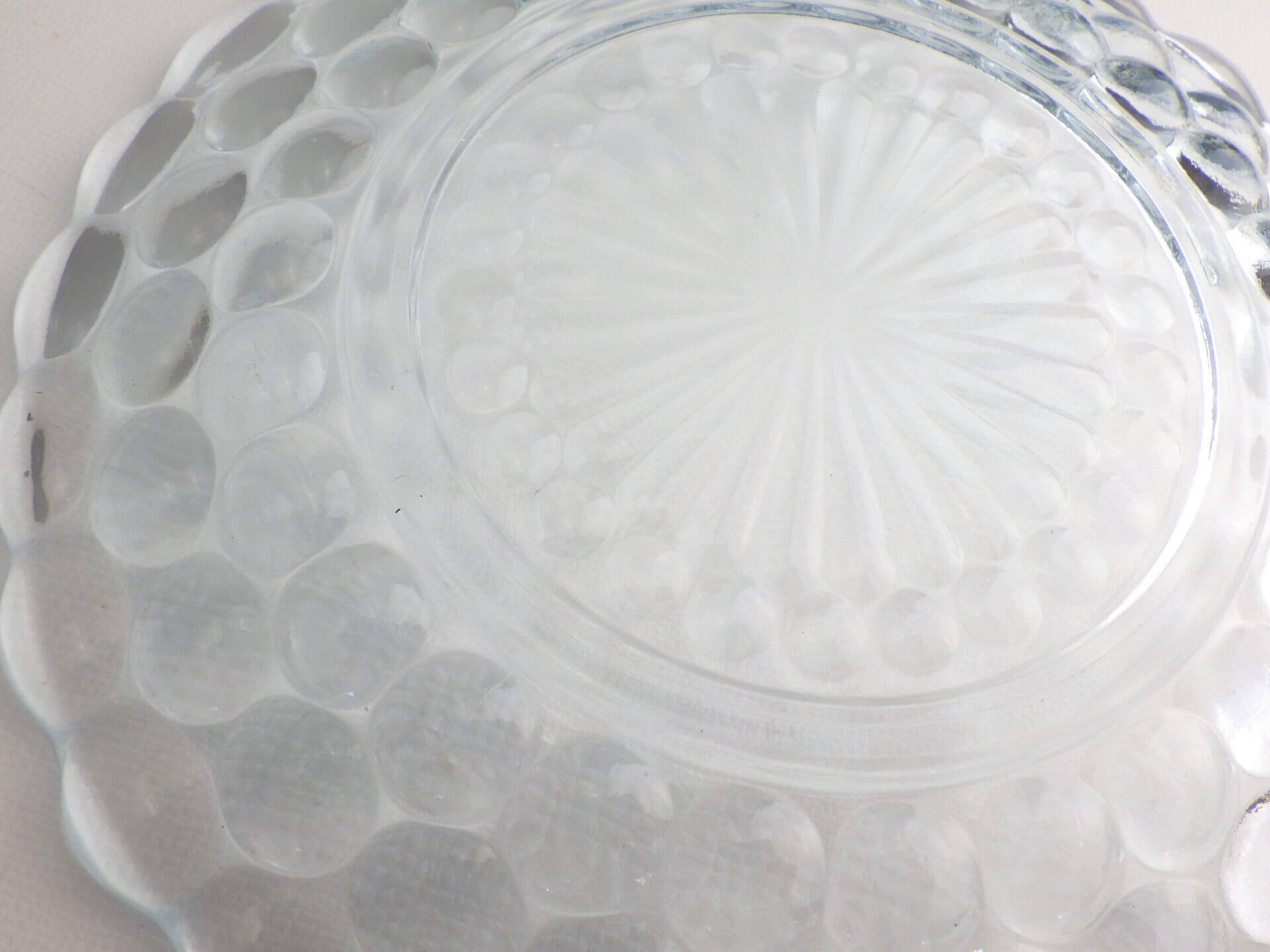 | エンボス加工が美しく、涼しげなバブルのプレートです。 ファイヤーキングの他のブレッド&バタープレートよりも大きめなので、ケーキなどのデザートやサラダの盛り付け、取り皿としても活躍してくれそうです。 来客時の使用にもおすすめしています。 |