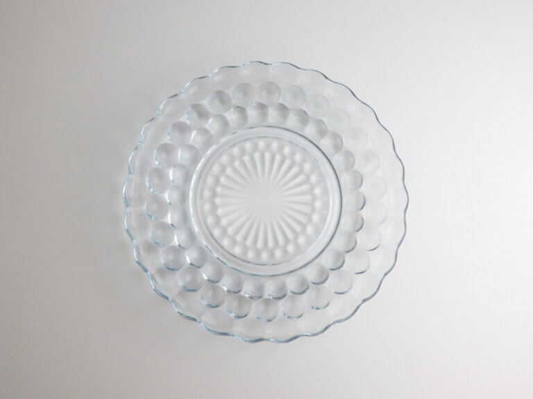 | エンボス加工が美しく、涼しげなバブルのプレートです。 ファイヤーキングの他のブレッド&バタープレートよりも大きめなので、ケーキなどのデザートやサラダの盛り付け、取り皿としても活躍してくれそうです。 来客時の使用にもおすすめしています。 |
