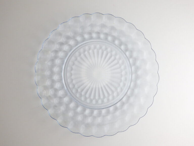 | エンボス加工が美しく、涼しげなバブルのプレートです。 こちらは正式名称「9・3/8インチ・ディナープレート」。 肉や魚料理、冷製パスタなど、様々な料理に合わせられそう。 来客時の使用にもおすすめしています。 |