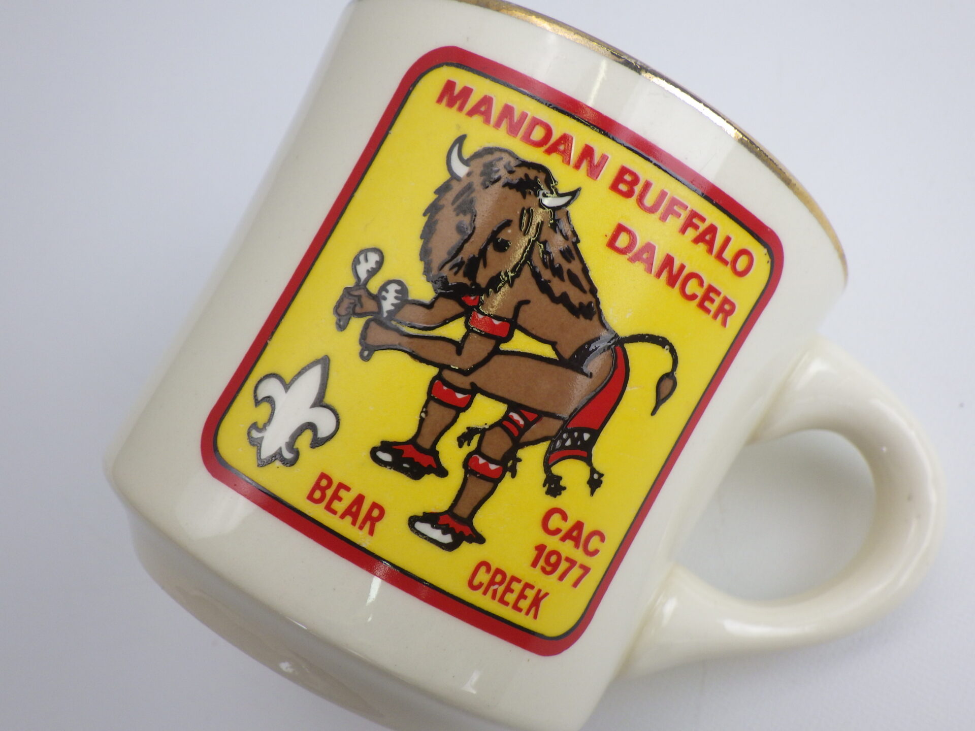 | シンプルだけど絵になるボーイスカウトマグ。 アメリカではコレクターさんもいるそうです。 「MANDAN BUFFALO DANCER」とは、北米大陸のインディアン部族(マンダン族)の宗教的儀式だったようです。 おウチ時間のコーヒータイムやアウトドアのお供にいかがですか? |