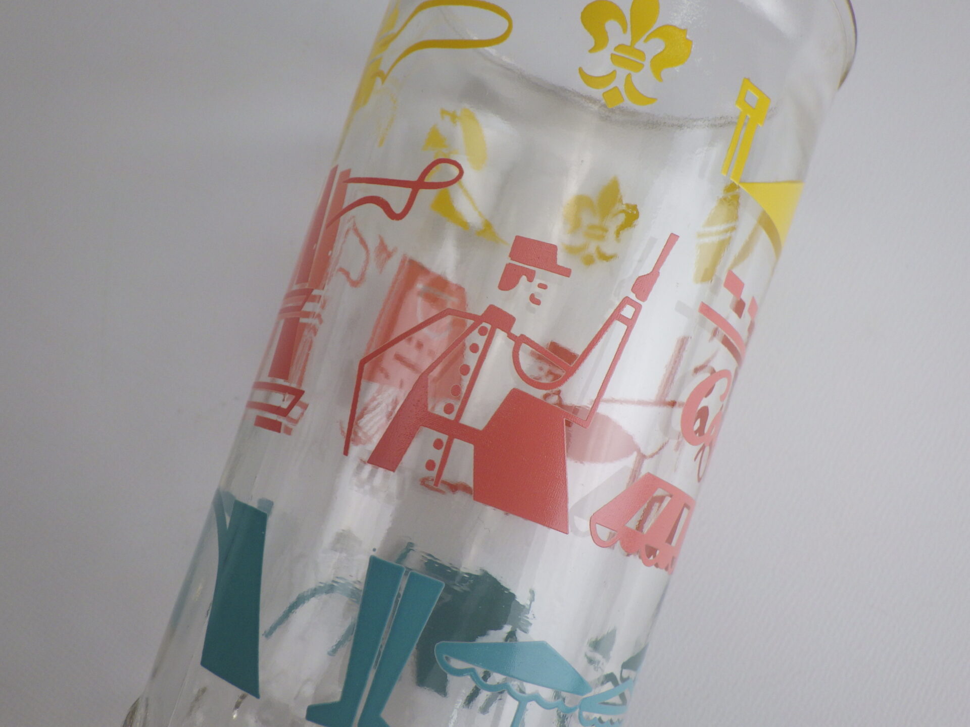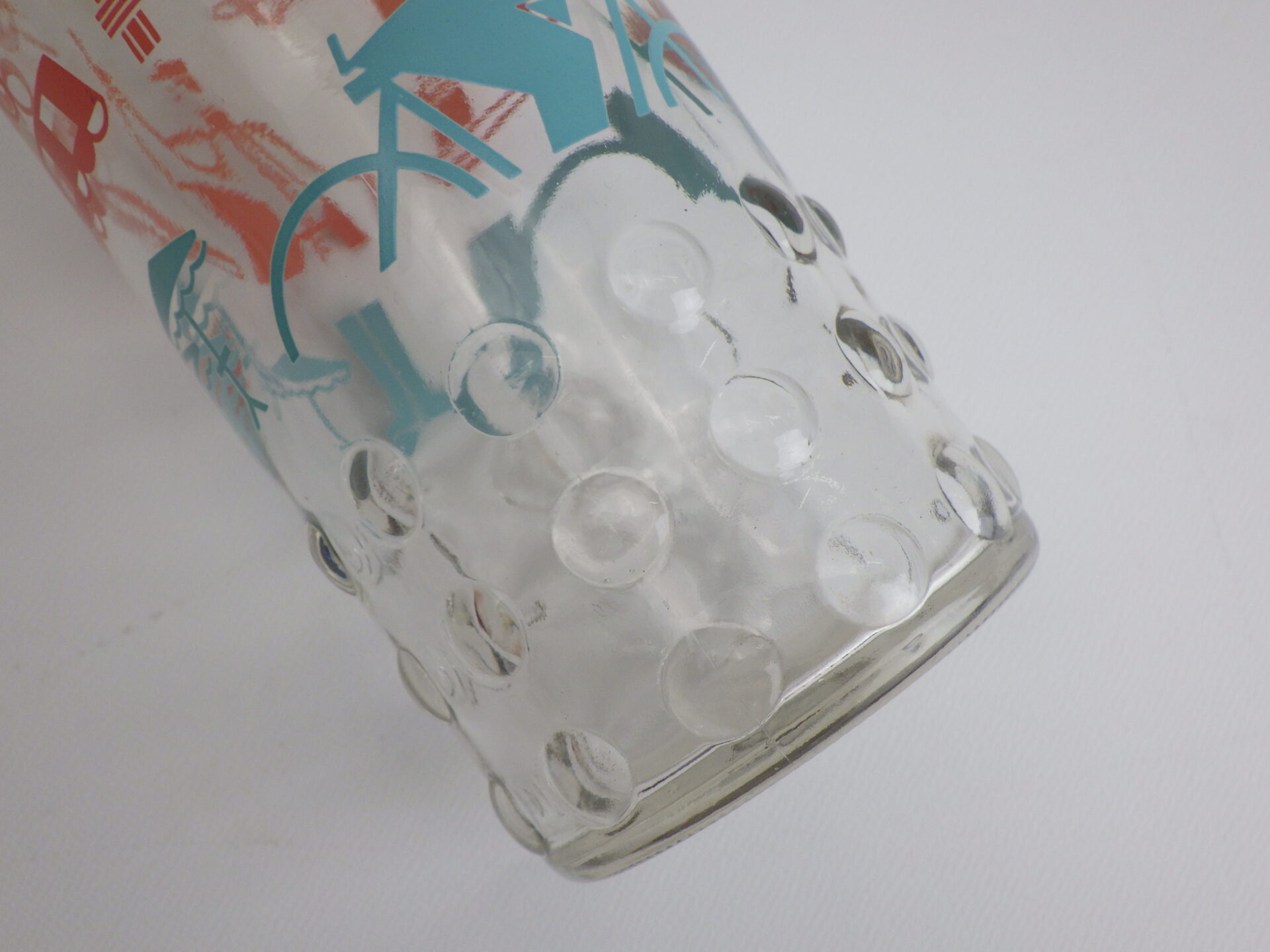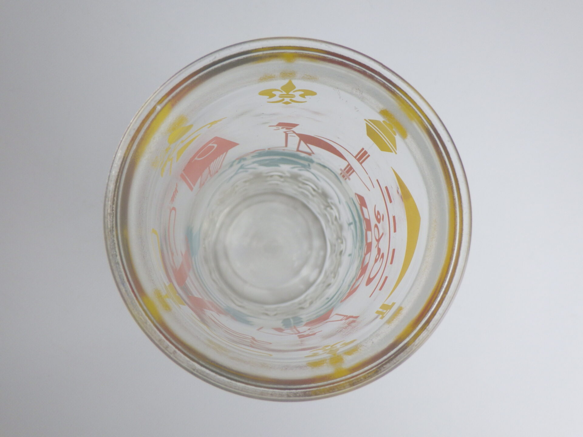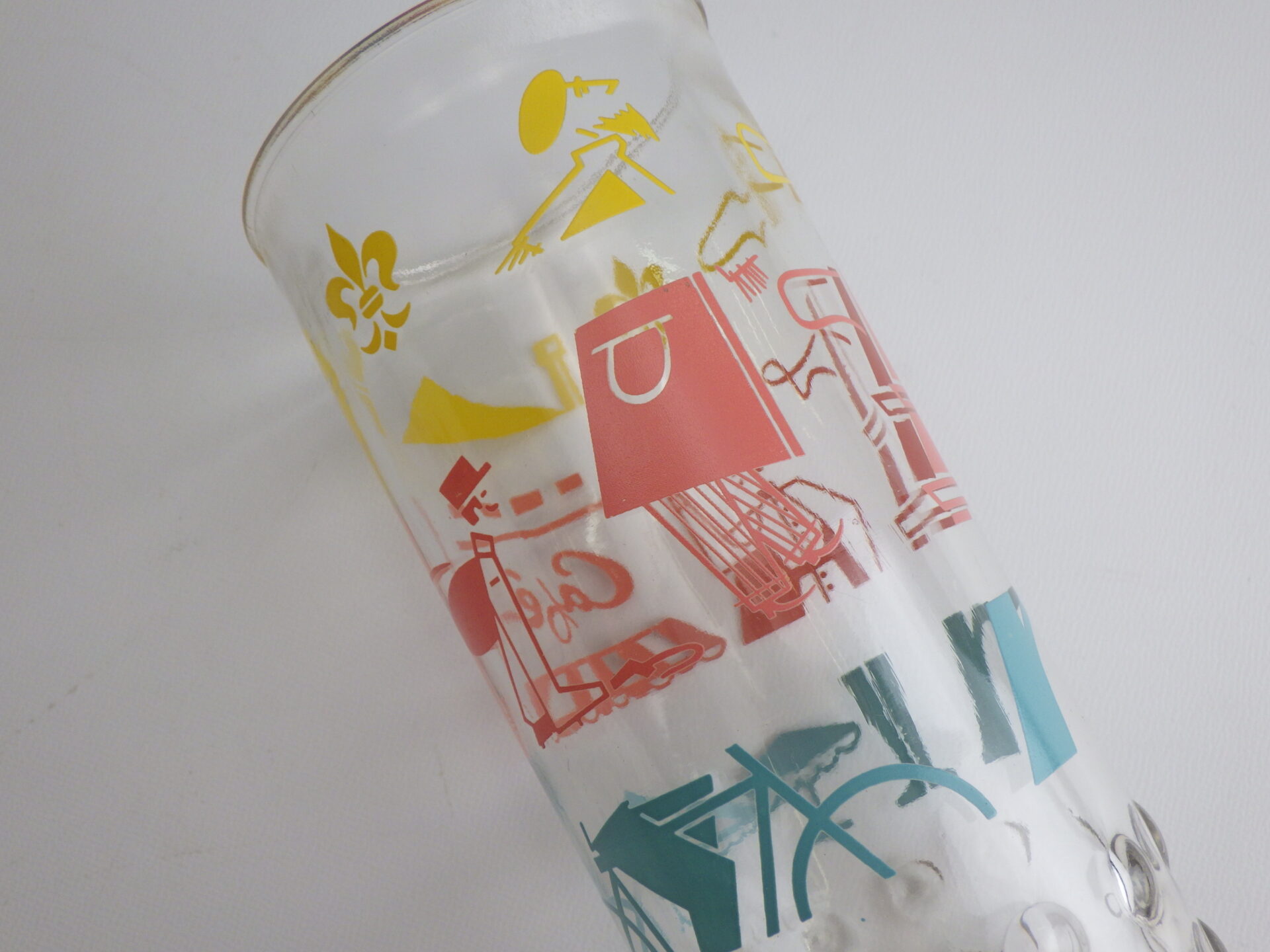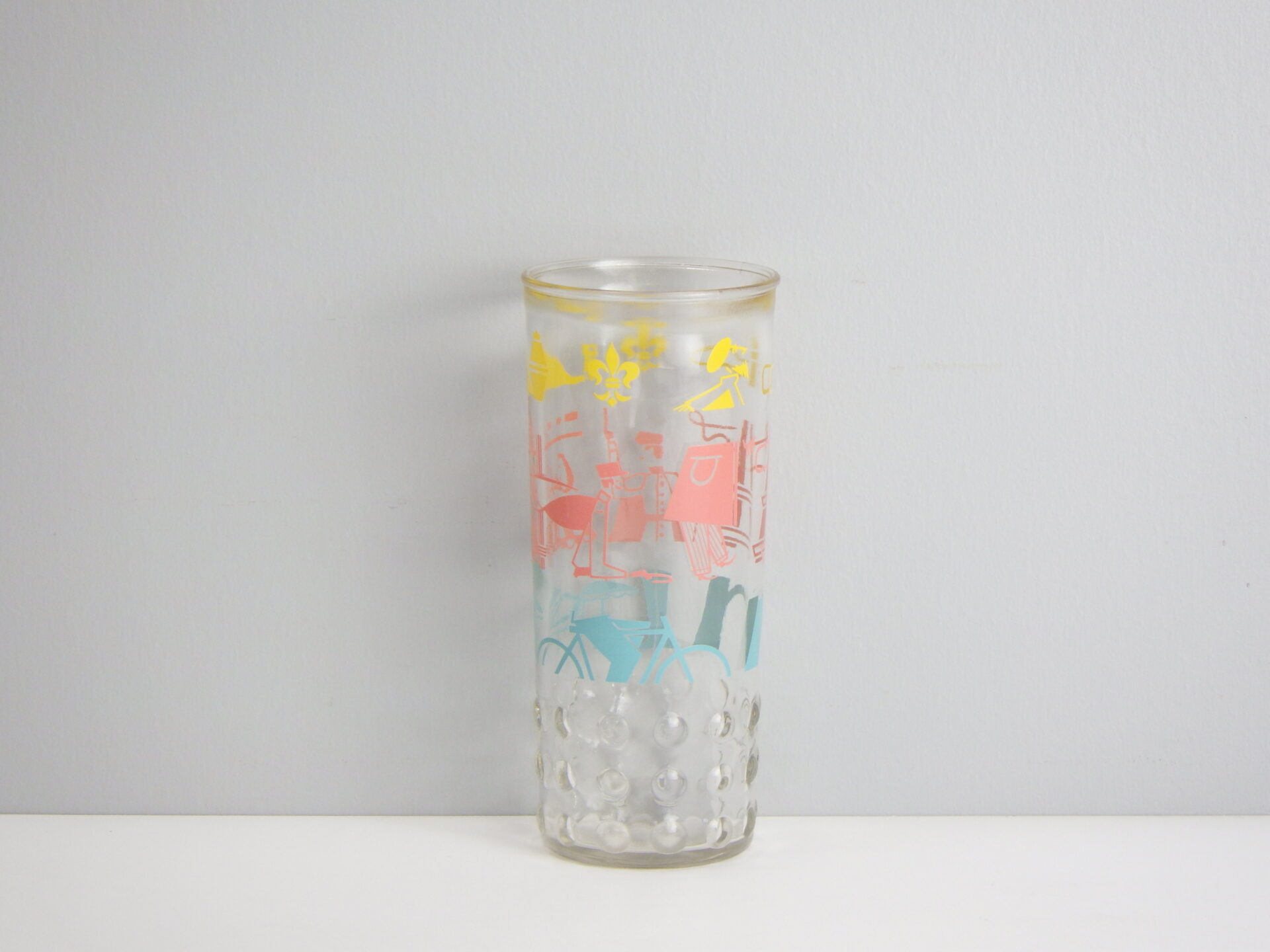 | アメリカで買い付けました。 パステルカラーで街並みがプリントされたビンテージグラスです。 下部がエンボス加工されており、滑り止めの意味合いもありますが、デザイン的にも非常に可愛い作りとなっています。 容量も大きいので、暑い時期は氷を沢山入れてアイスティーなど楽しまれてはいかがでしょうか? |
