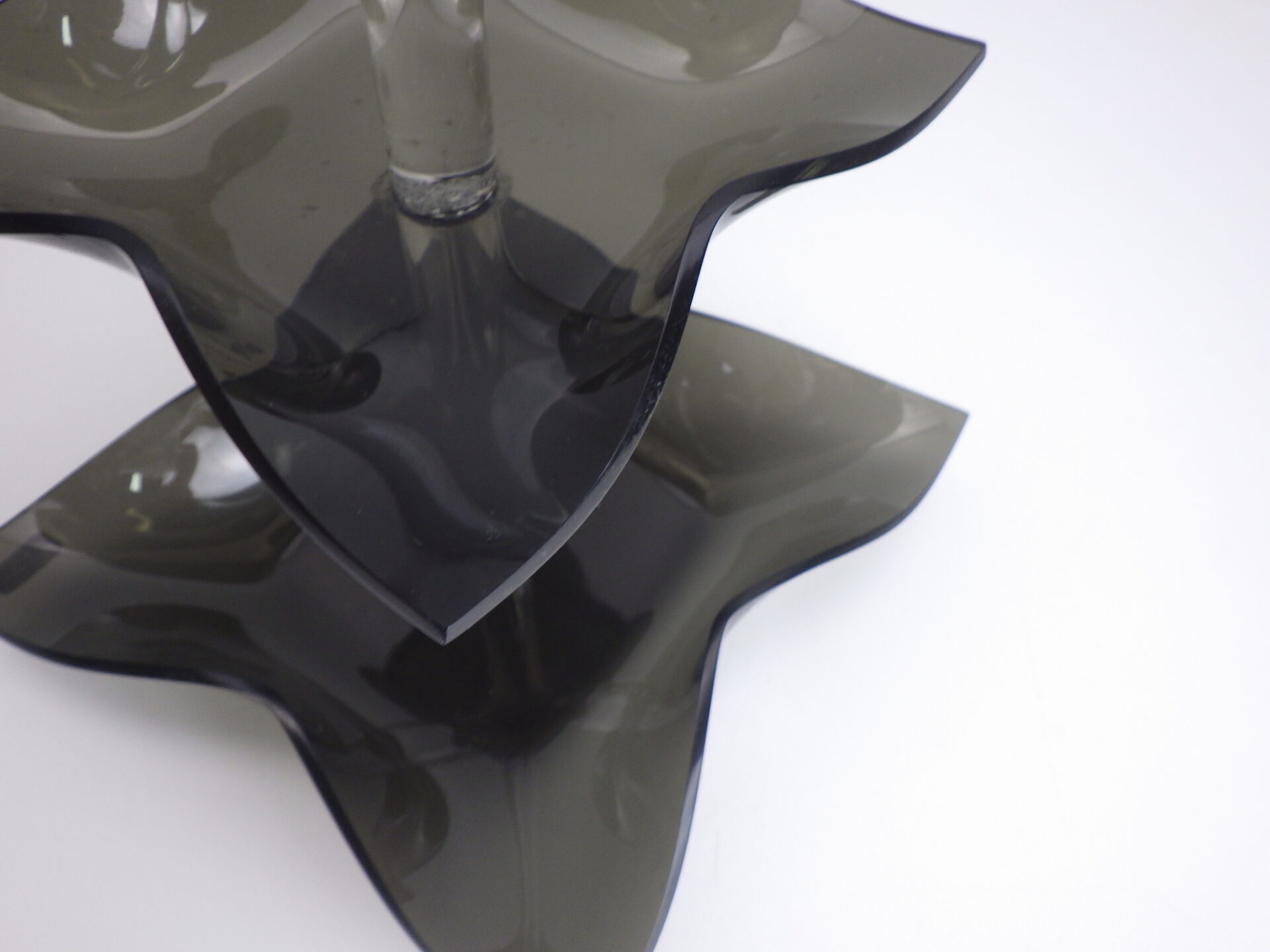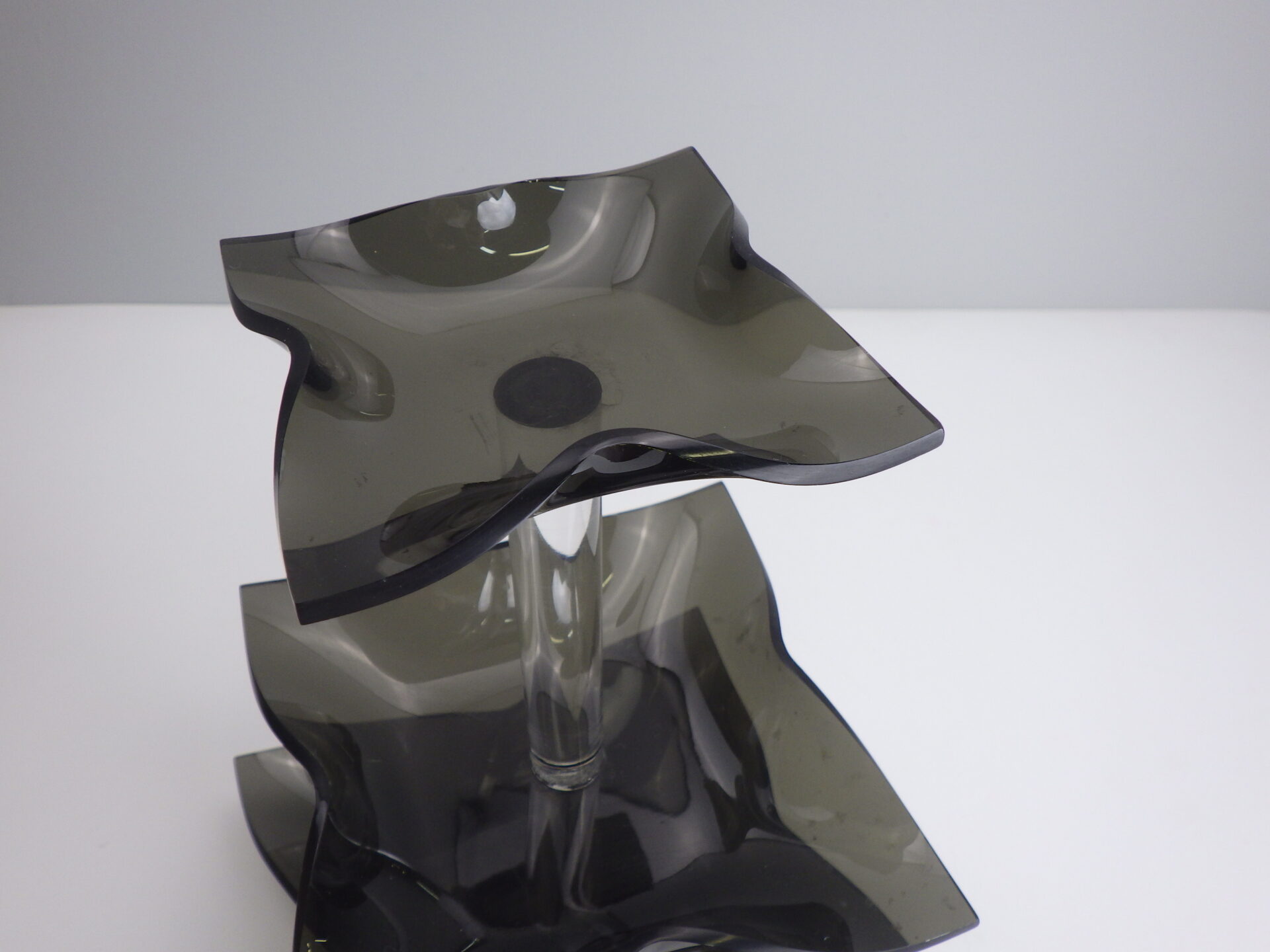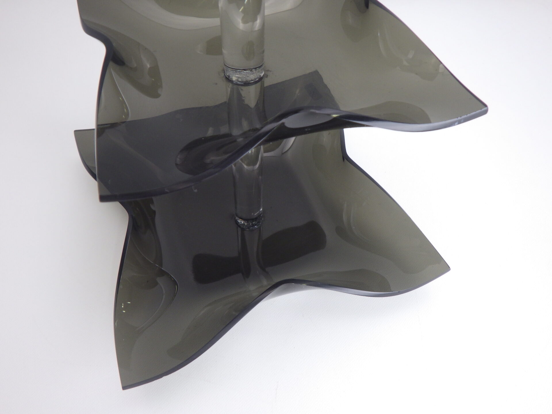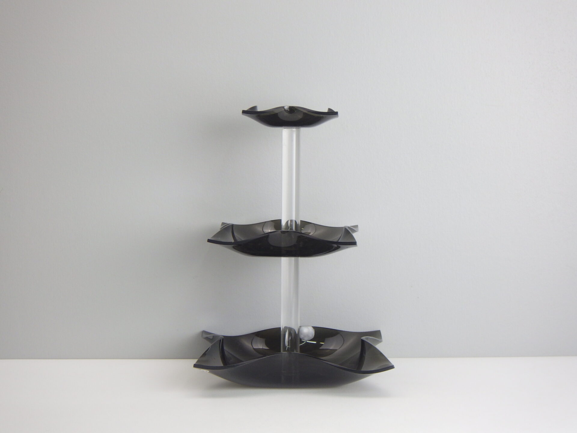 | アメリカで買い付けました。ビンテージのケーキスタンドです。 透け感のあるプラスチック製なので、重々しすぎずインテリアのアクセントとして取り入れてみるのも良さそうです。 お休みの日のティータイムに、アフタヌーンティーを楽しまれてみてはいかがでしょうか? オードブルトレイとしても活躍してくれそうですね。 |