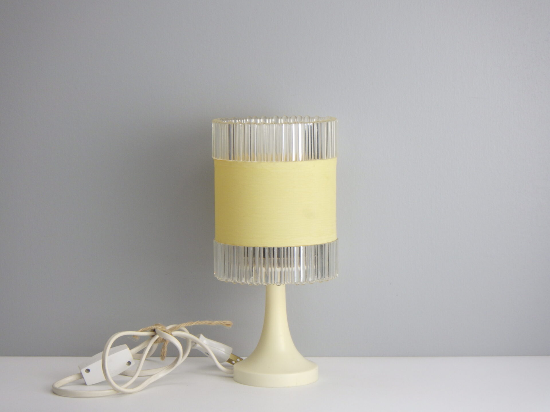 | ヨーロッパ」で買い付けました。 上下のスケルトン部分と中央のファブリック部分とで灯りの洩れ方がわずかに異なり、全体的には優しいオレンジ色に光り、ビンテージらしい良い雰囲気です。 落ち着いたトーンなので、木製のチェストやテーブル、寝室のサイドテーブルなど、どこにでも合わせやすいですね。 (電球の口金サイズ:E14) |