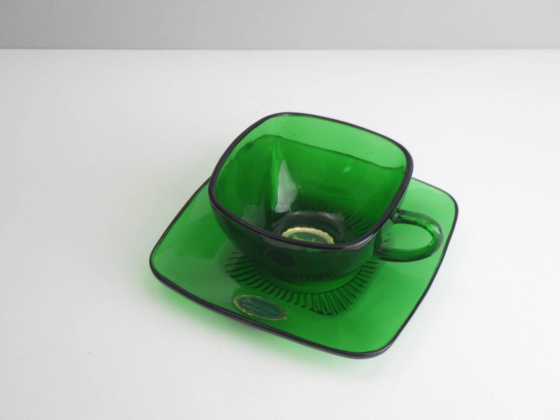 “Anchor Hocking” Forest Green Charm C&S アンカーホッキング フォレストグリーン チャーム カップ&ソーサー A