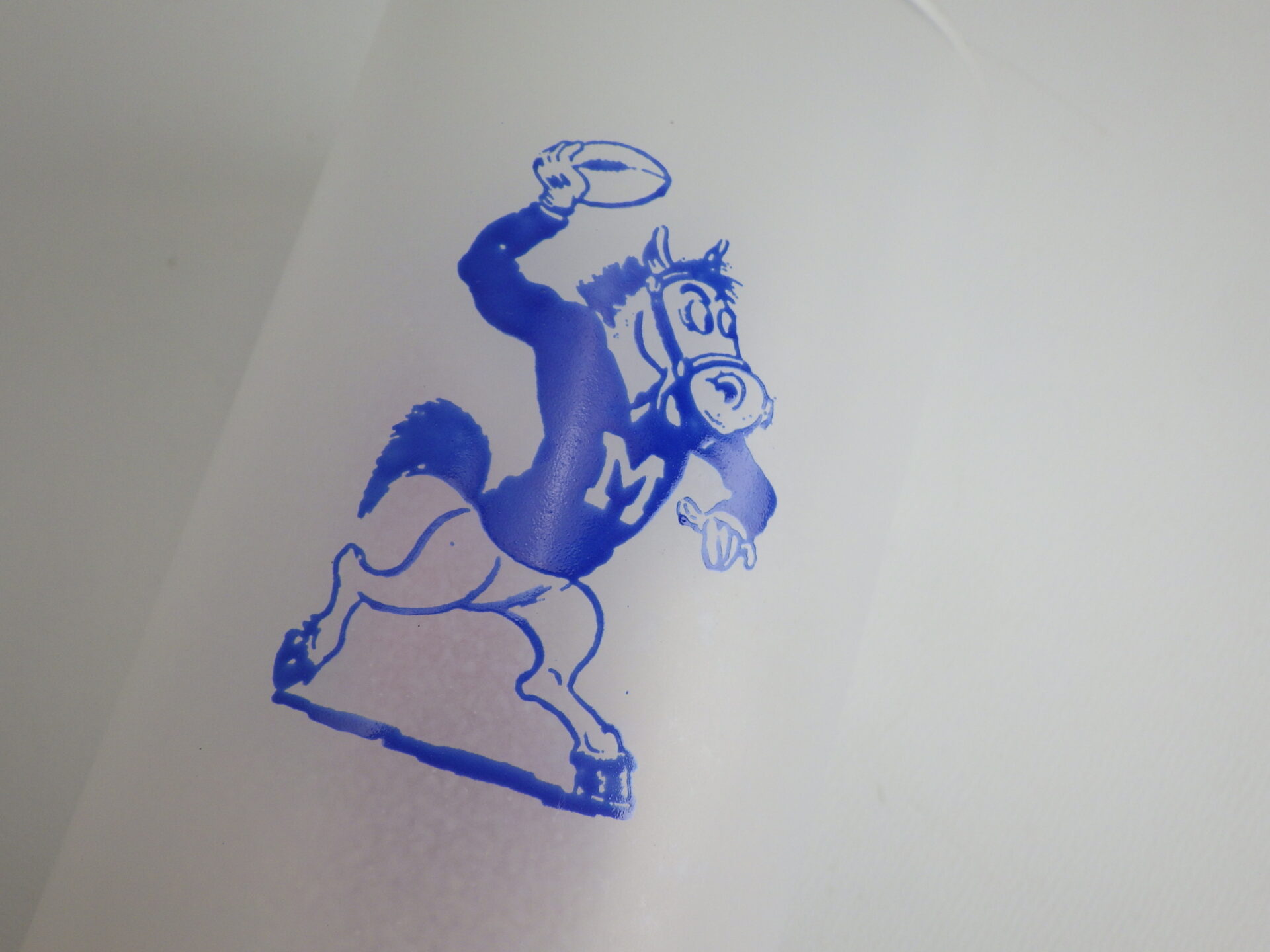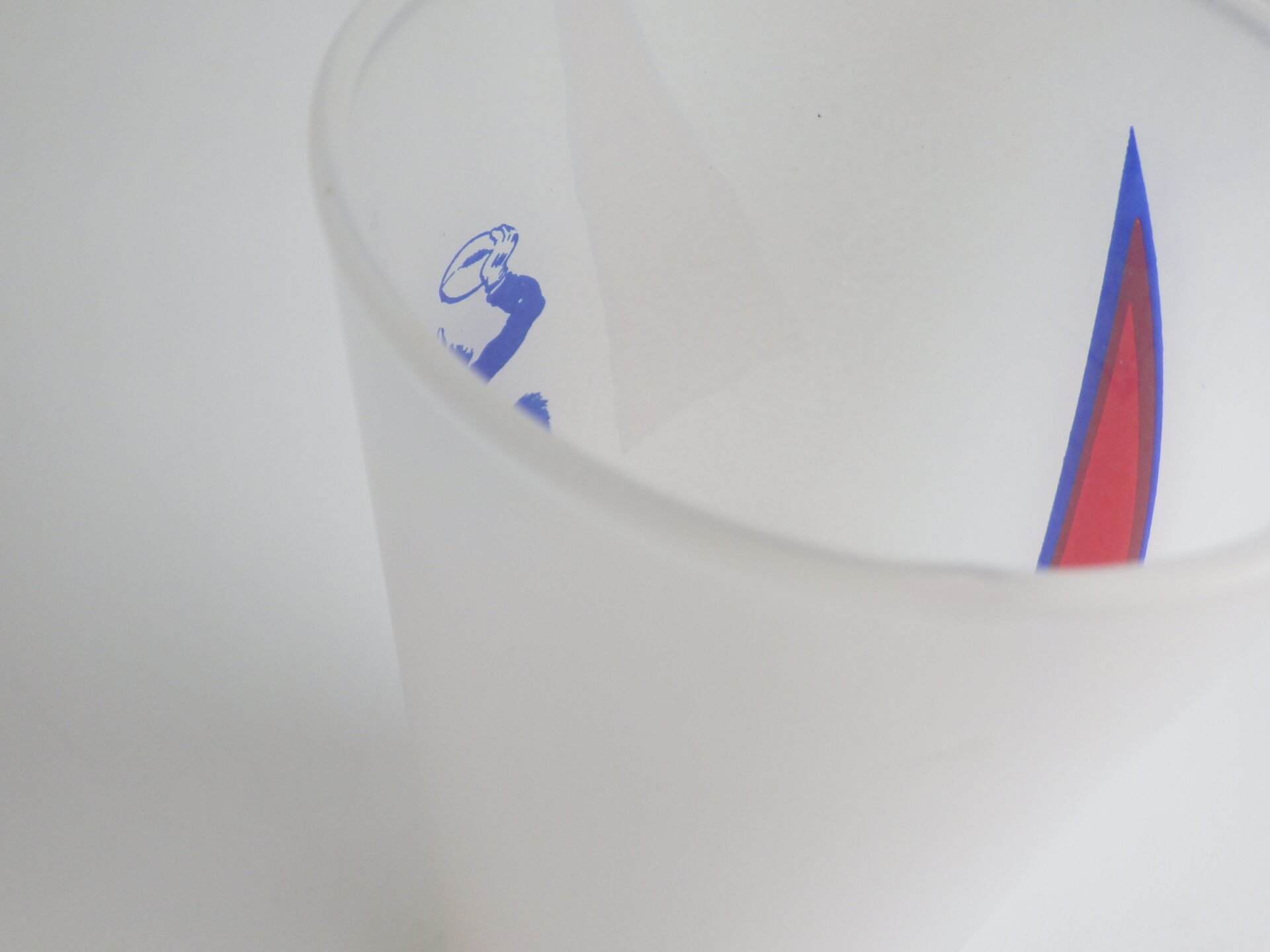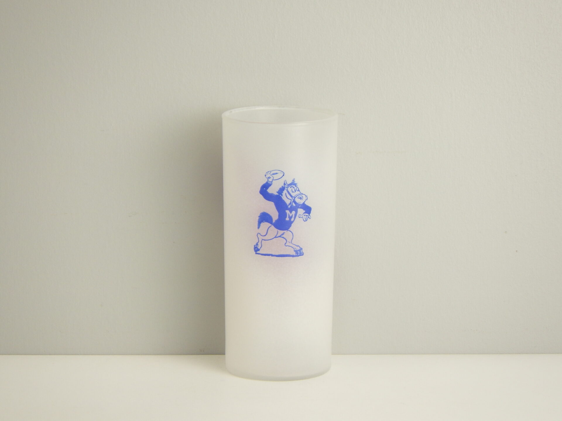 | アメリカで買い付けました。 大学のラグビーチームのペナントとキャラクターがプリントされたビンテージグラスです。 擦りガラス加工されており、滑り止めの意味合いもありますが、デザイン的にも非常に可愛い作りとなっています。 容量も大きいので、暑い時期は氷を沢山入れてアイスティーやジュースなど楽しまれてはいかがでしょうか? |