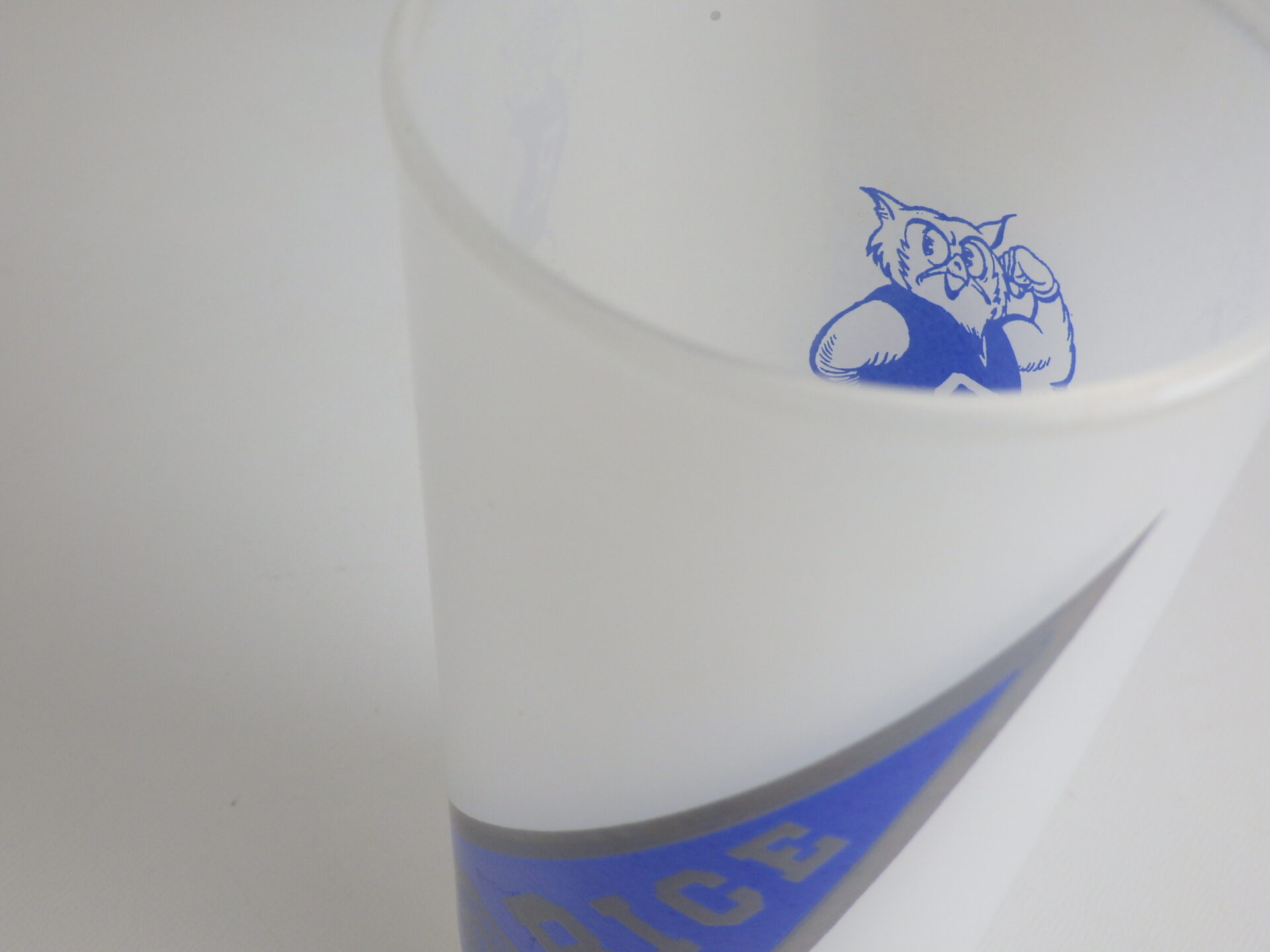 | アメリカで買い付けました。 大学のラグビーチームのペナントとキャラクターがプリントされたビンテージグラスです。 擦りガラス加工されており、滑り止めの意味合いもありますが、デザイン的にも非常に可愛い作りとなっています。 容量も大きいので、暑い時期は氷を沢山入れてアイスティーやジュースなど楽しまれてはいかがでしょうか? |