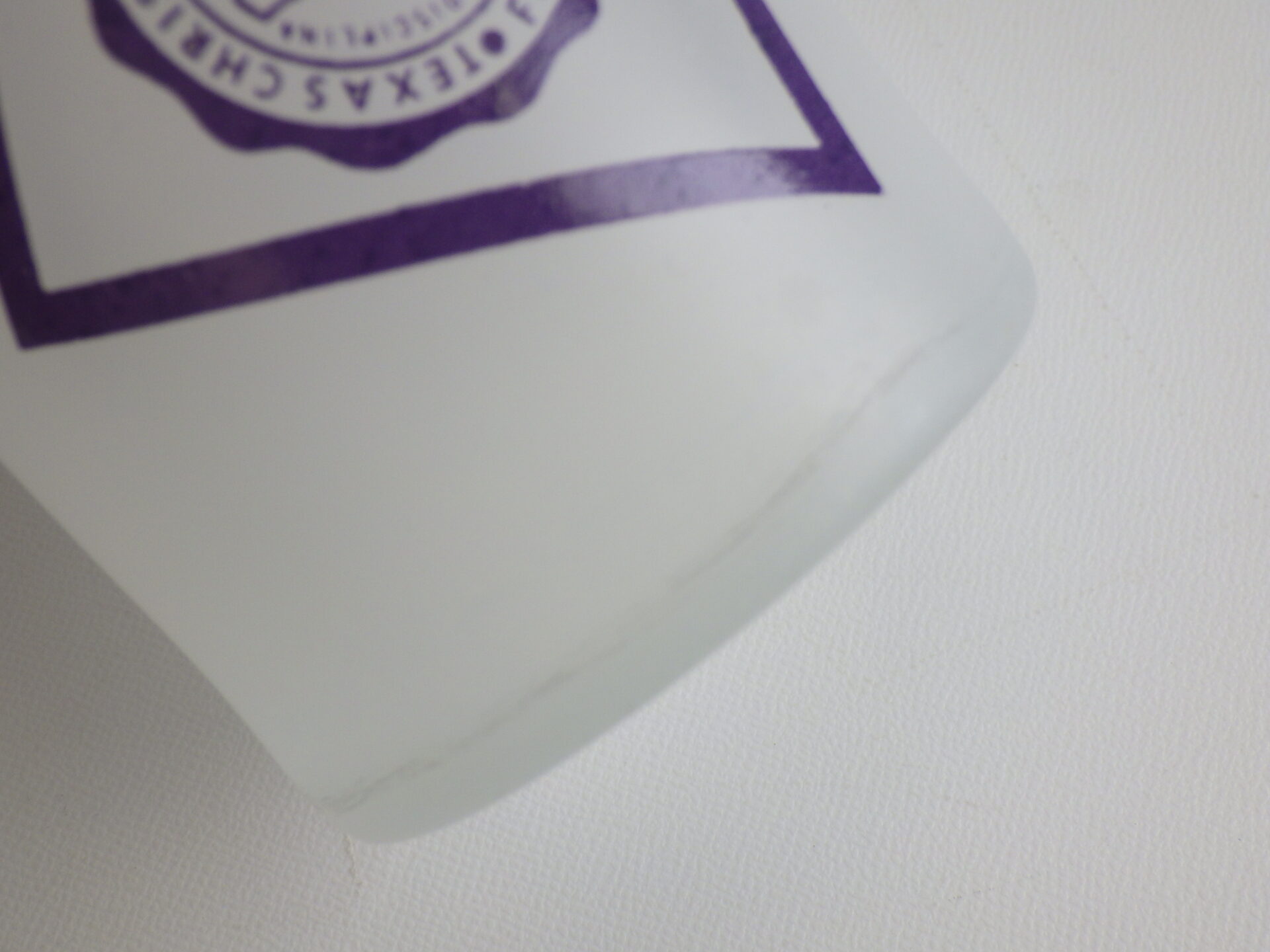 | アメリカで買い付けました。 大学のラグビーチームのペナントとキャラクターがプリントされたビンテージグラスです。 擦りガラス加工されており、滑り止めの意味合いもありますが、デザイン的にも非常に可愛い作りとなっています。 容量も大きいので、暑い時期は氷を沢山入れてアイスティーやジュースなど楽しまれてはいかがでしょうか? |