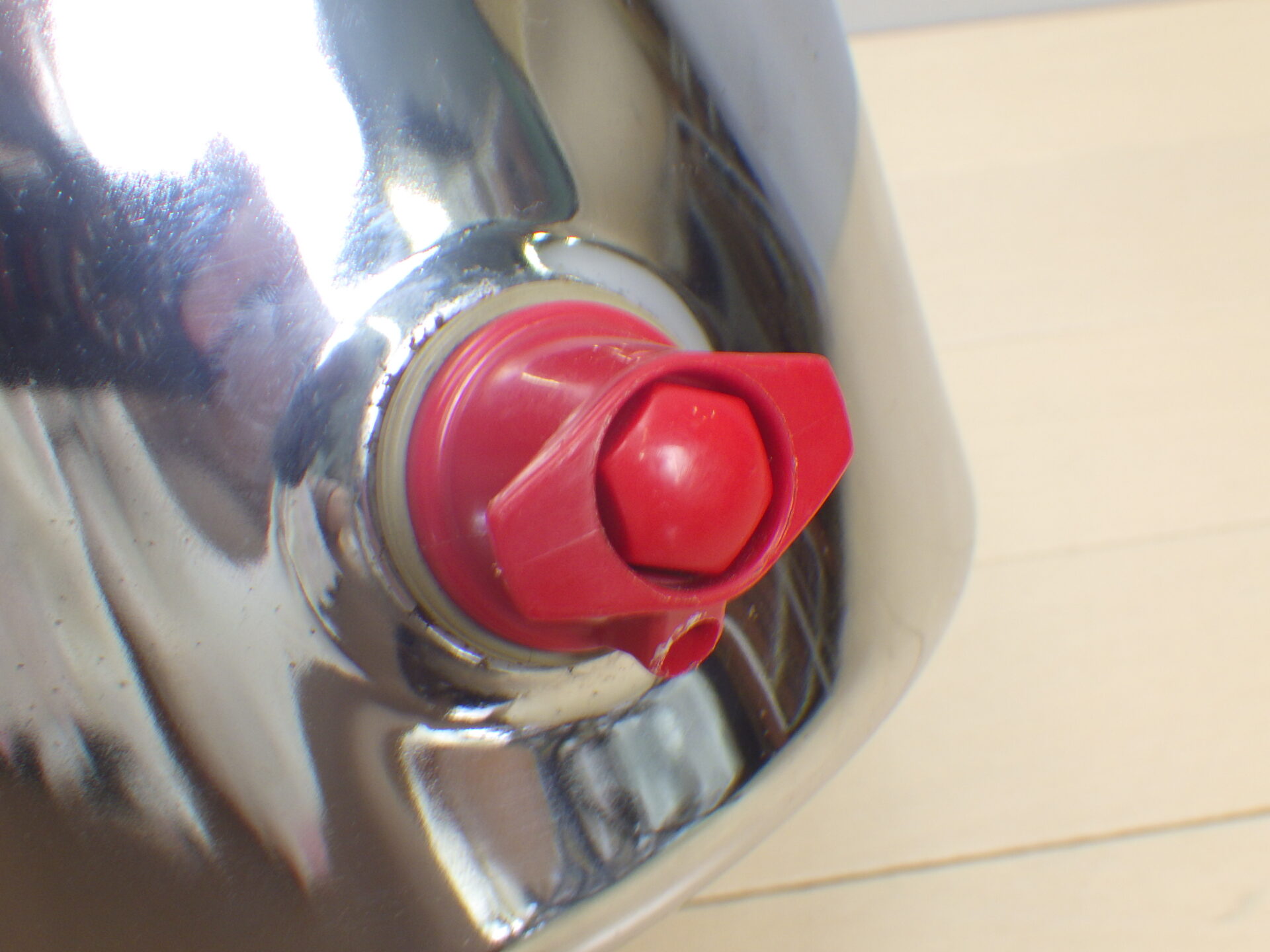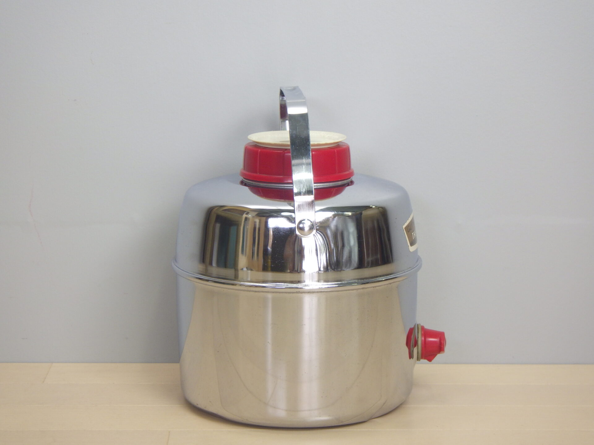 | アメリカで買い付けした、KNAPPのジャグです。 6qt(1.5ガロン)=5.68Lと、1ガロンでは足りないけれど2ガロンだと大きいと感じる方にはちょうど良いサイズ感です。 メタリックなボディはサイトのアクセントになること間違いなしですね。 |