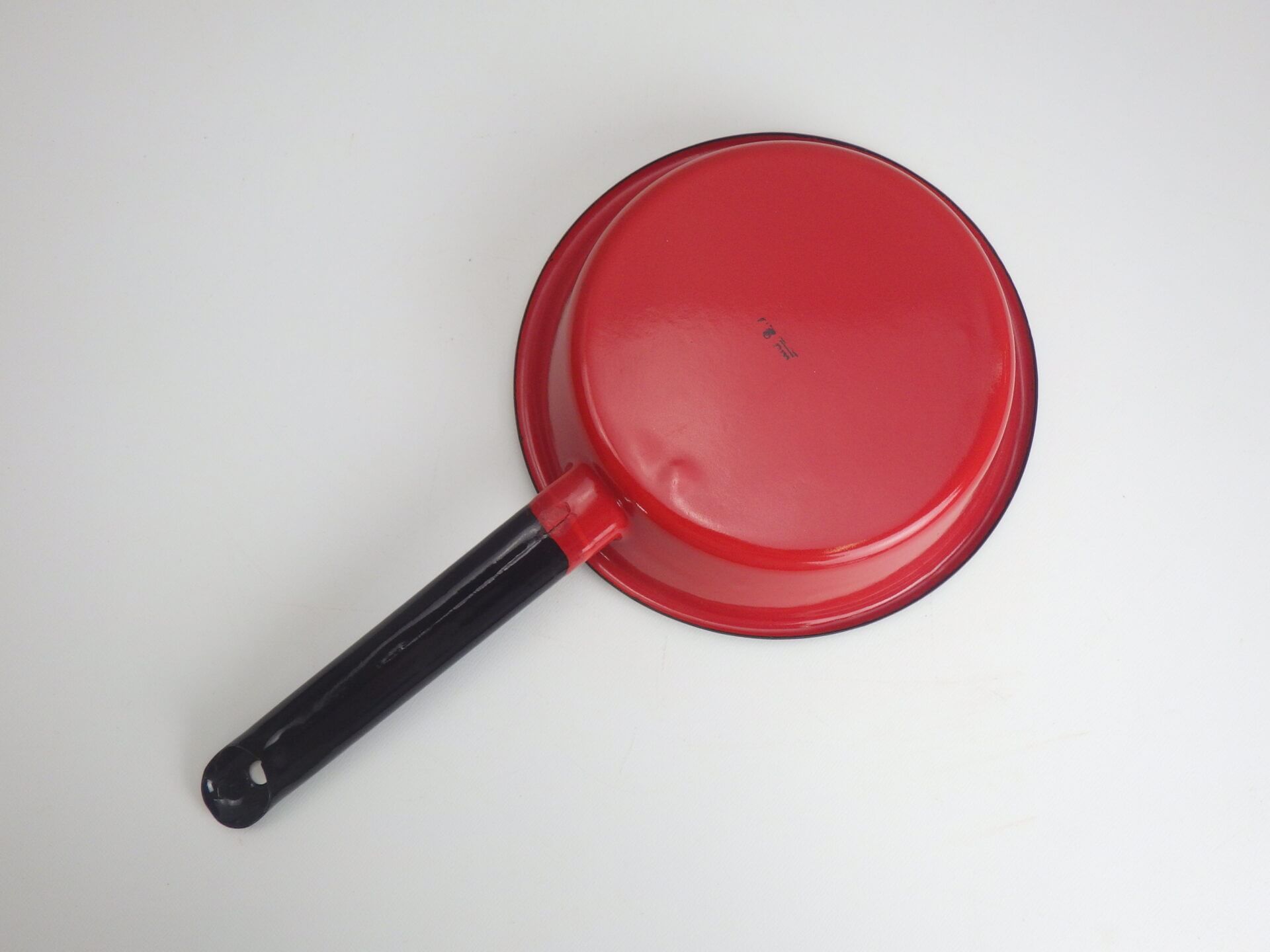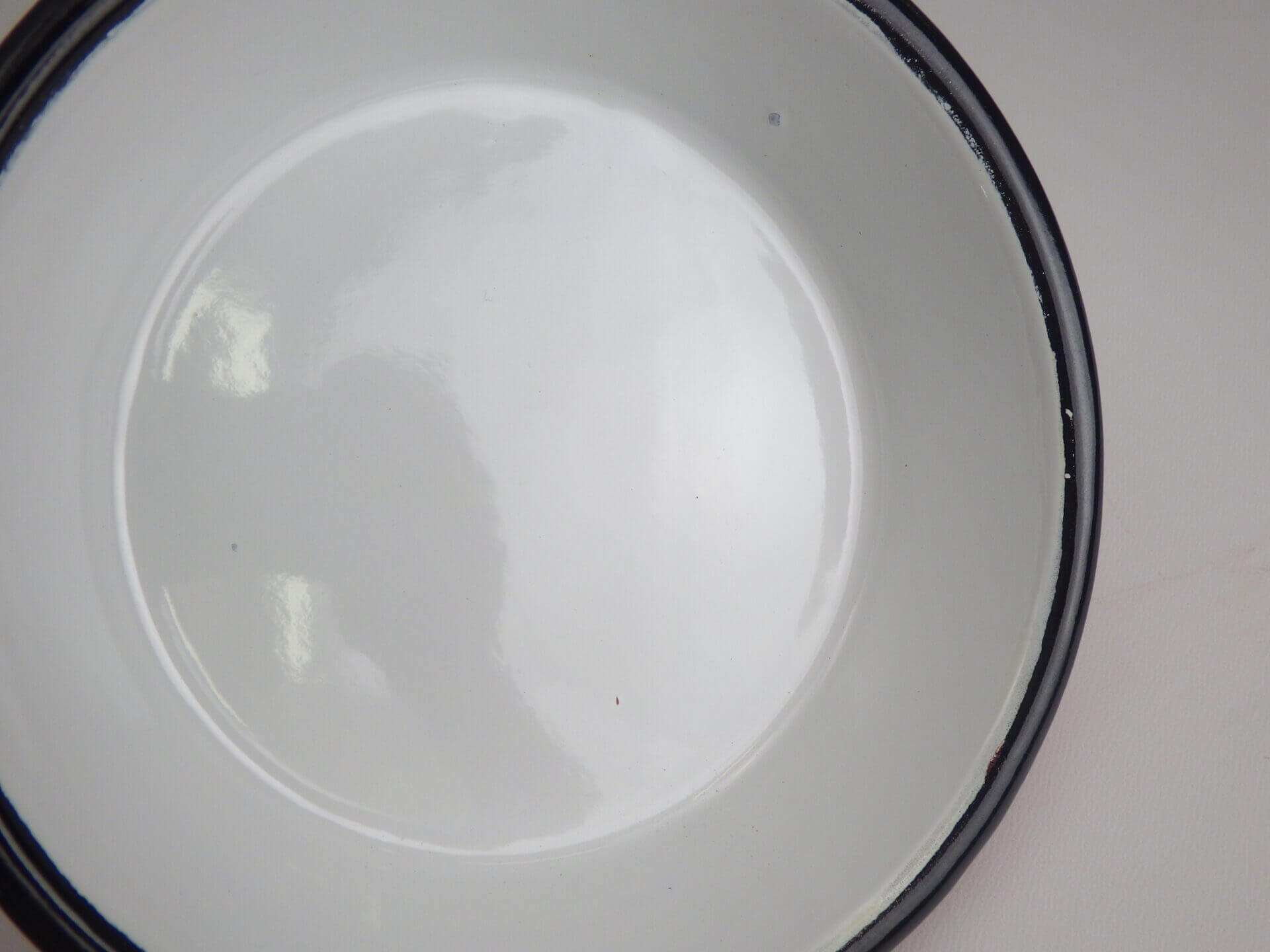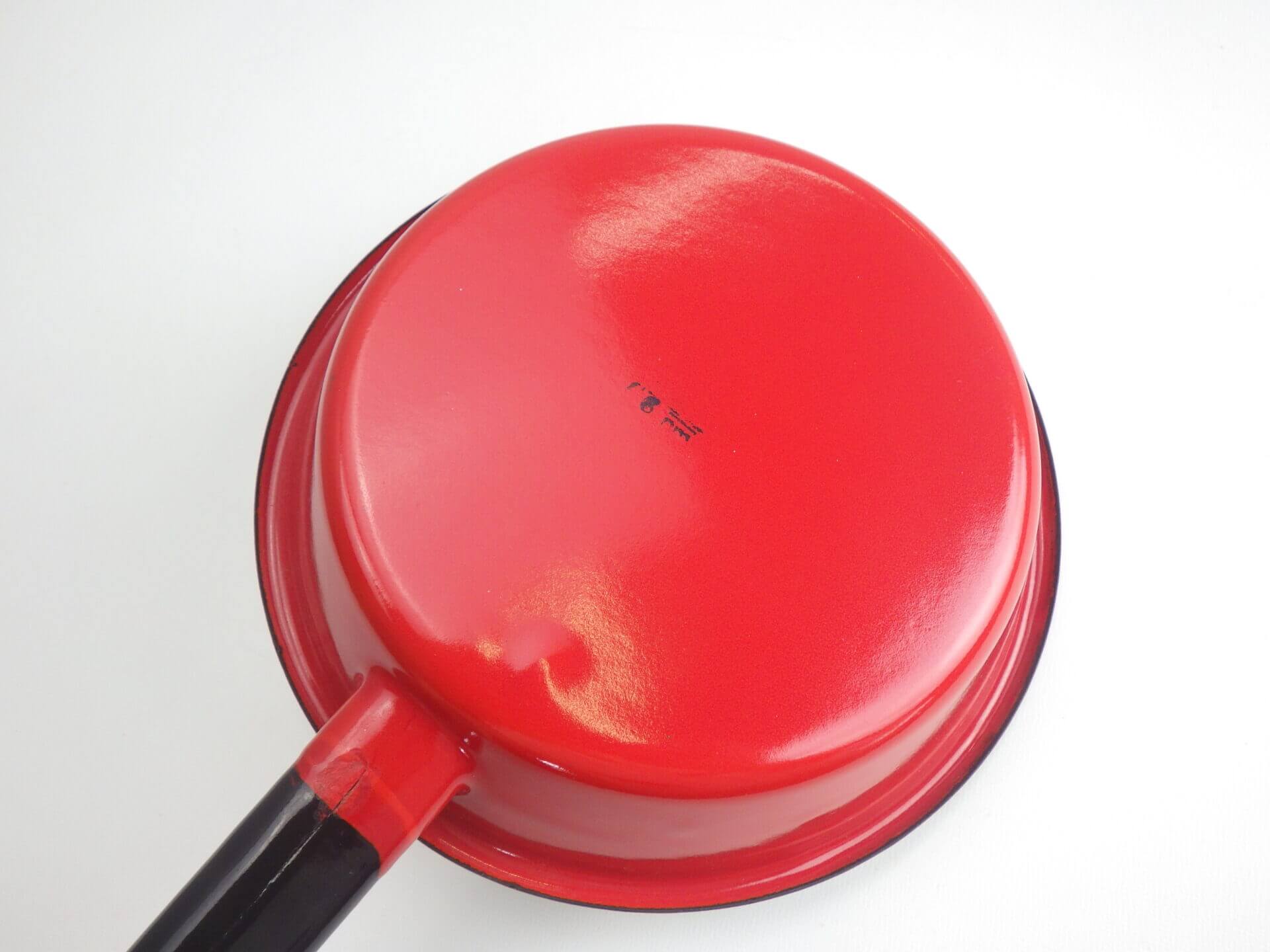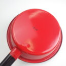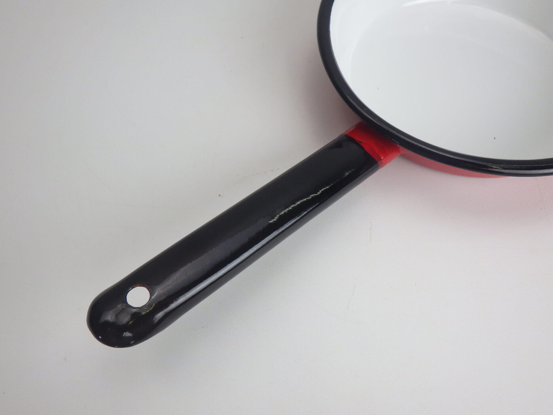 | 可愛らしいビンテージのエナメルパンです。 赤と黒と白の絶妙な色使いが、キッチンに吊るしているだけで何だか楽しい気分になるアイテムですね。 もちろんキャンプなどのアウトドアに持ち出すのにも、軽量かつコンパクトで、サイトのアクセントになりそう。 可愛いので料理を乗せたまま食卓へ運んでも良いですね。 |